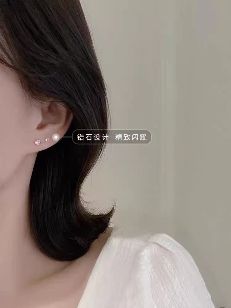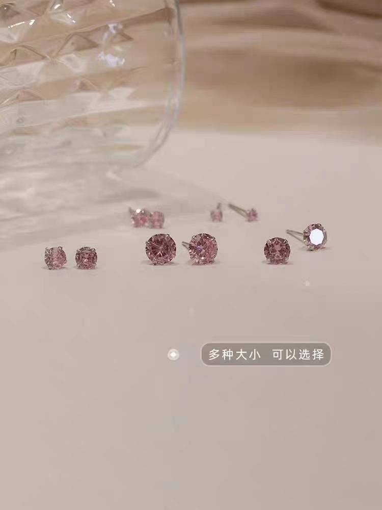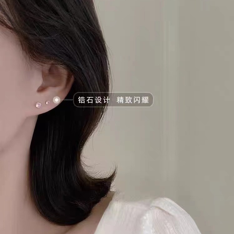 S925银针甜美少女粉锆耳钉女小众气质高级感新款锆石迷你耳饰骨钉