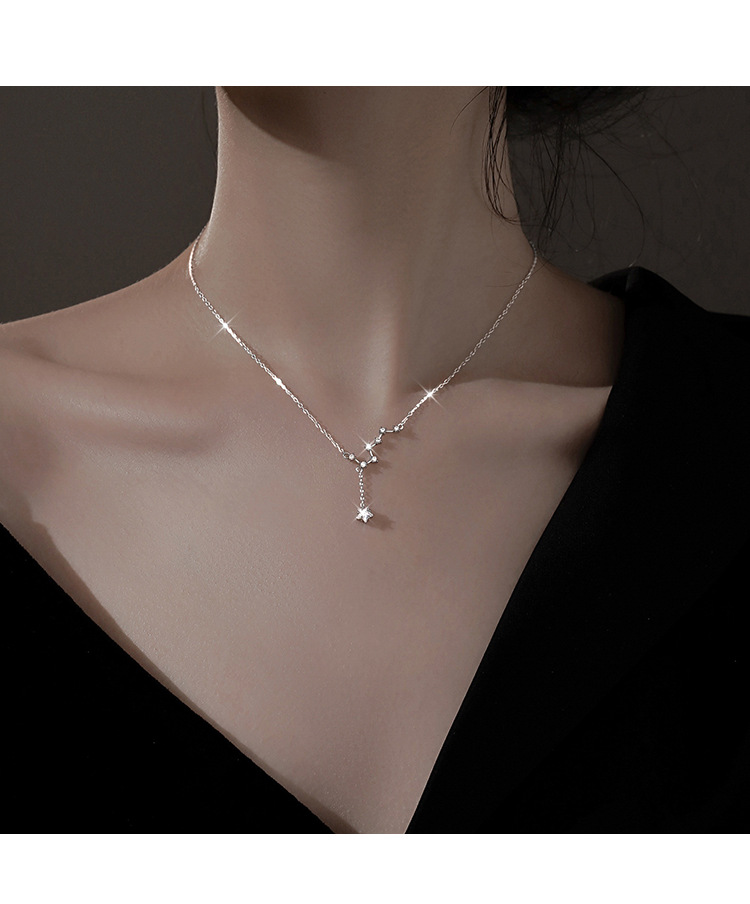 韩版轻奢小众设计北斗七星项链女简约百搭流苏锆石钛钢项链批发女