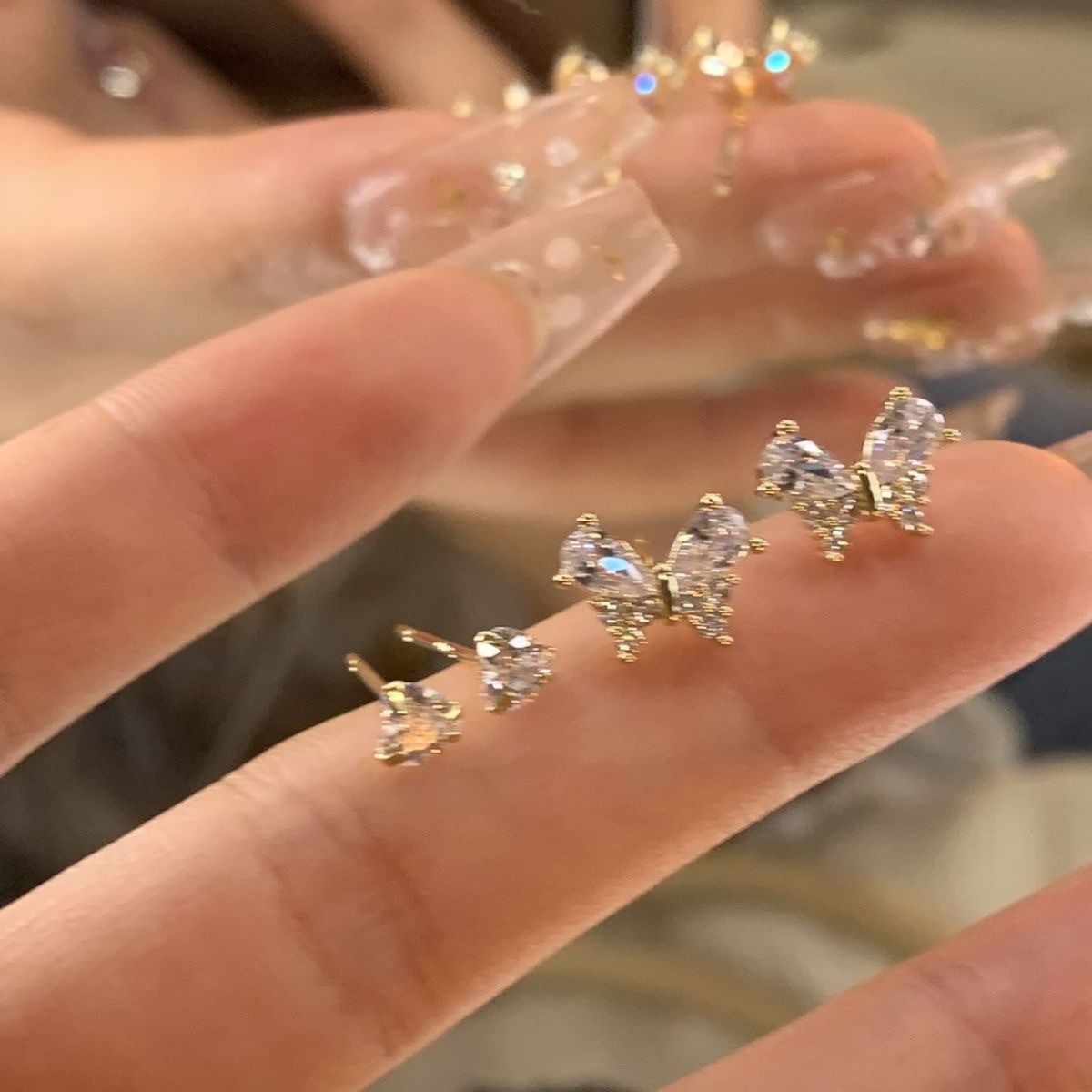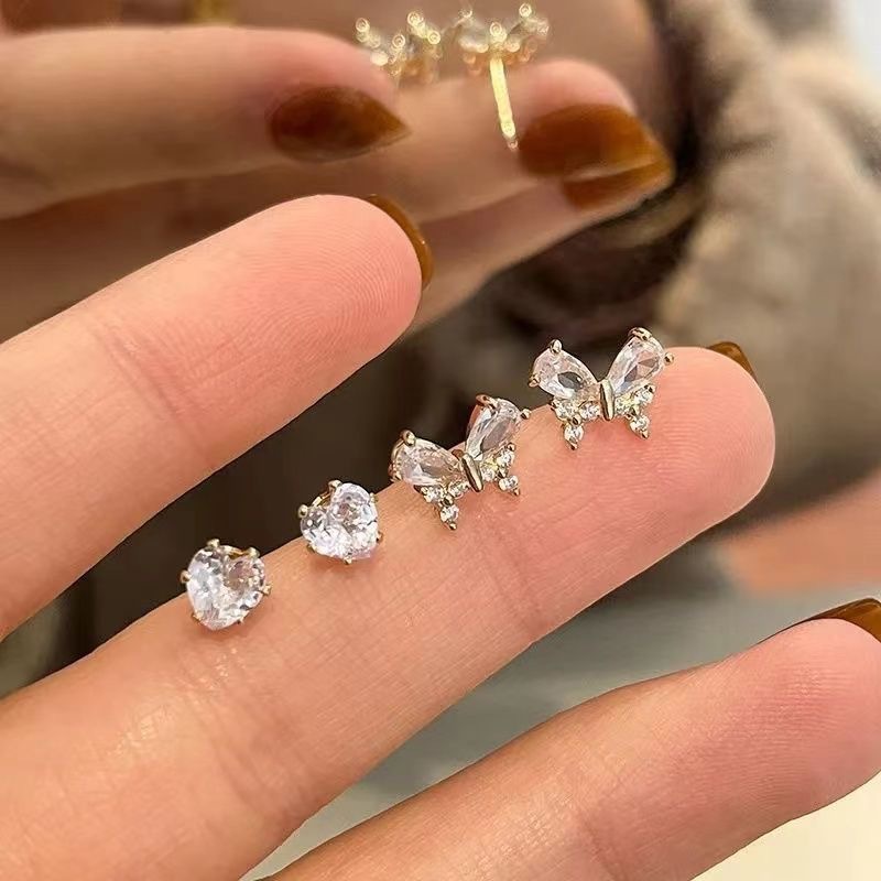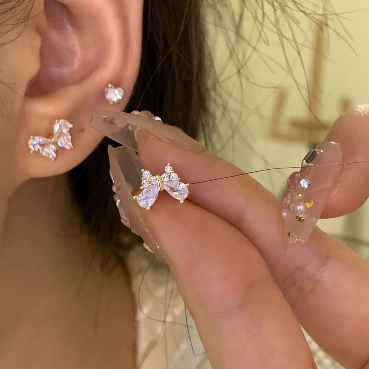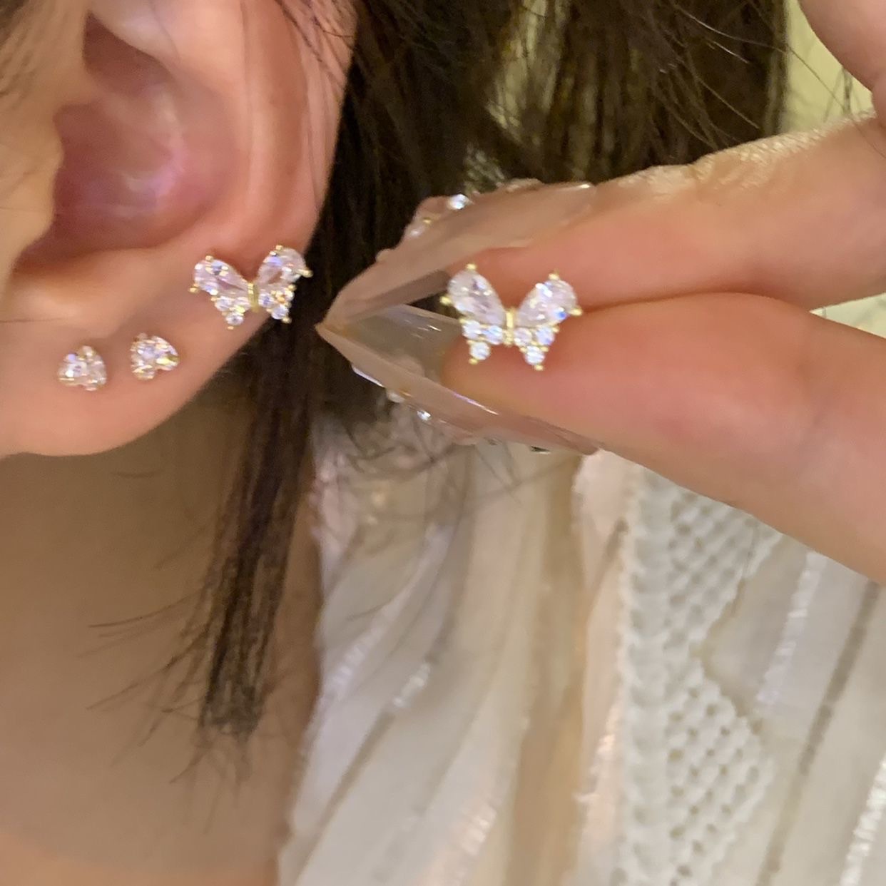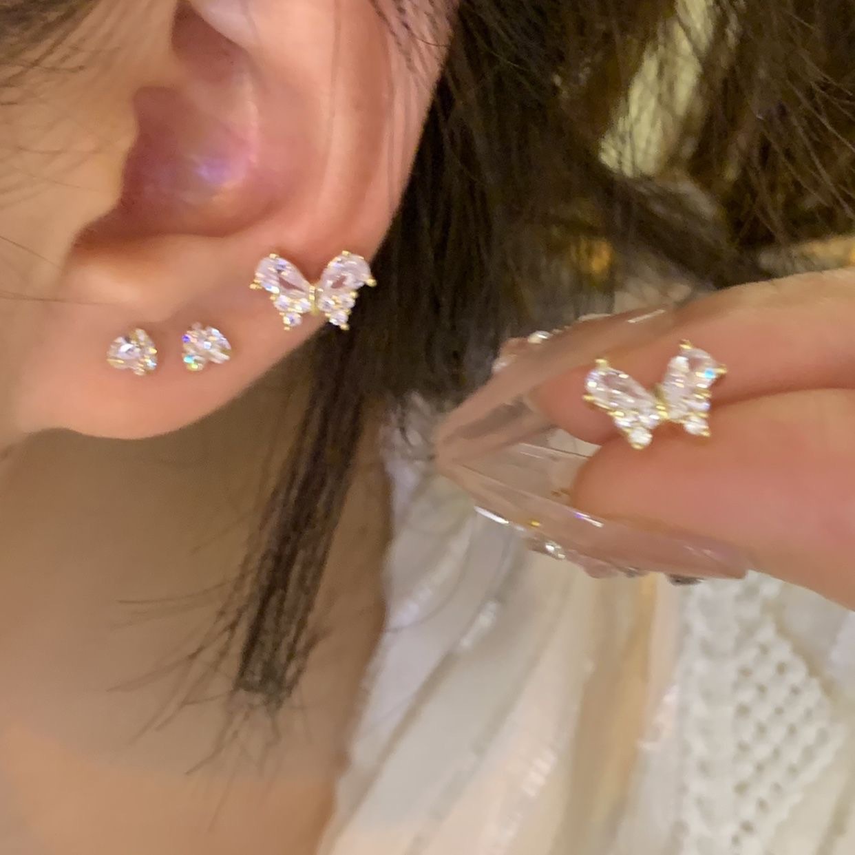 2024年新款超闪锆石蝴蝶四件套耳钉女ins设计高级感套装耳环耳饰
