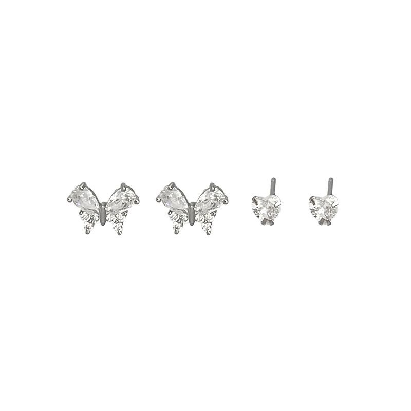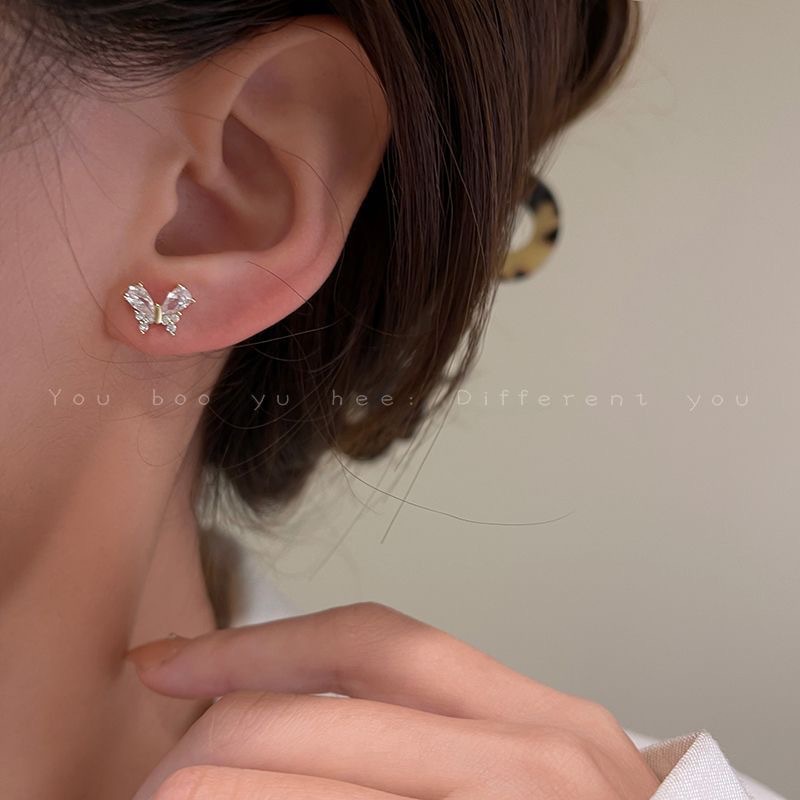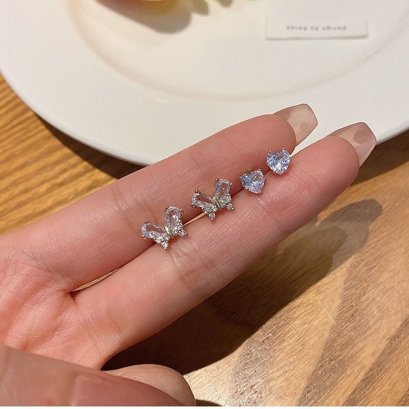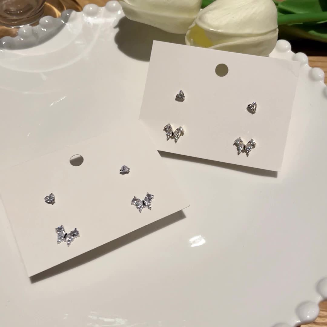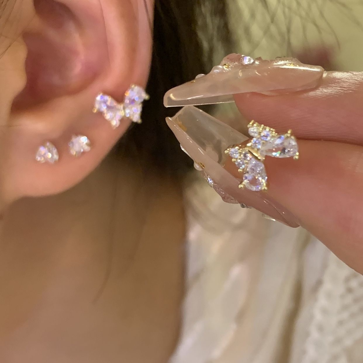 2024年新款超闪锆石蝴蝶四件套耳钉女ins设计高级感套装耳环耳饰