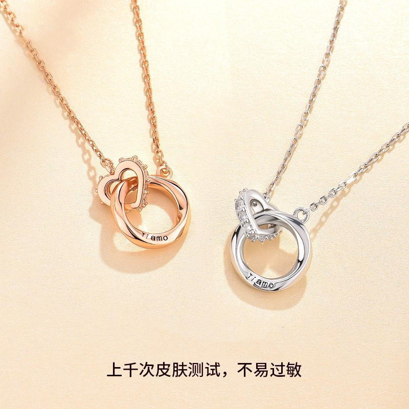 韩版莫比乌斯环钛钢项链女2024年新款潮双环锁骨链气质饰品批发