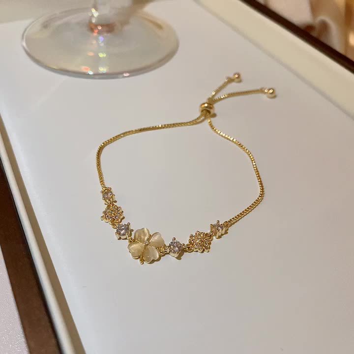 韩国轻奢风高级感猫眼石手链女轻奢小众设计精致爱心猫眼手链批发