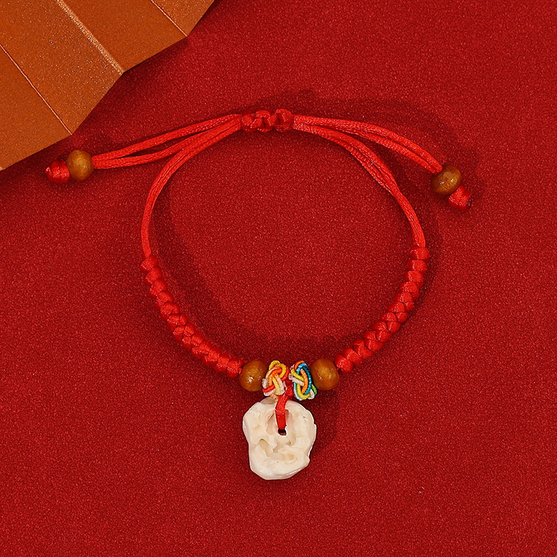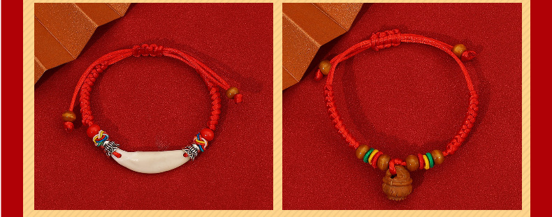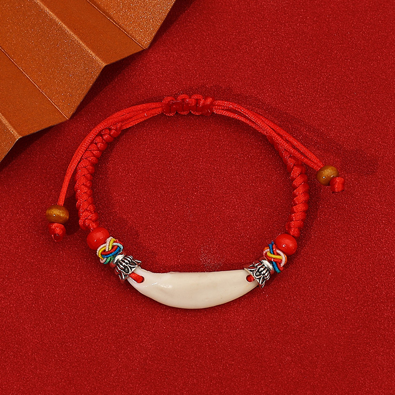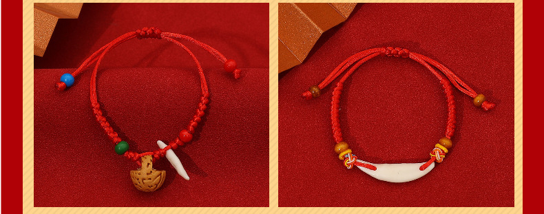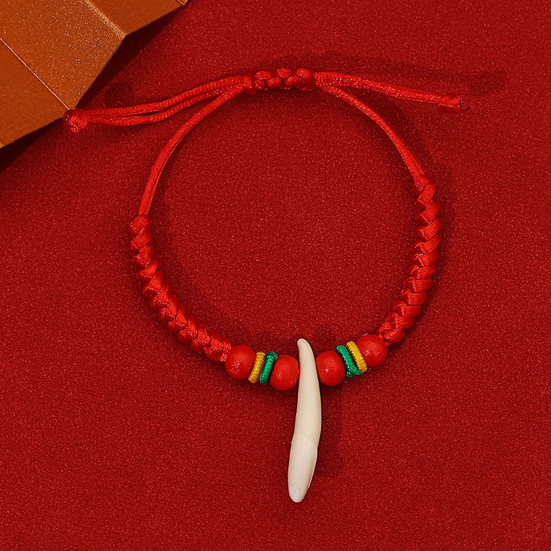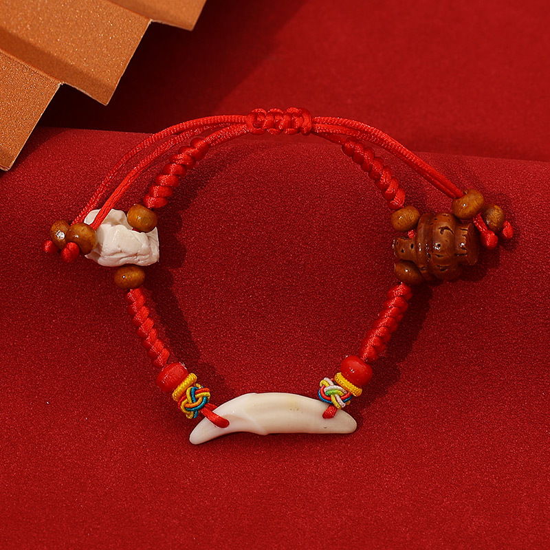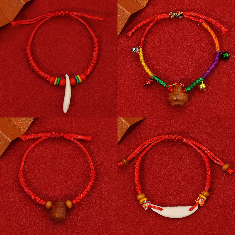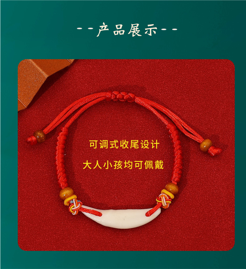 婴儿宝宝防惊吓手链儿童桃蓝猪惊骨编织手绳本命年狗牙压惊手链