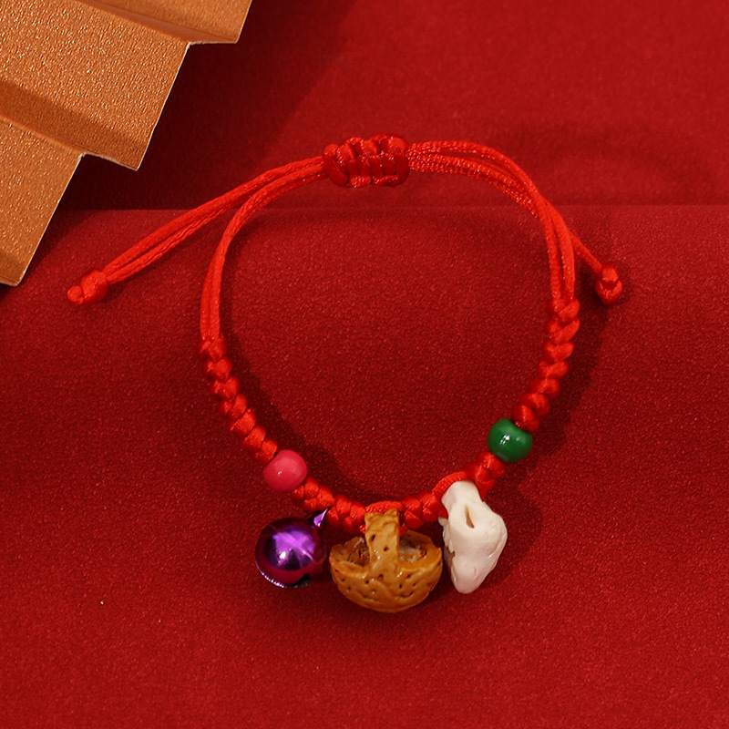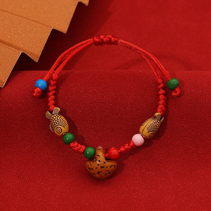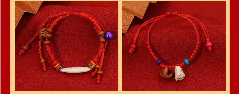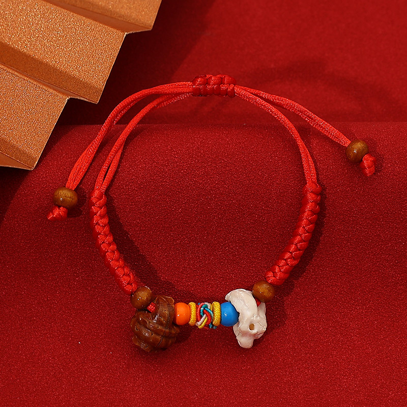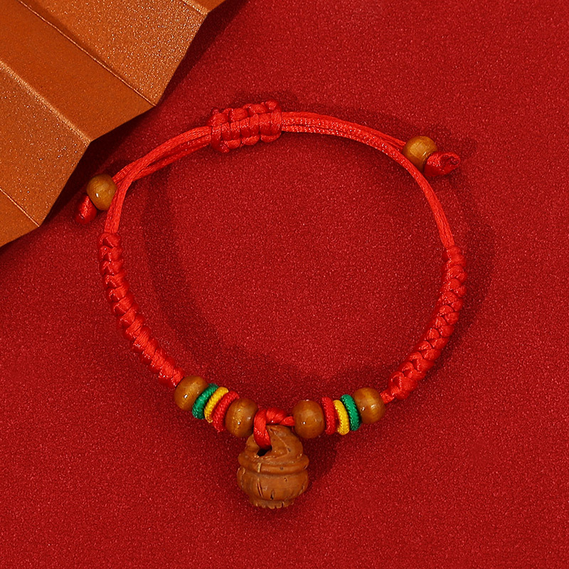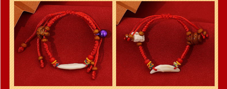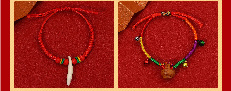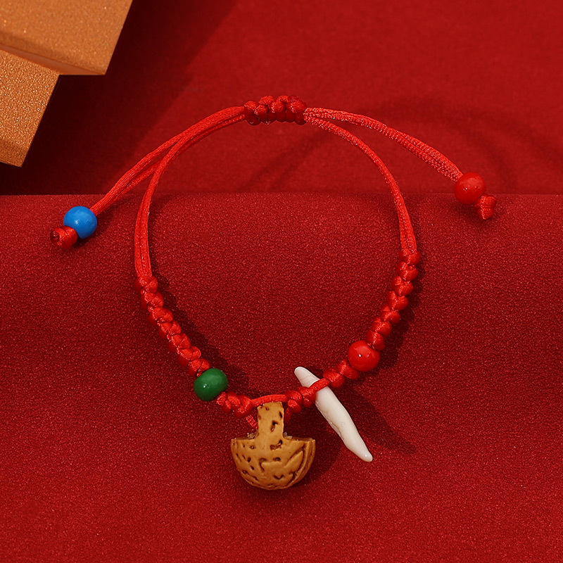 婴儿宝宝防惊吓手链儿童桃蓝猪惊骨编织手绳本命年狗牙压惊手链