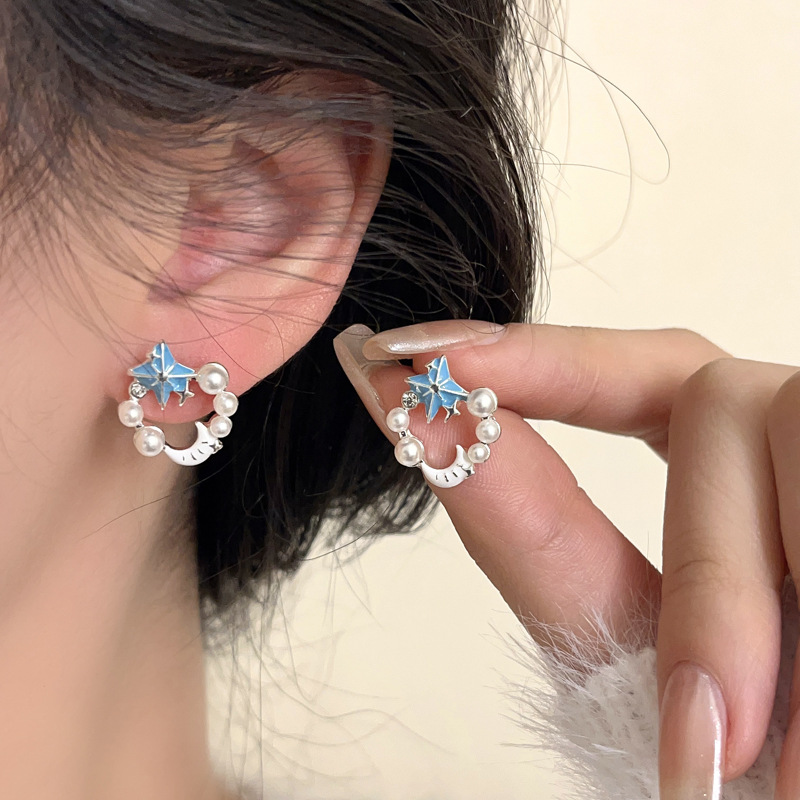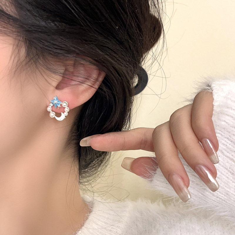 饰品S925银针小众百搭气质珍珠耳钉网红耳饰甜美可爱星系月亮耳环