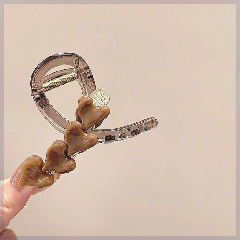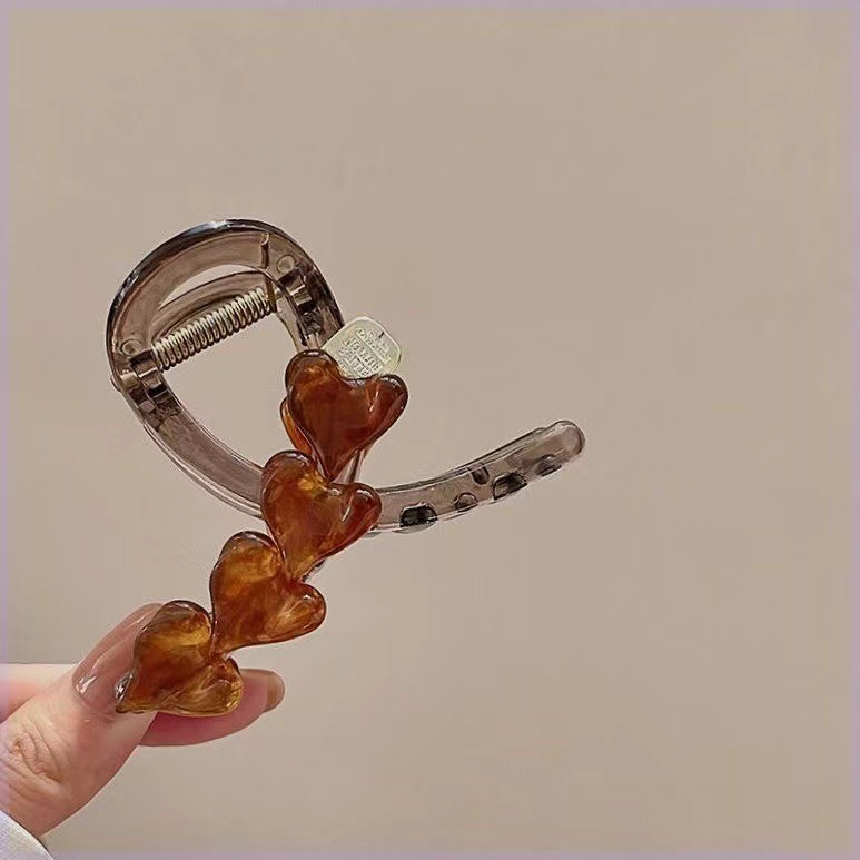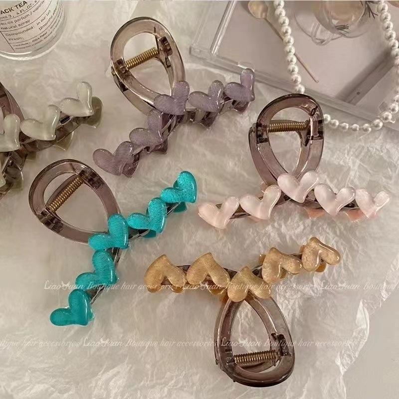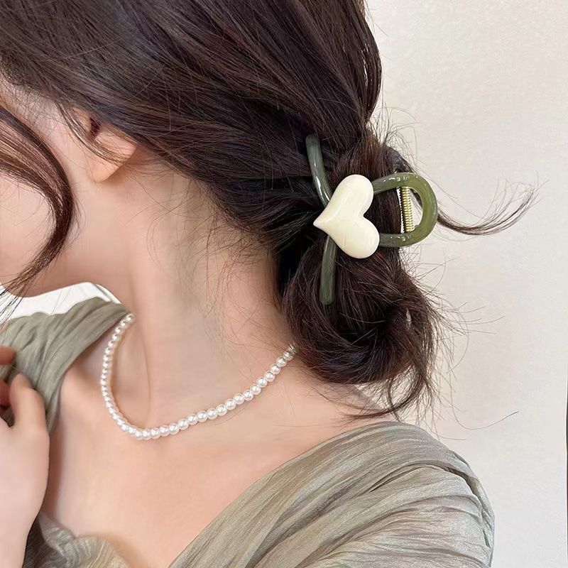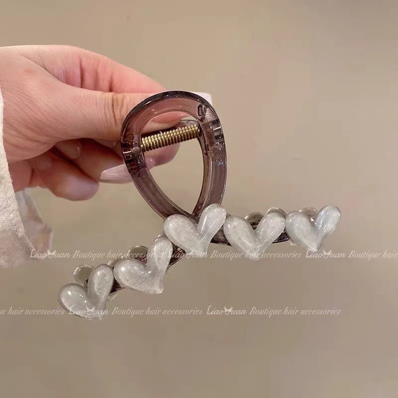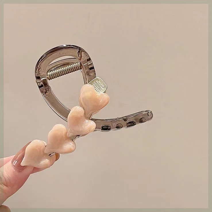 清新韩系~抓夹女2024春夏新款简约爱心发夹中号盘发夹鲨鱼夹子