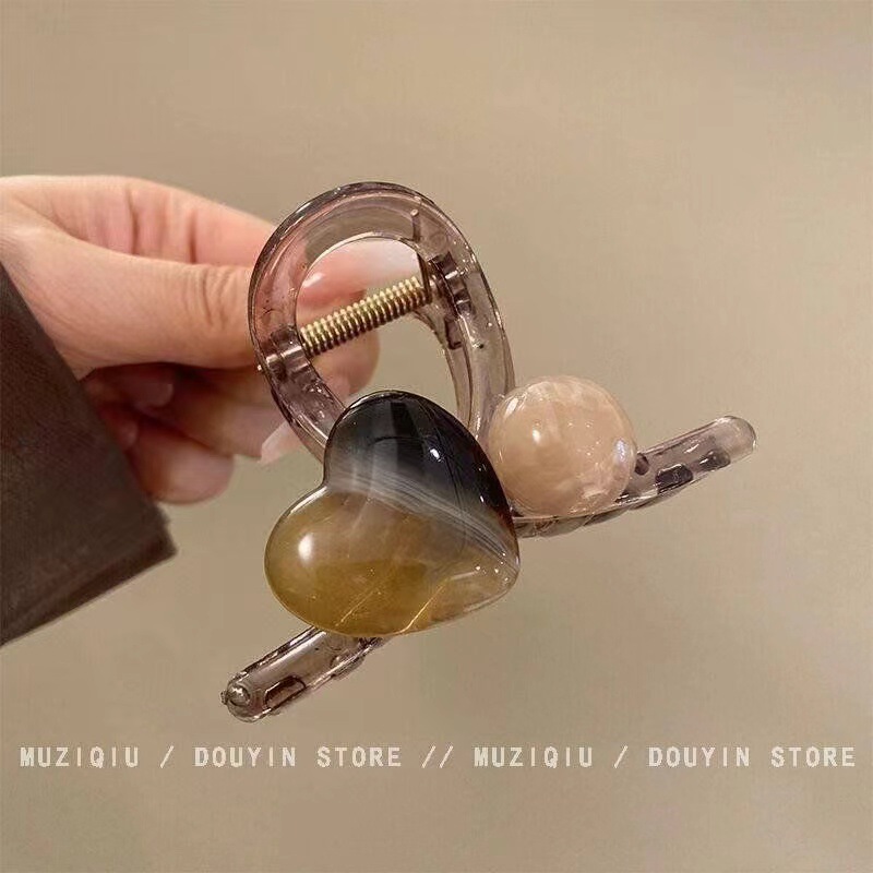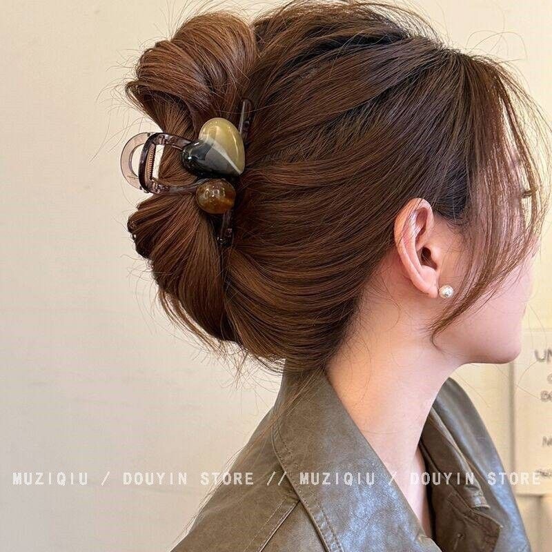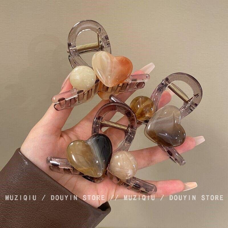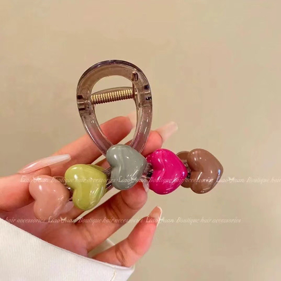 清新韩系~抓夹女2024春夏新款简约爱心发夹中号盘发夹鲨鱼夹子
