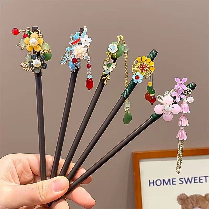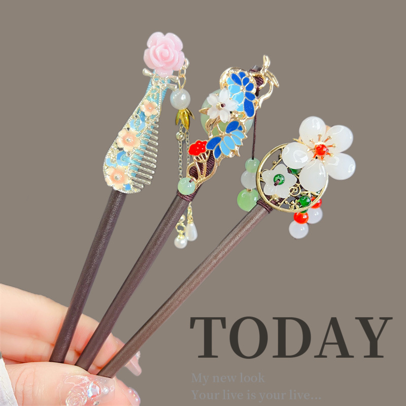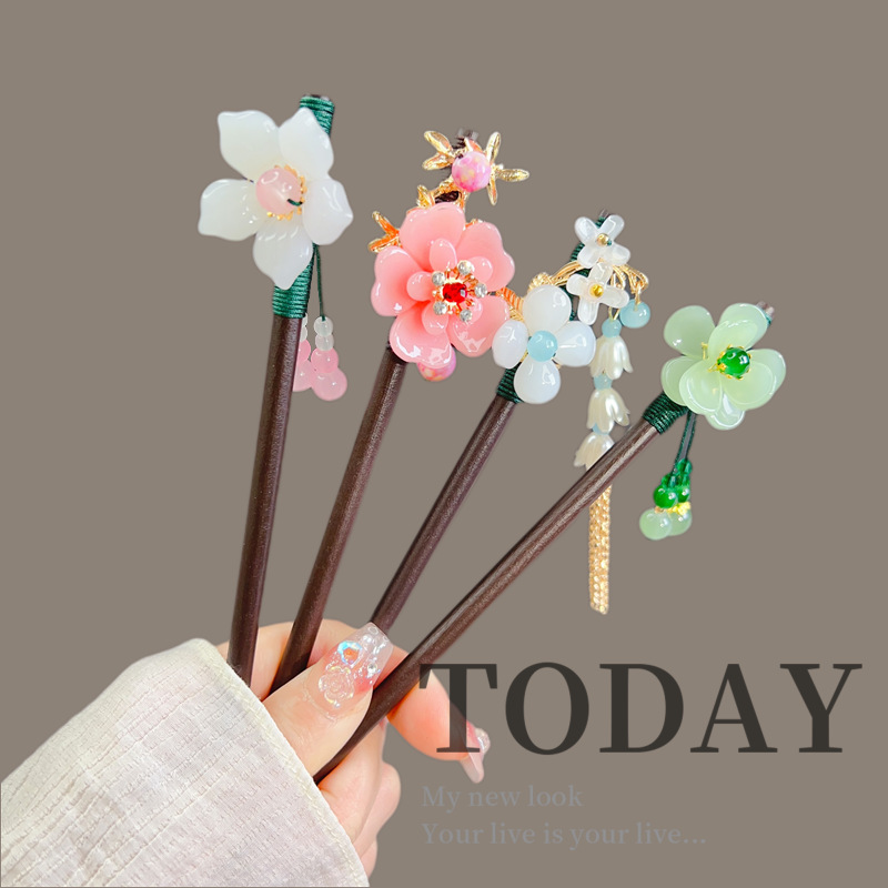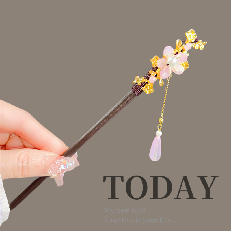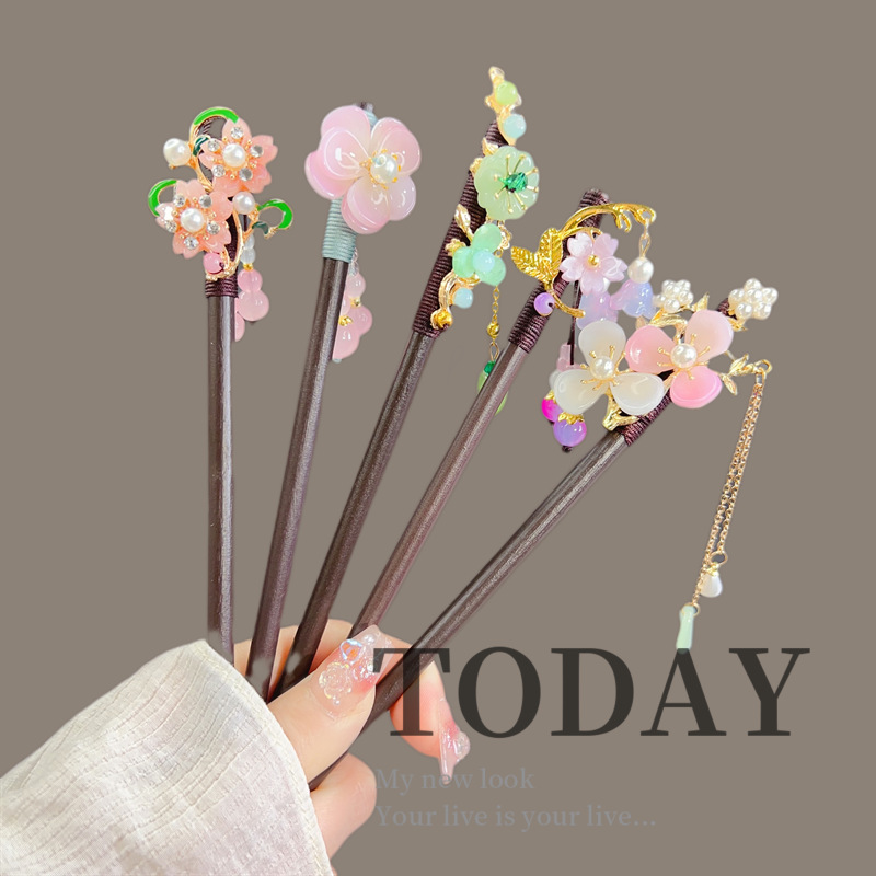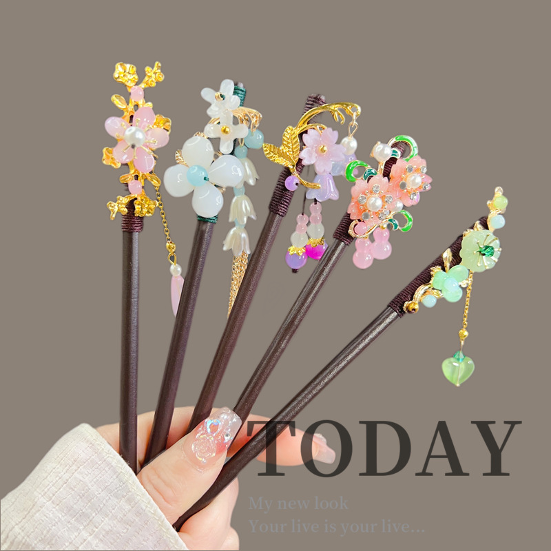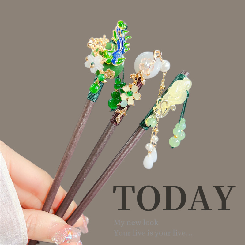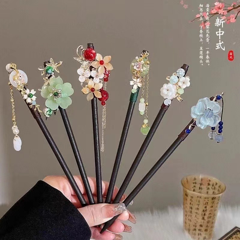 高级感新款古风发饰步摇流苏发簪子古装汉服发钗子新中式国风木簪