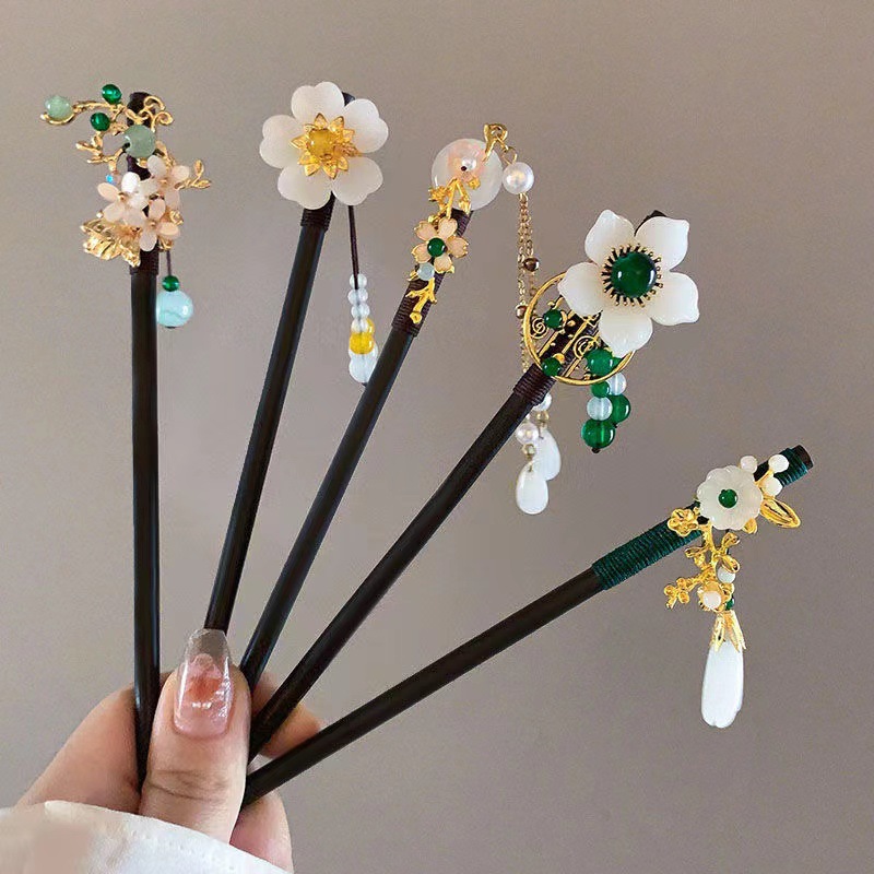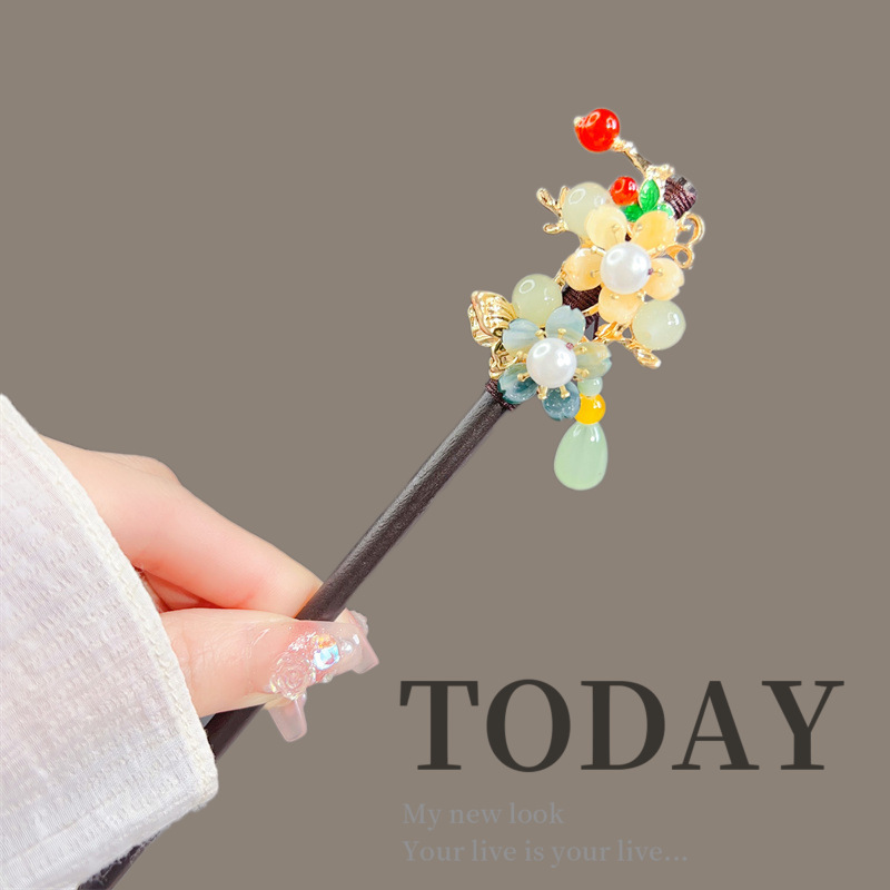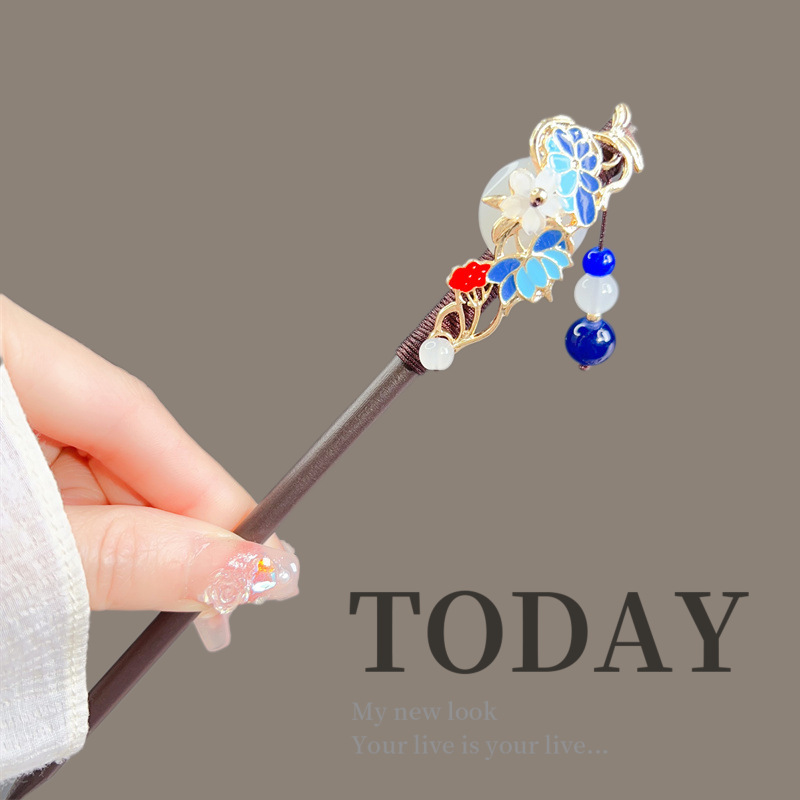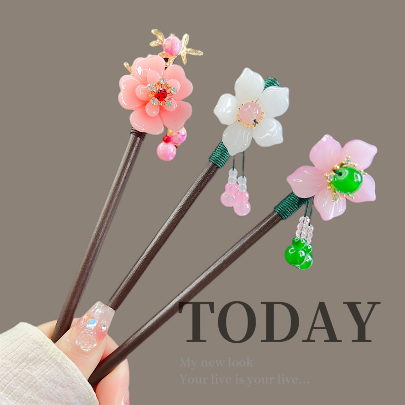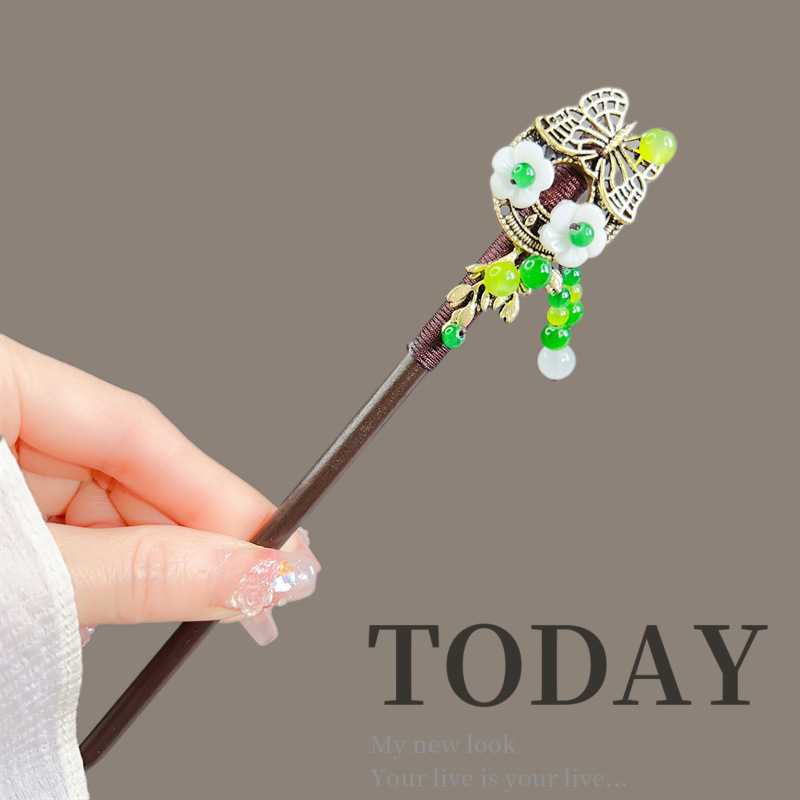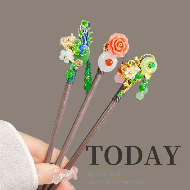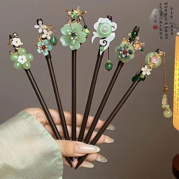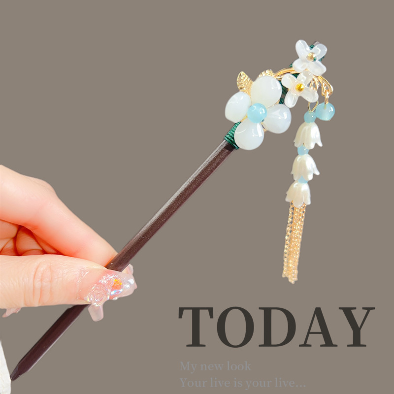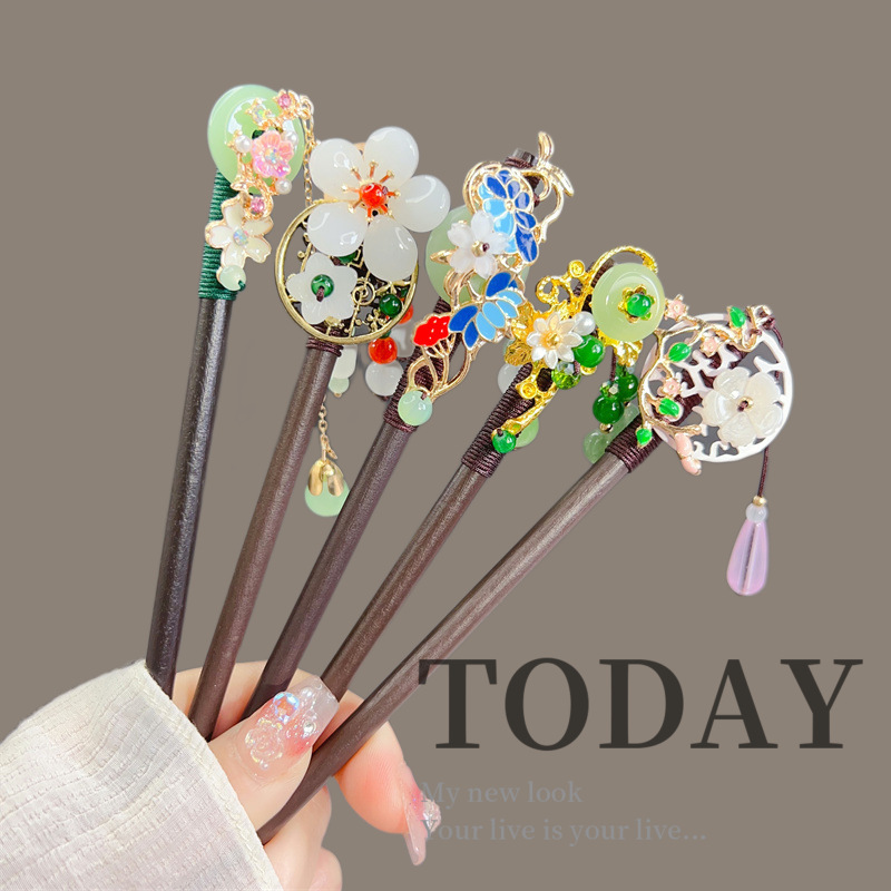 高级感新款古风发饰步摇流苏发簪子古装汉服发钗子新中式国风木簪