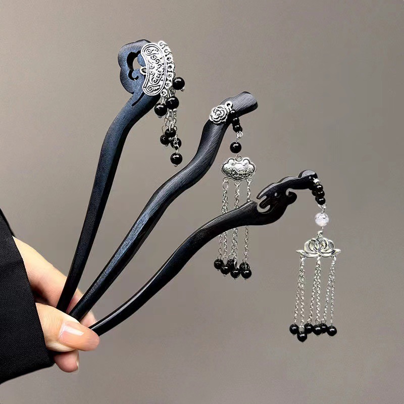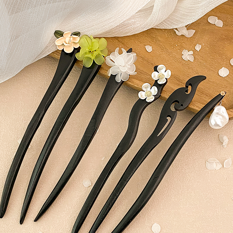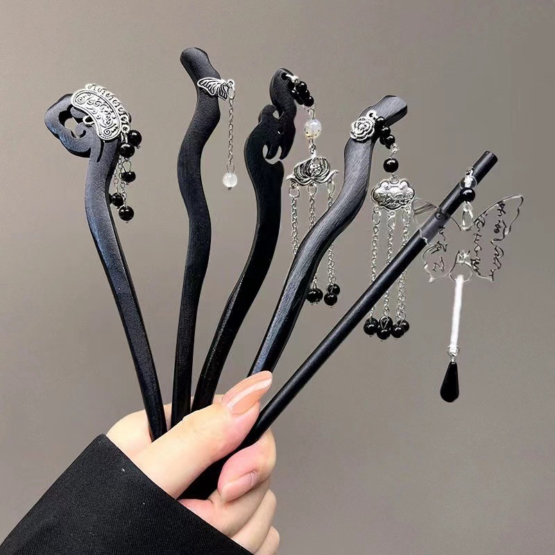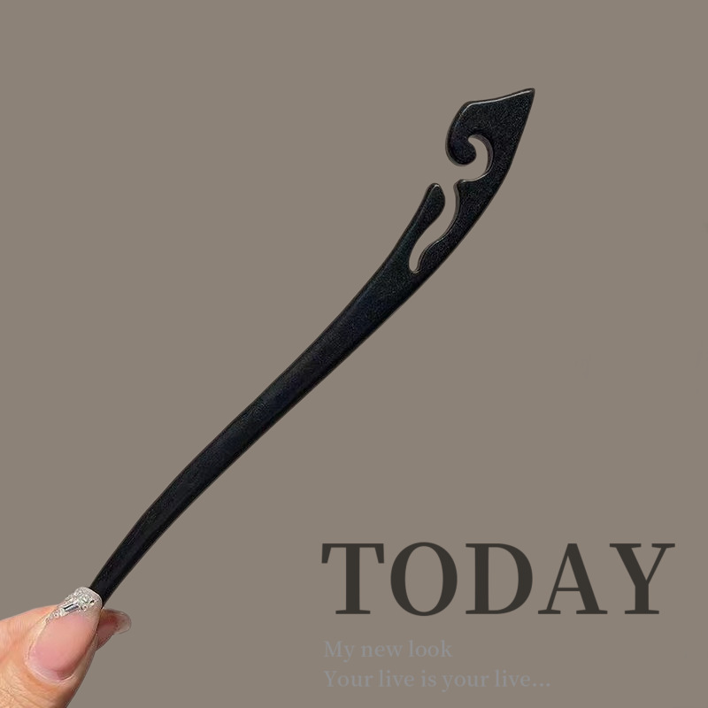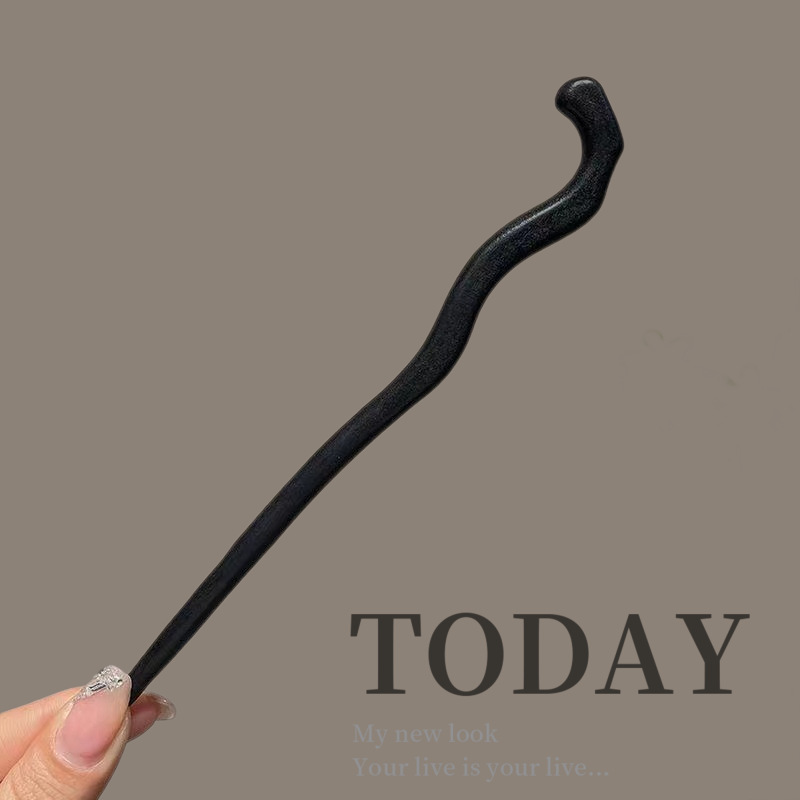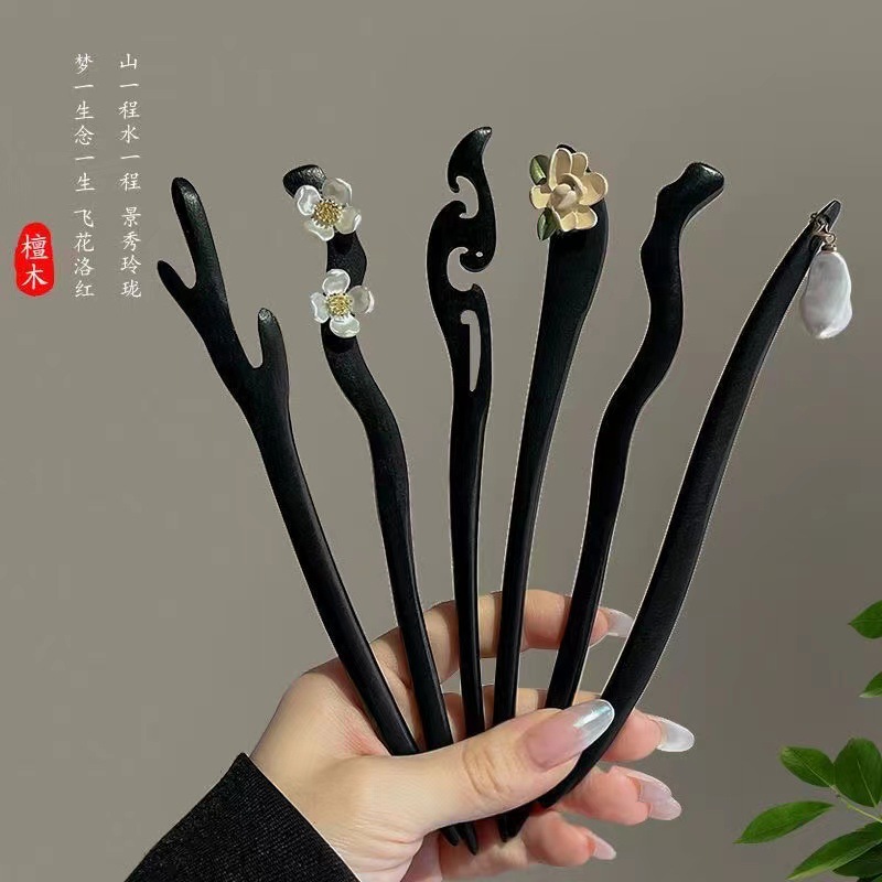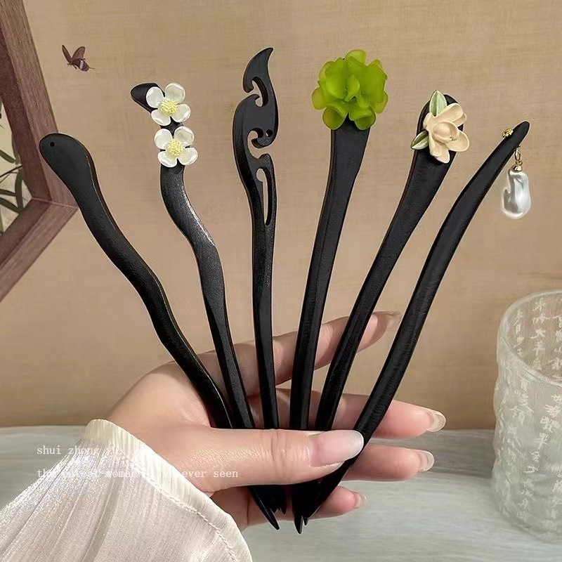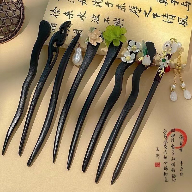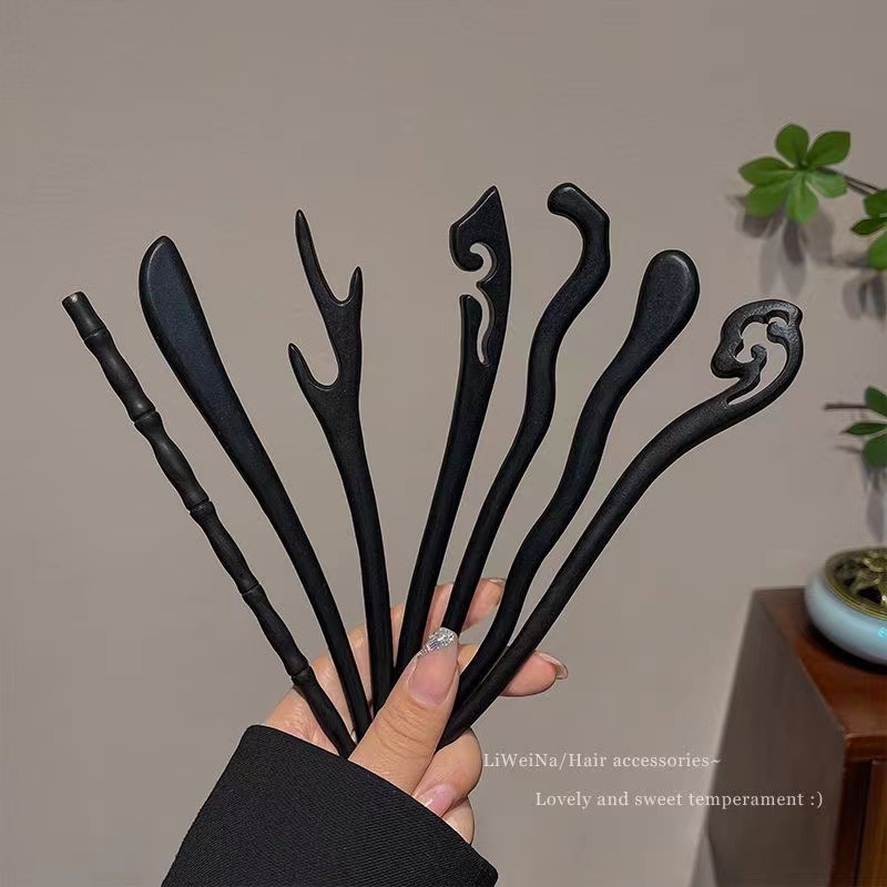 古风木质发簪女黑色高级感丸子头盘发簪子新中式汉服旗袍发钗头饰