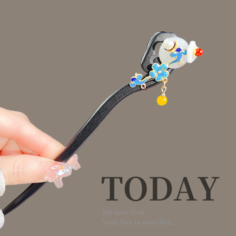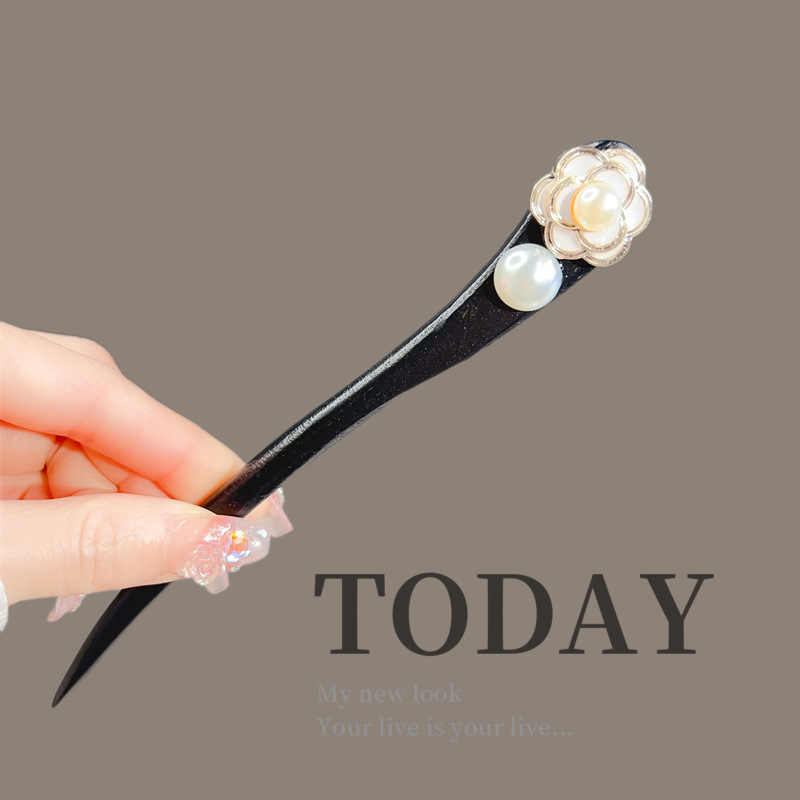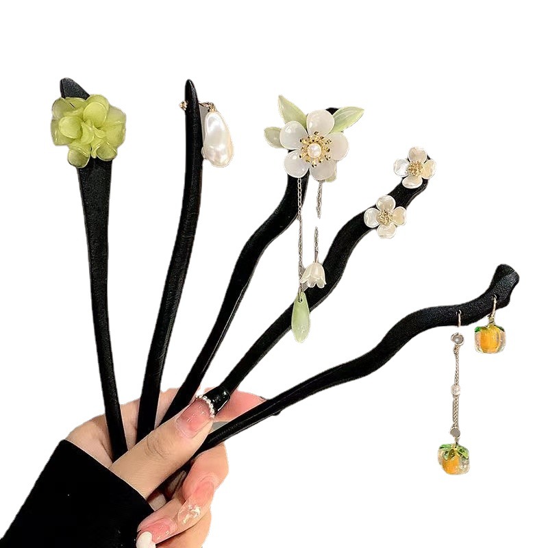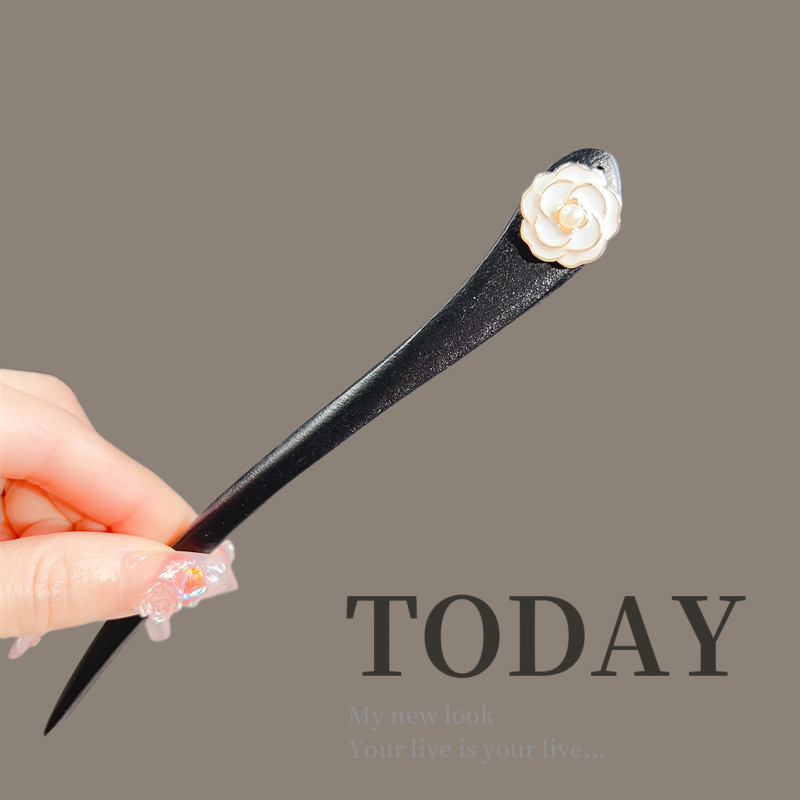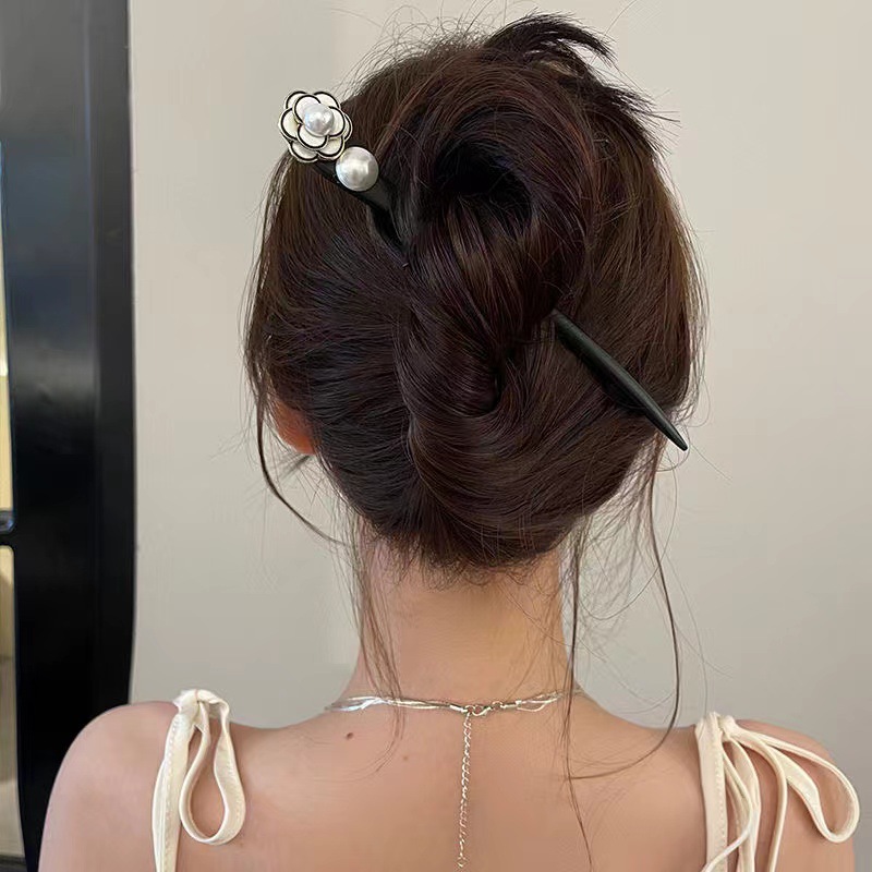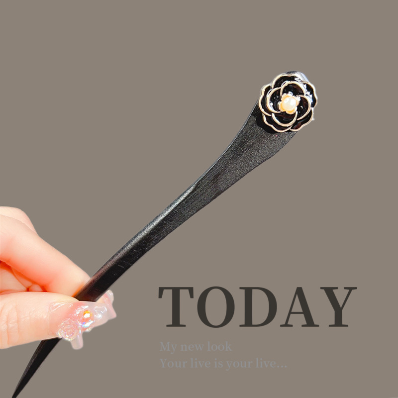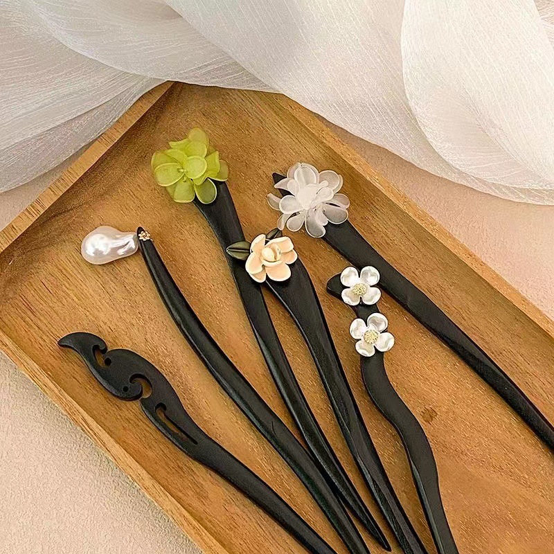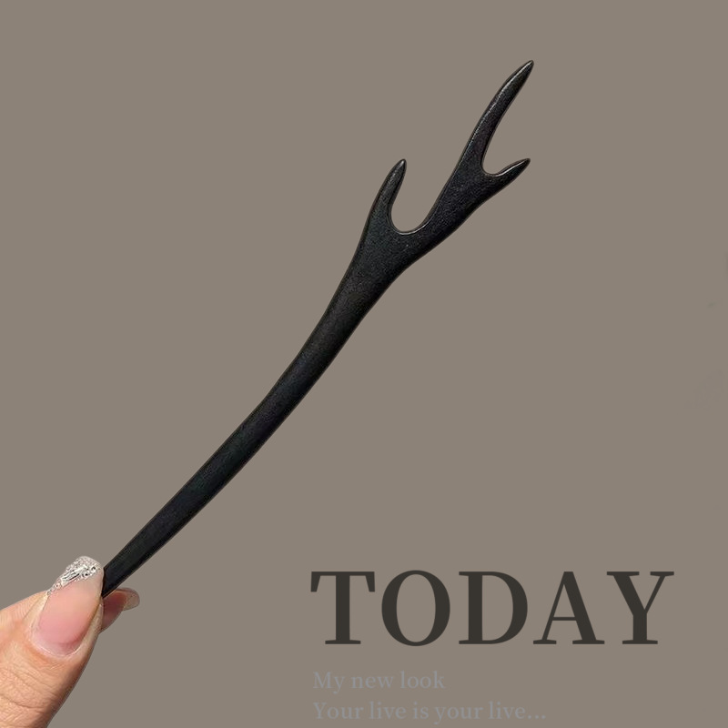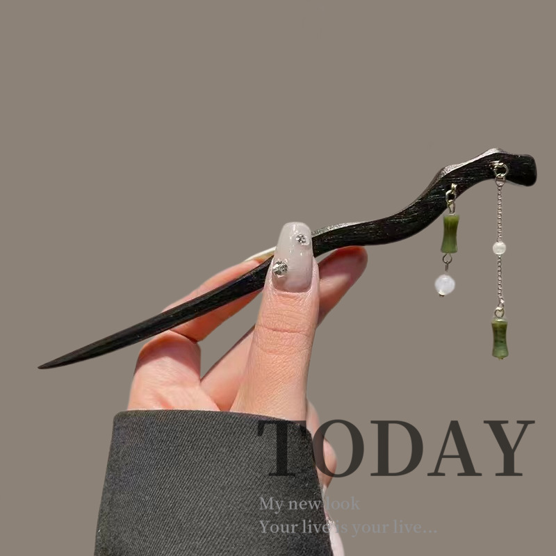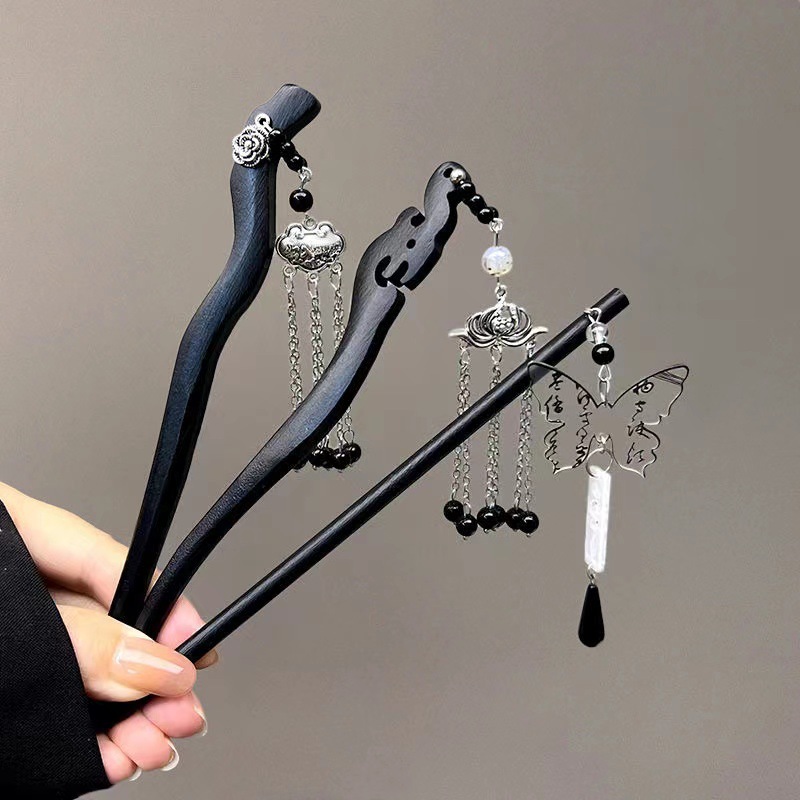 古风木质发簪女黑色高级感丸子头盘发簪子新中式汉服旗袍发钗头饰