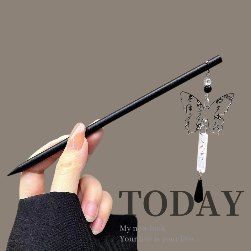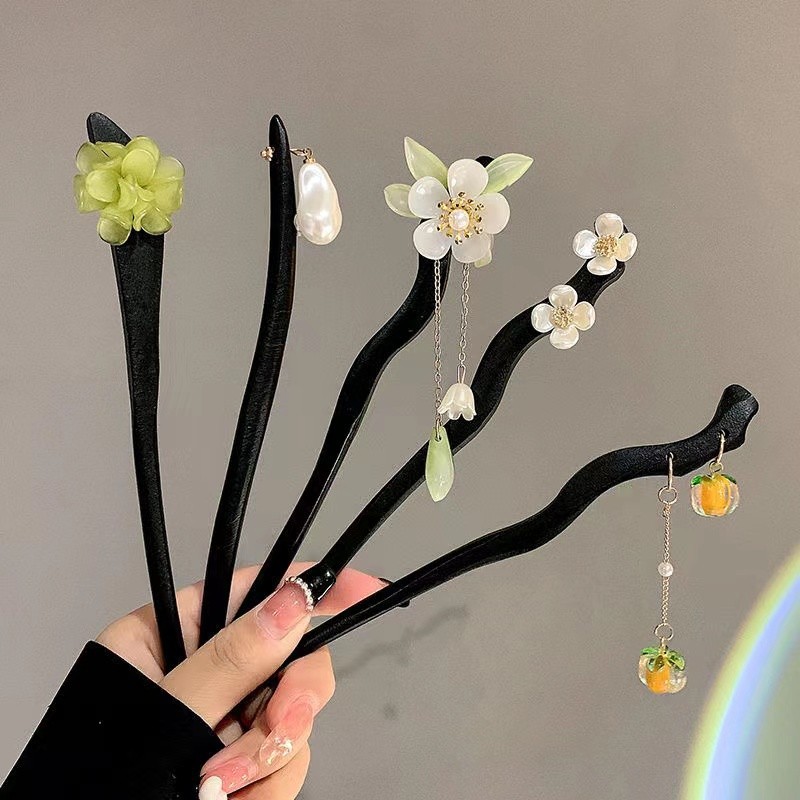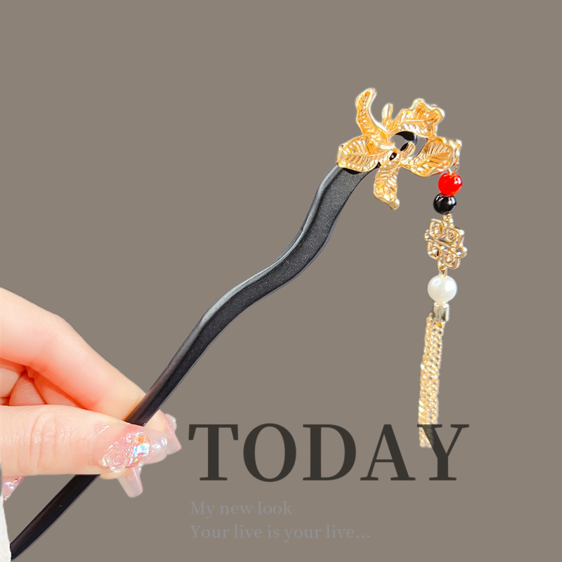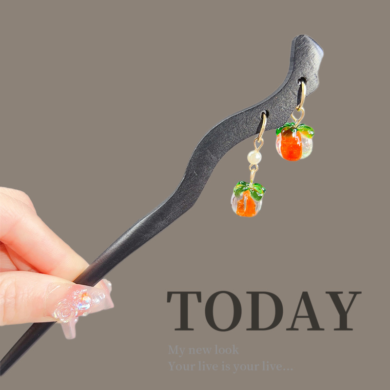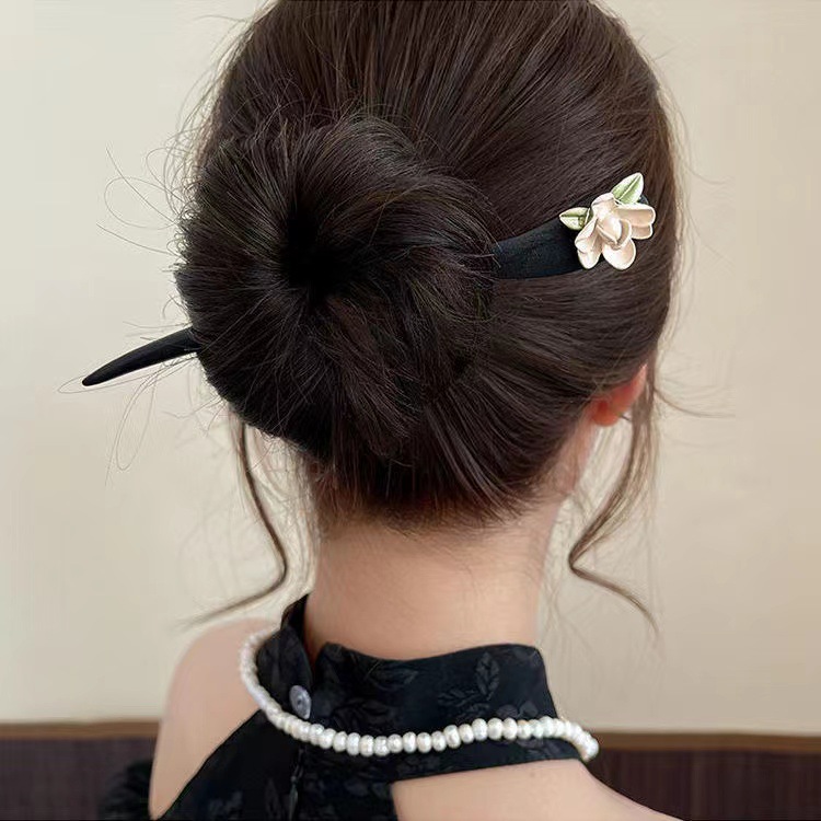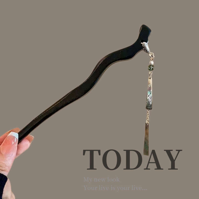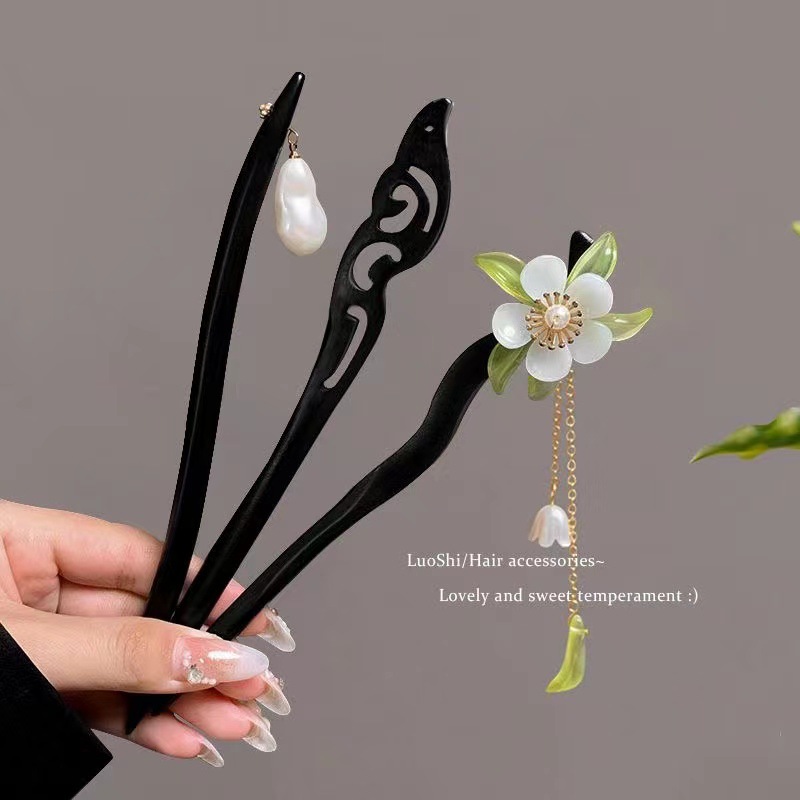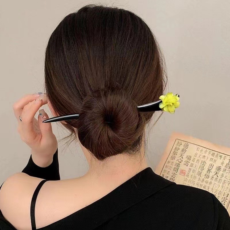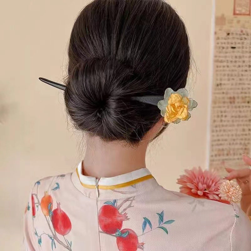 古风木质发簪女黑色高级感丸子头盘发簪子新中式汉服旗袍发钗头饰