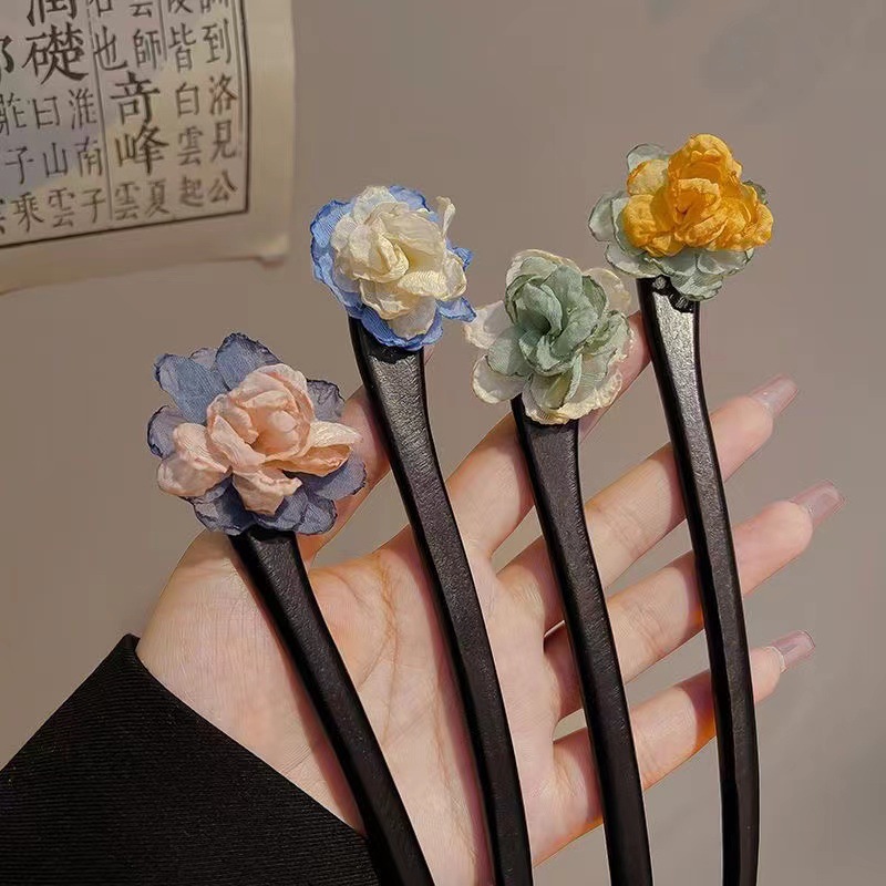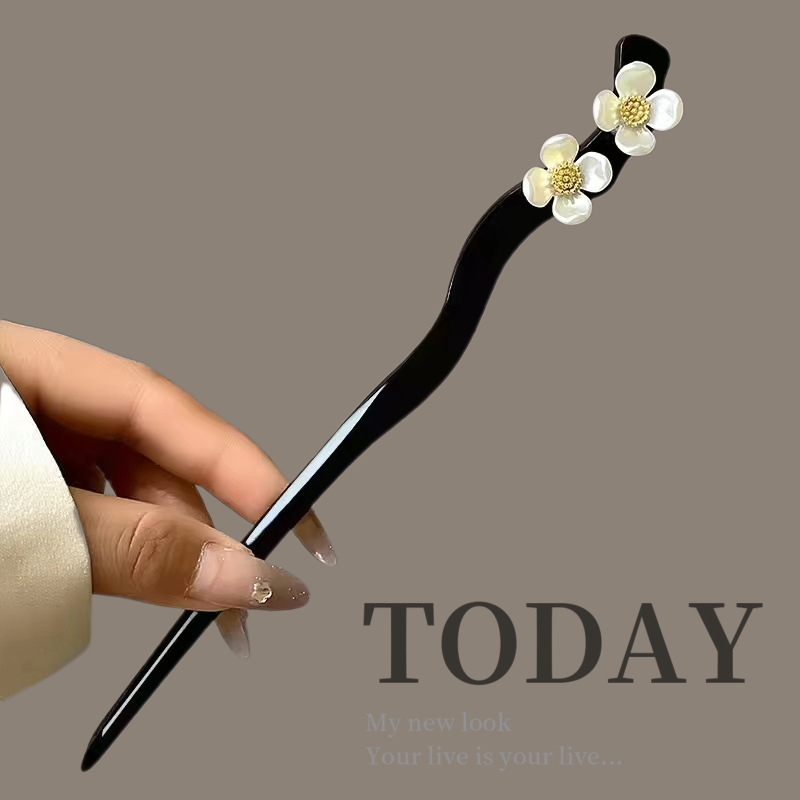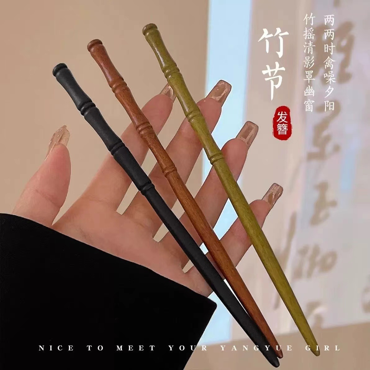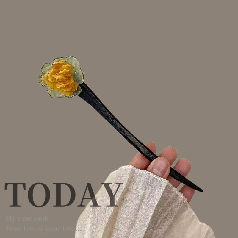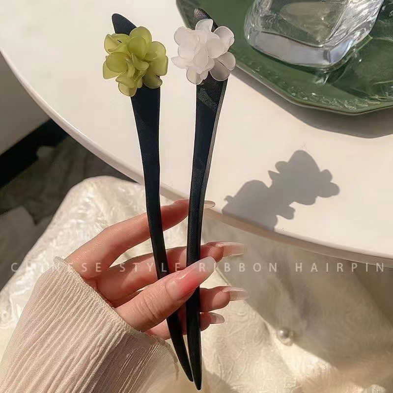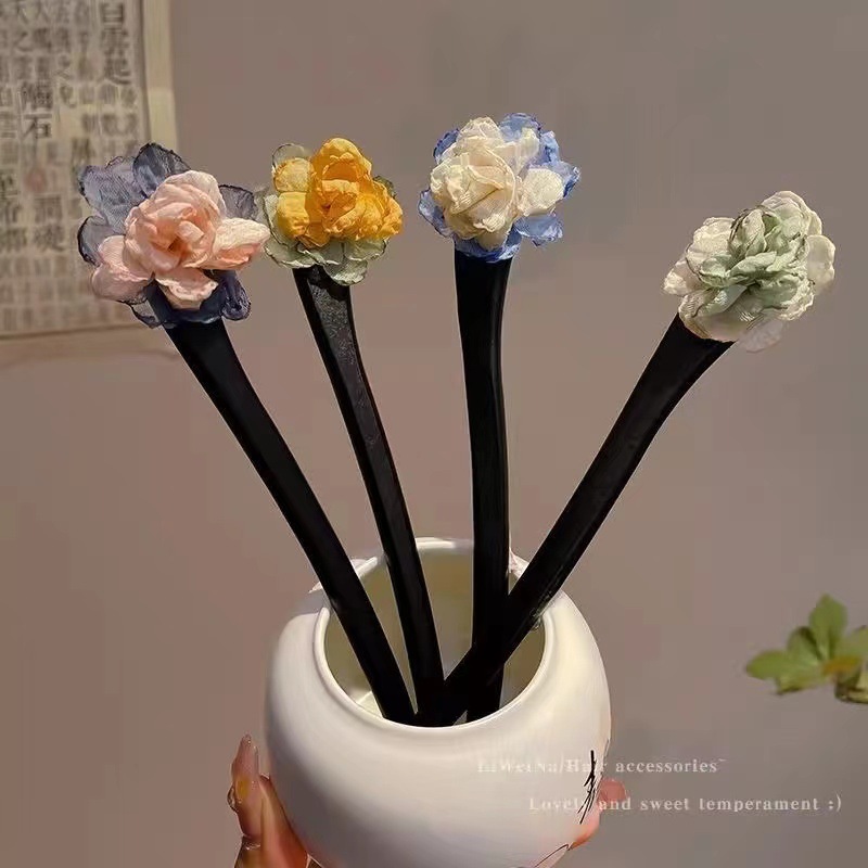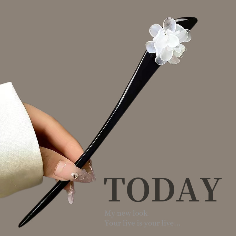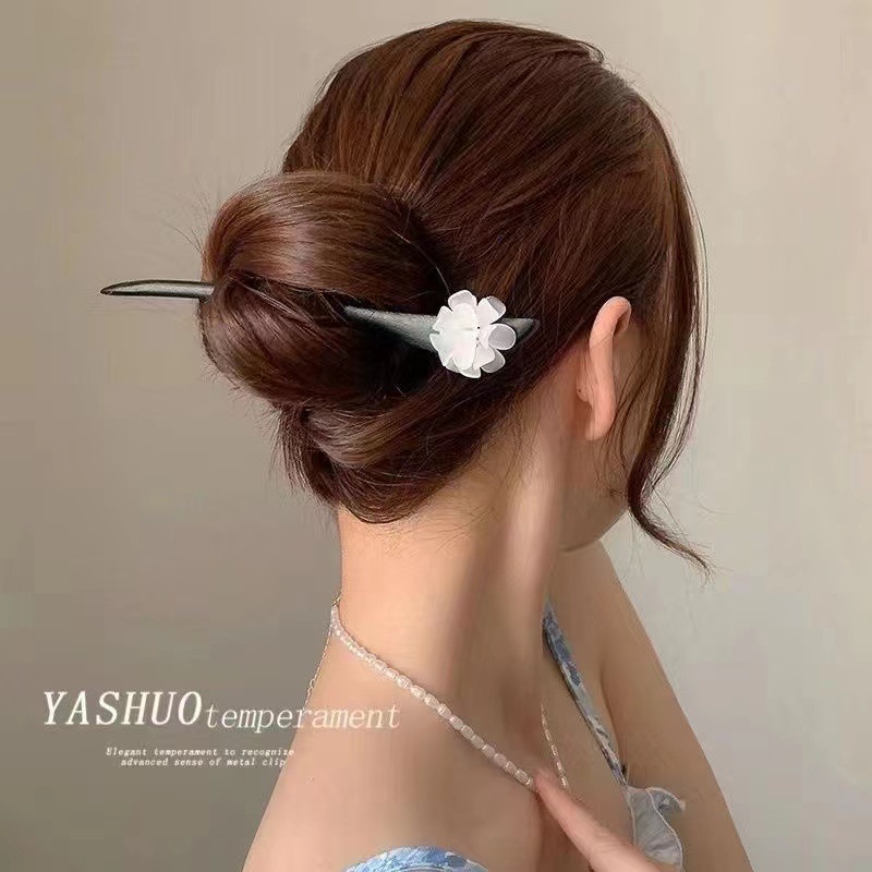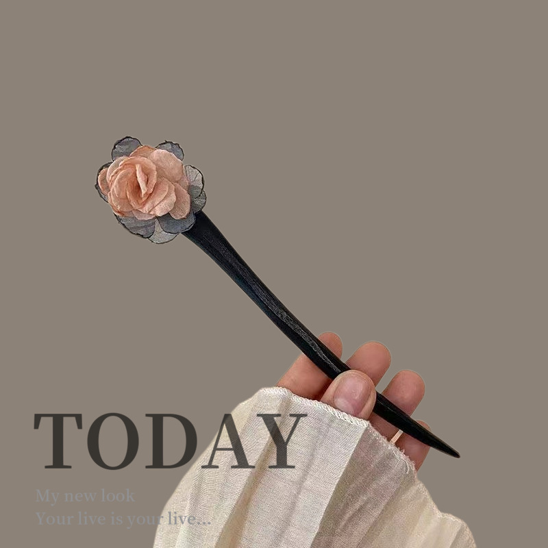 古风木质发簪女黑色高级感丸子头盘发簪子新中式汉服旗袍发钗头饰