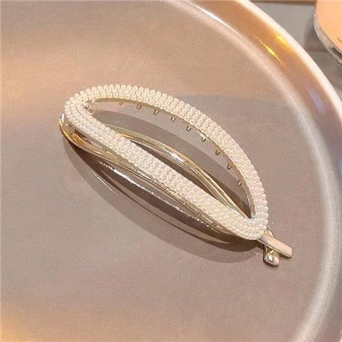 珍珠镶钻发夹女一字夹五瓣花吊坠后脑勺盘发抓夹带齿扭扭发卡头饰
