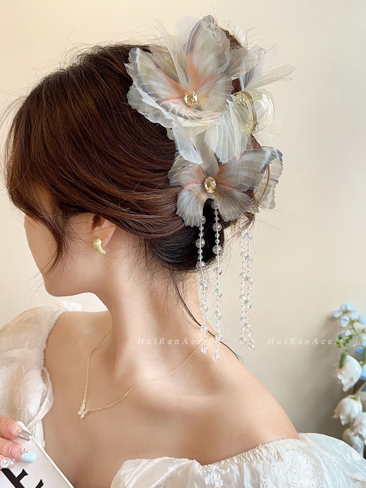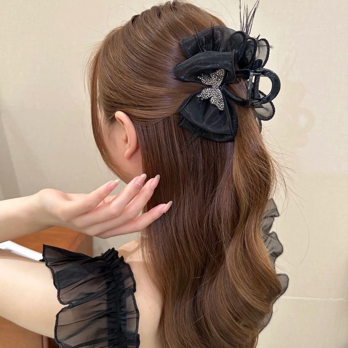 2023新款法式羽毛发夹超仙大号抓夹网红气质头饰发量多爆款鲨鱼夹