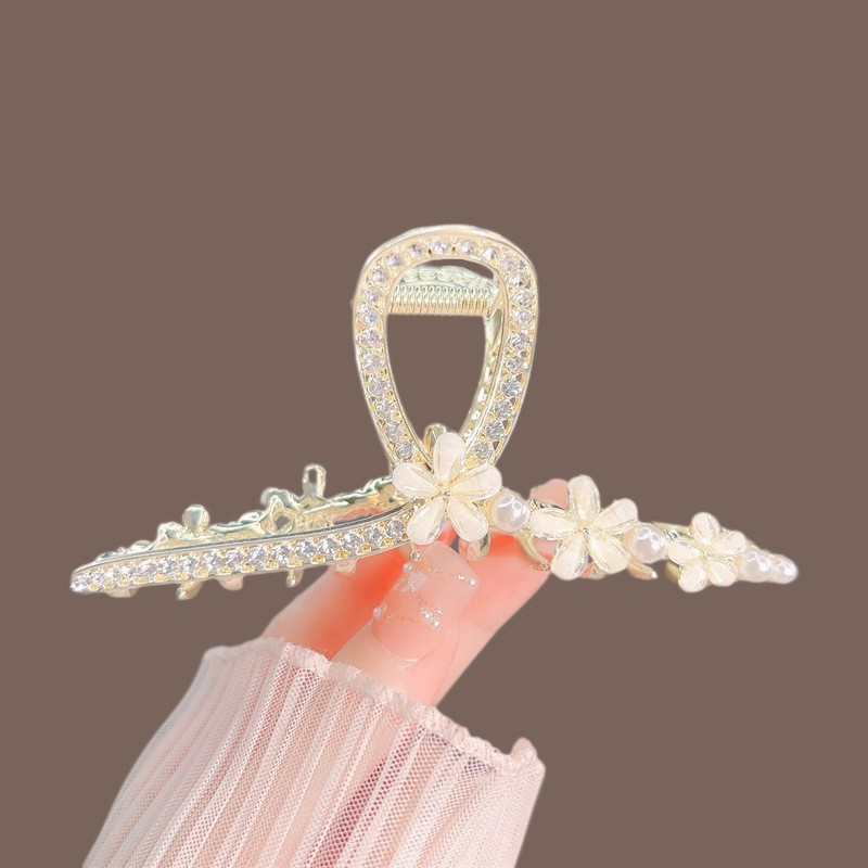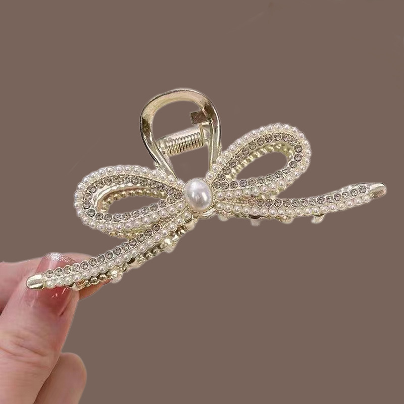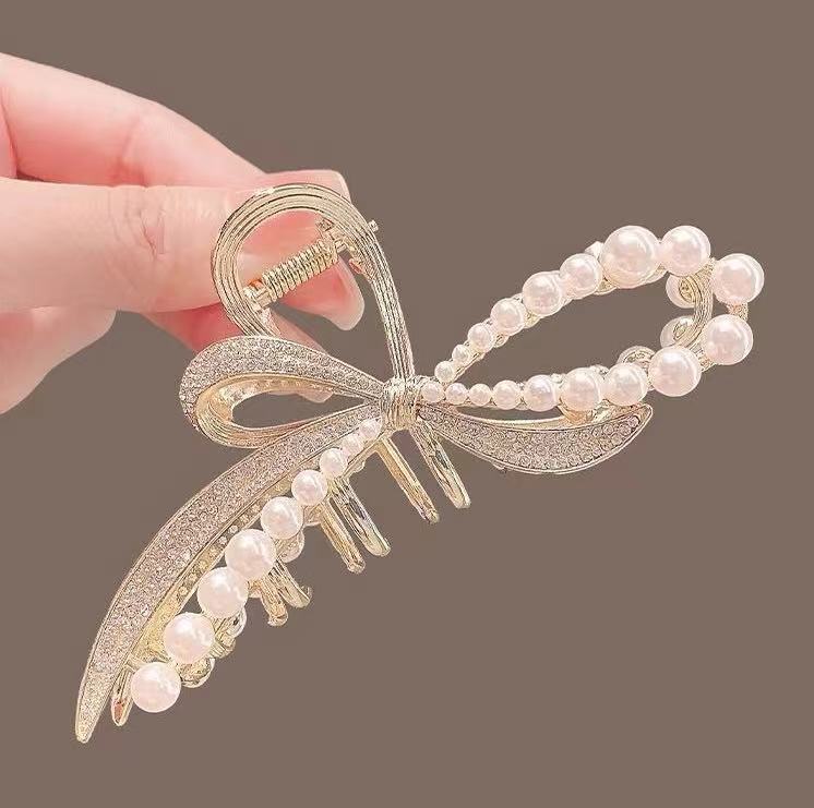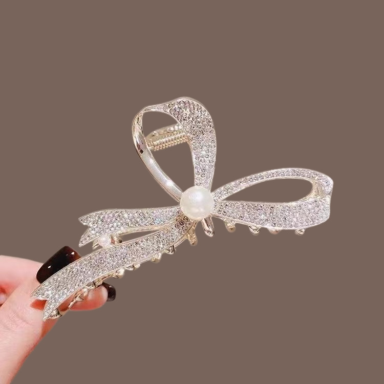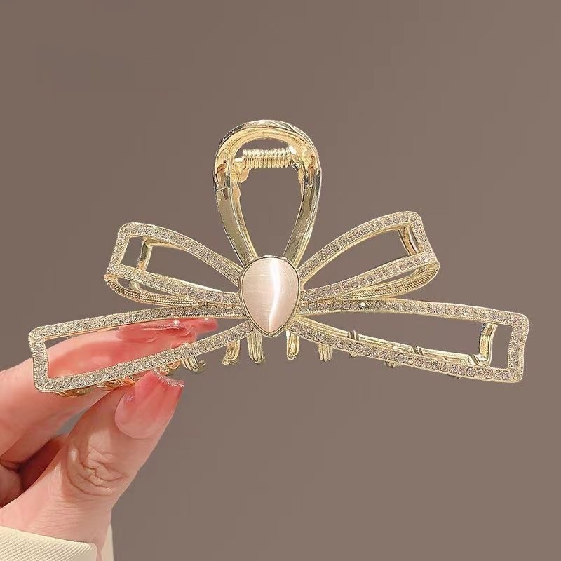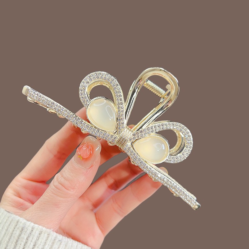2024新款轻奢气质蝴蝶结发夹镶满钻大号合金抓夹后脑勺盘发鲨鱼夹
