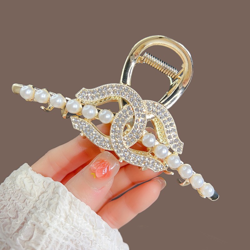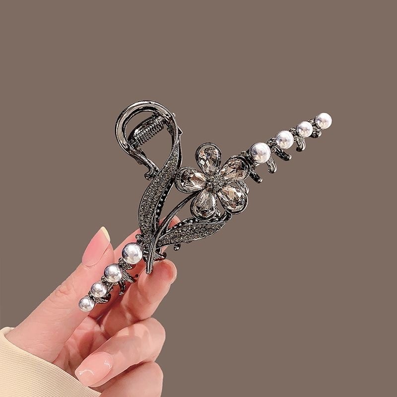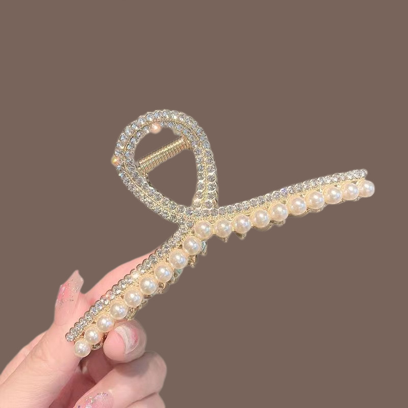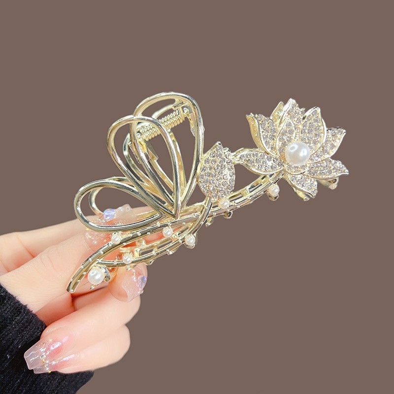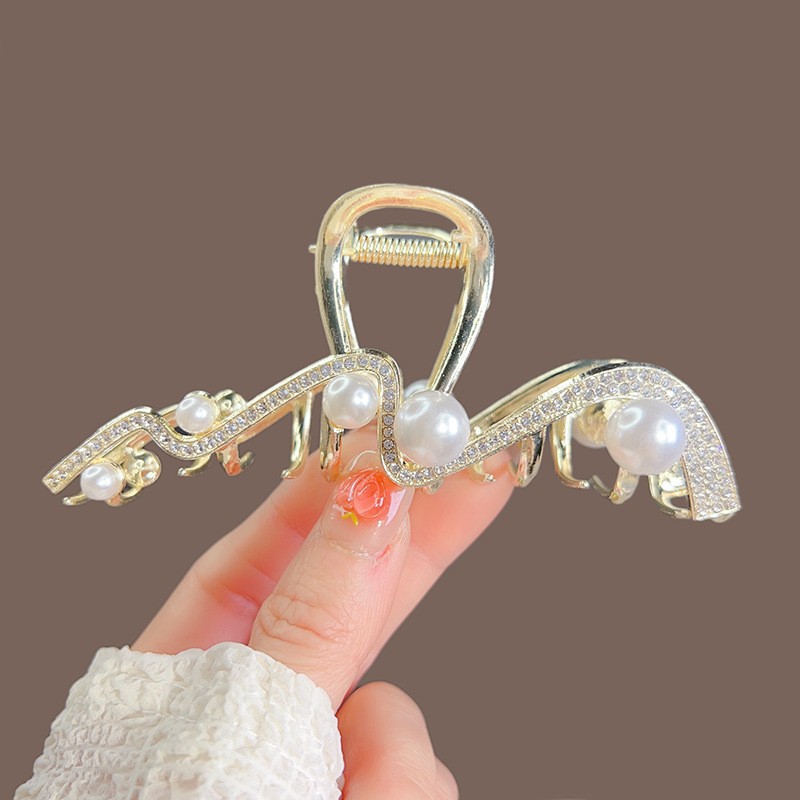 2024新款轻奢气质蝴蝶结发夹镶满钻大号合金抓夹后脑勺盘发鲨鱼夹