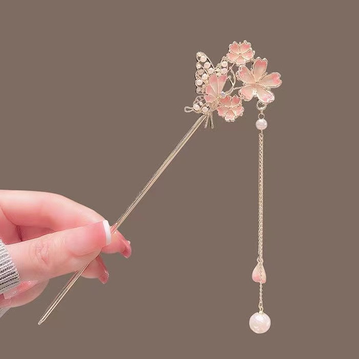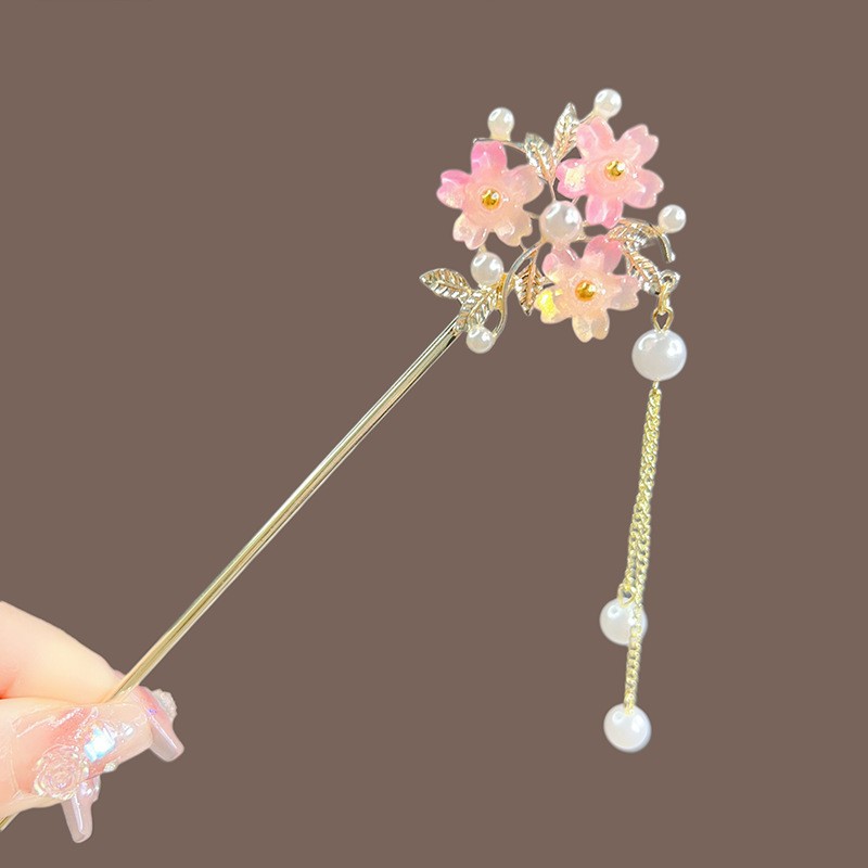 古风花朵发饰女春夏樱花发簪高级感汉服步摇流苏簪子发钗旗袍钗子