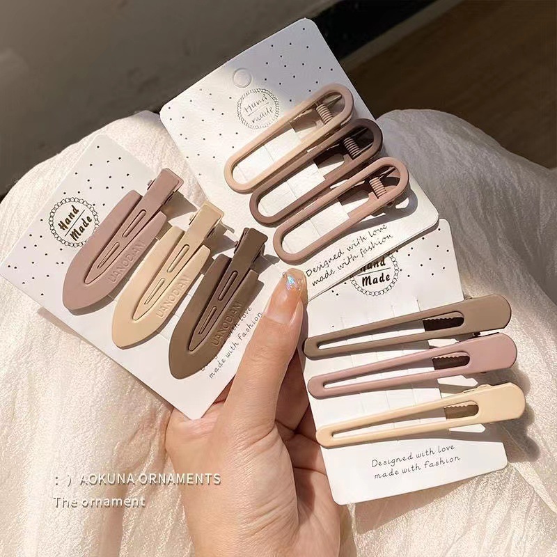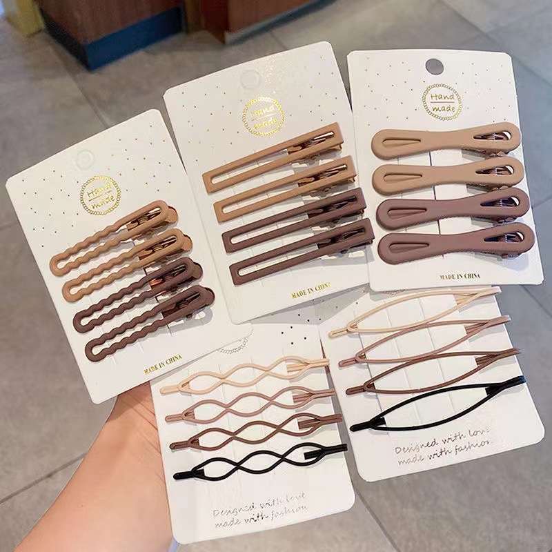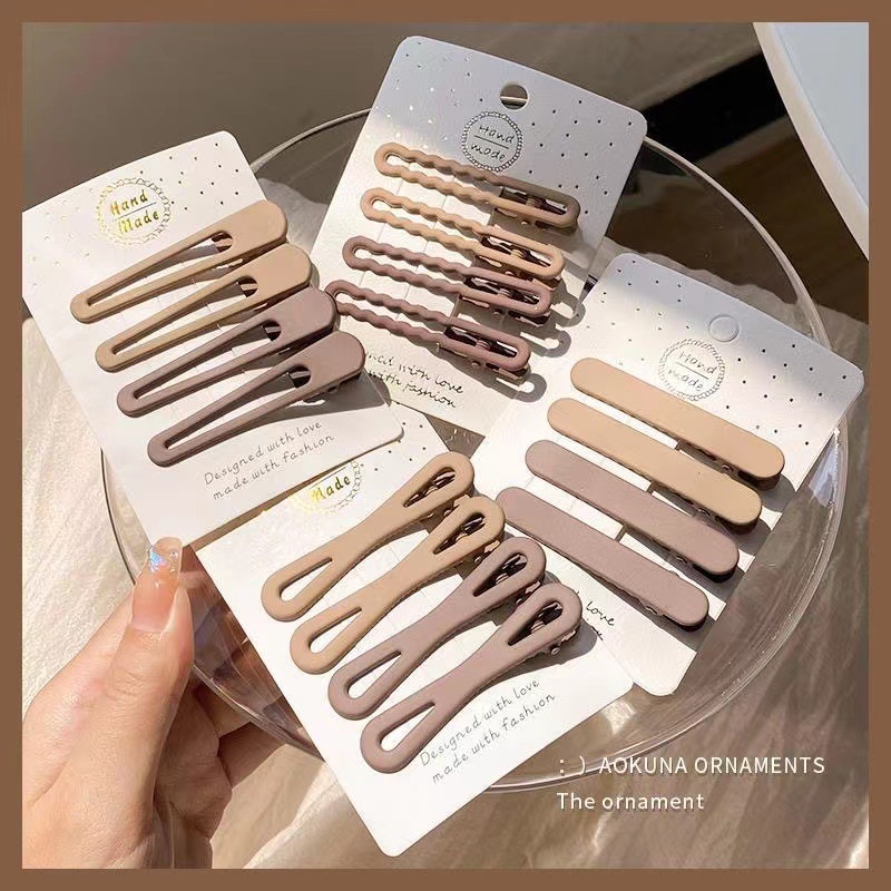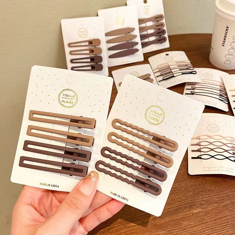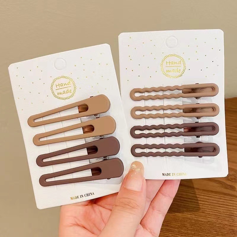4个/套 简约渐变咖色系无痕发夹鸭嘴夹刘海侧边夹子后脑勺发卡女