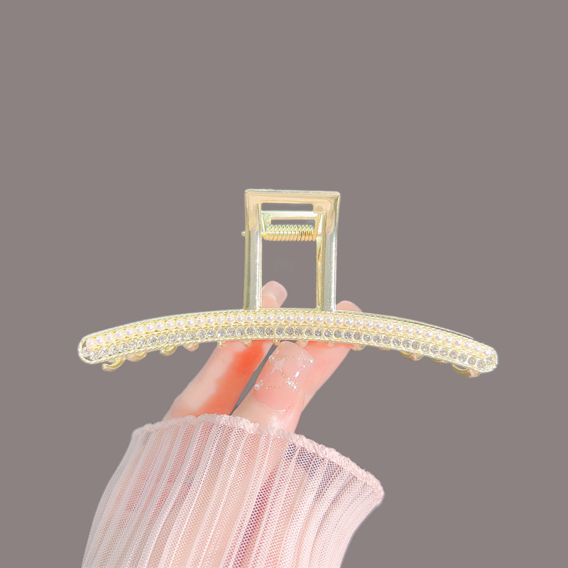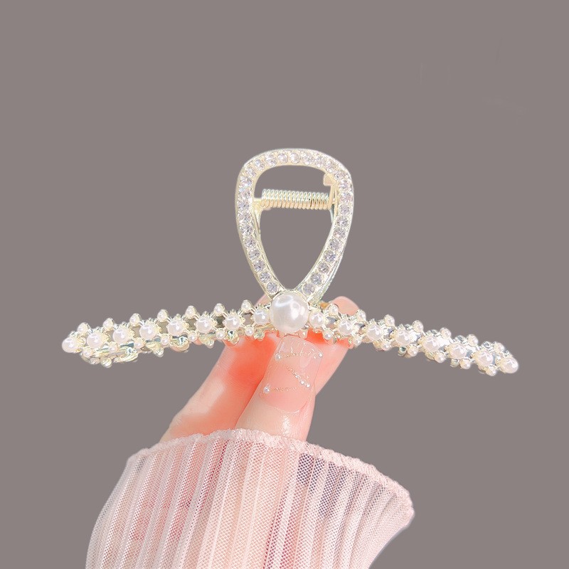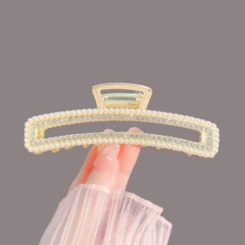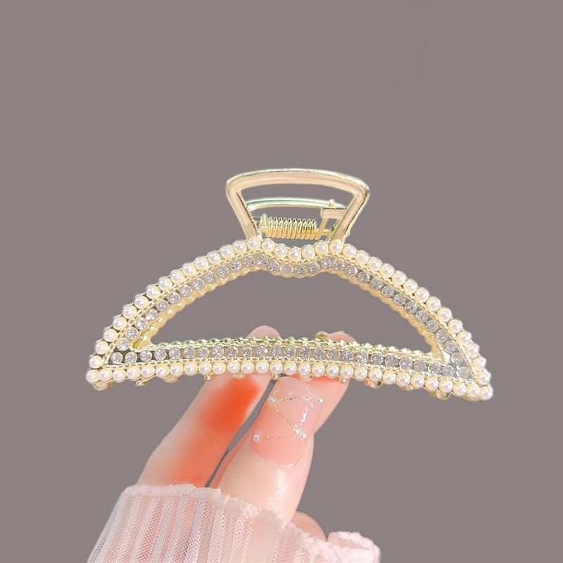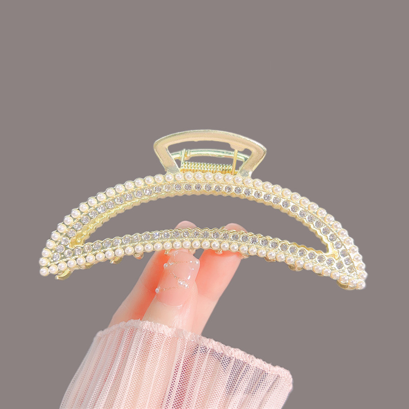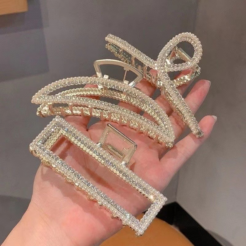 经典爆款夏季大号优雅气质合金抓夹女珍珠镶钻鲨鱼夹后脑勺发夹子