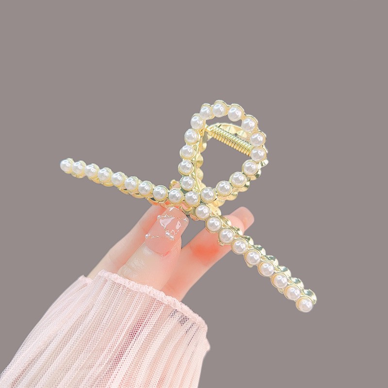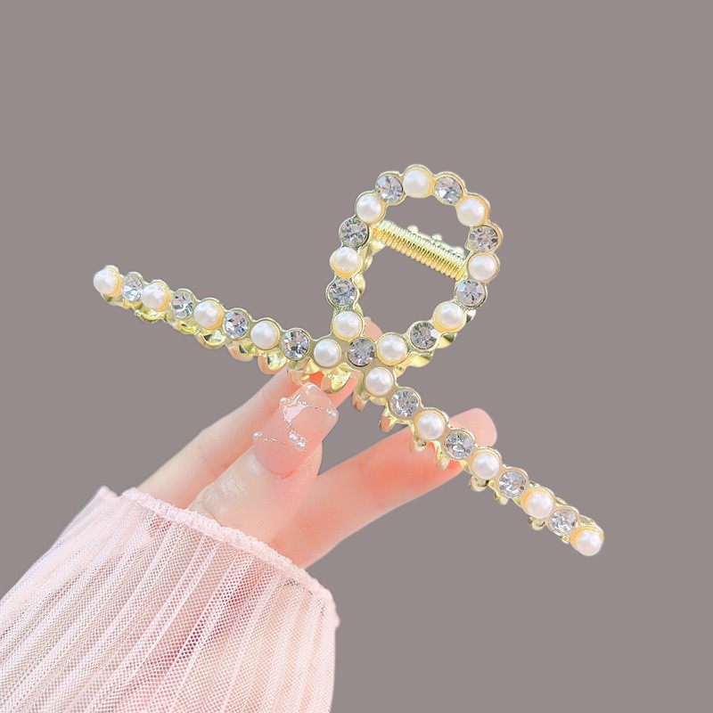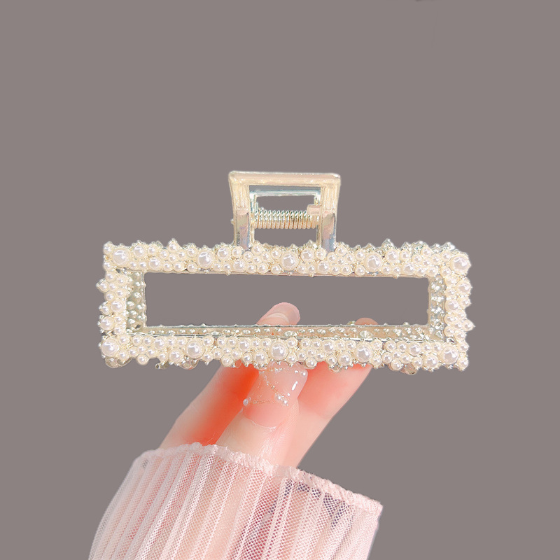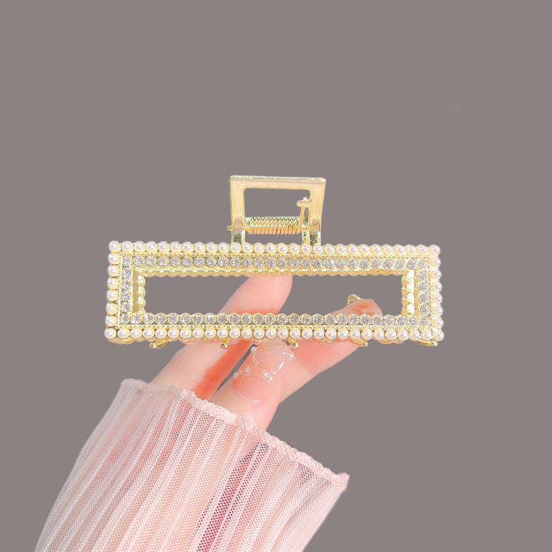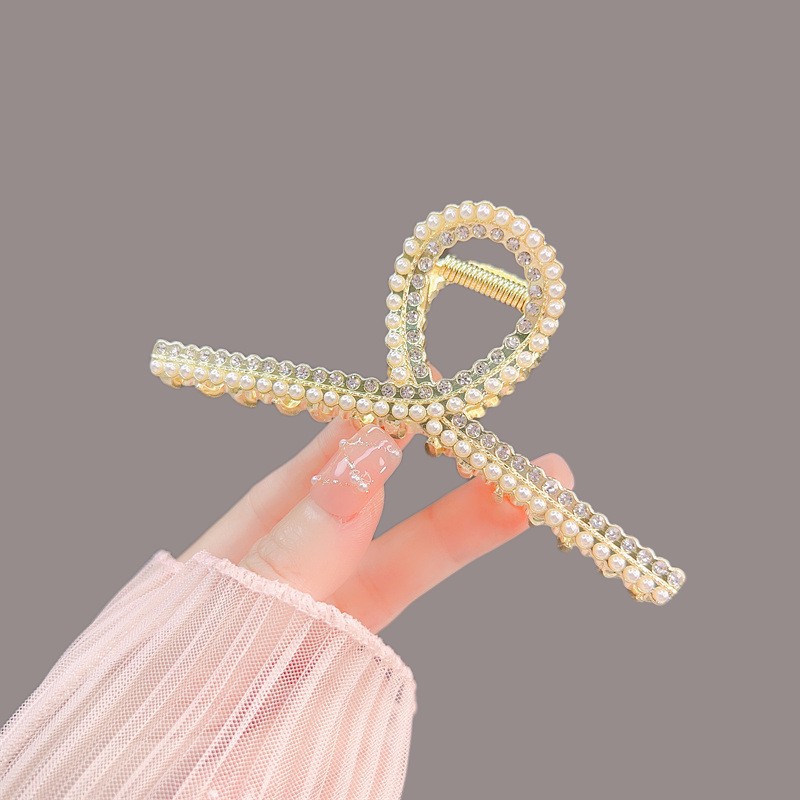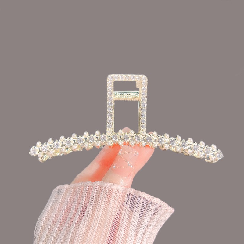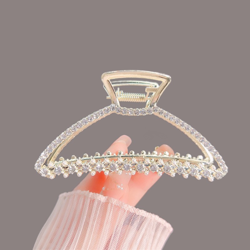 经典爆款夏季大号优雅气质合金抓夹女珍珠镶钻鲨鱼夹后脑勺发夹子