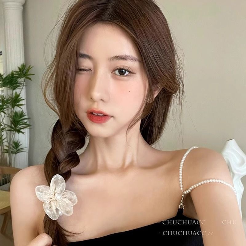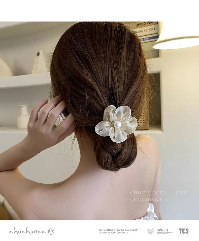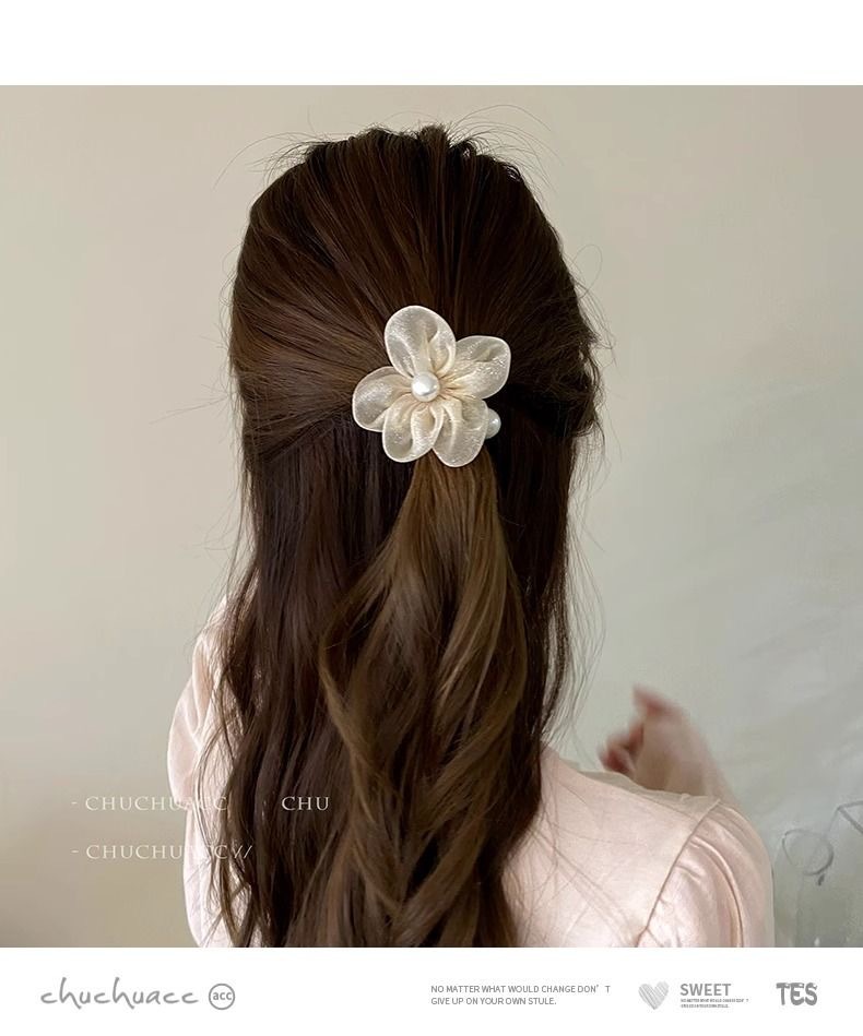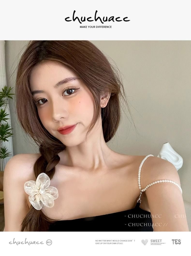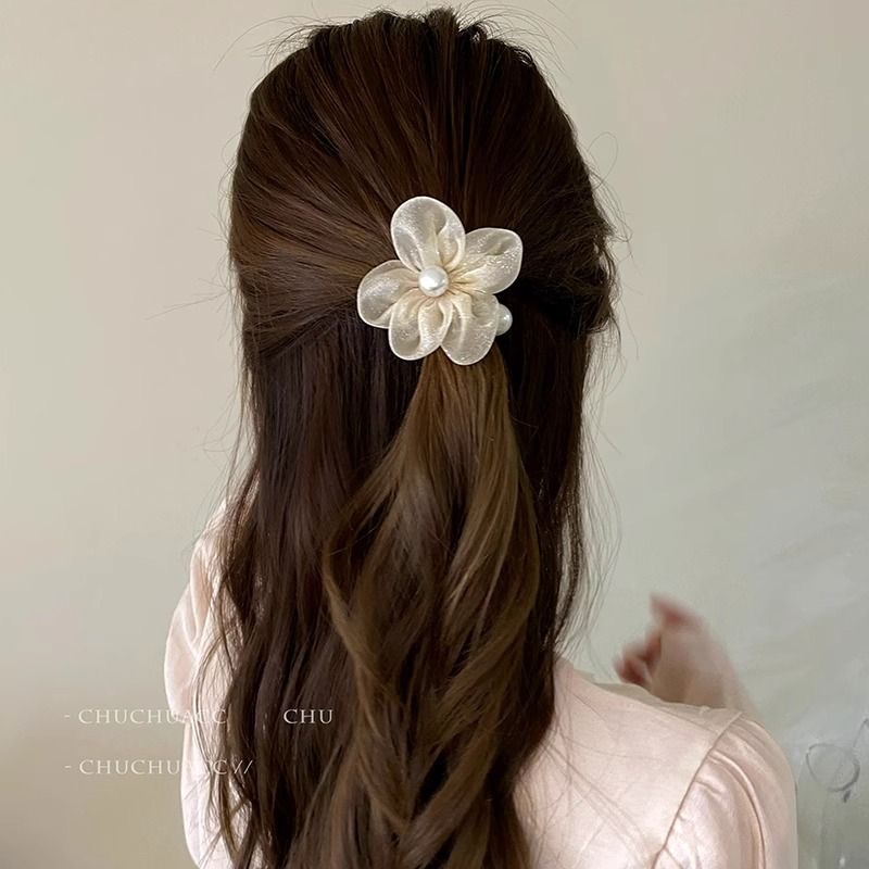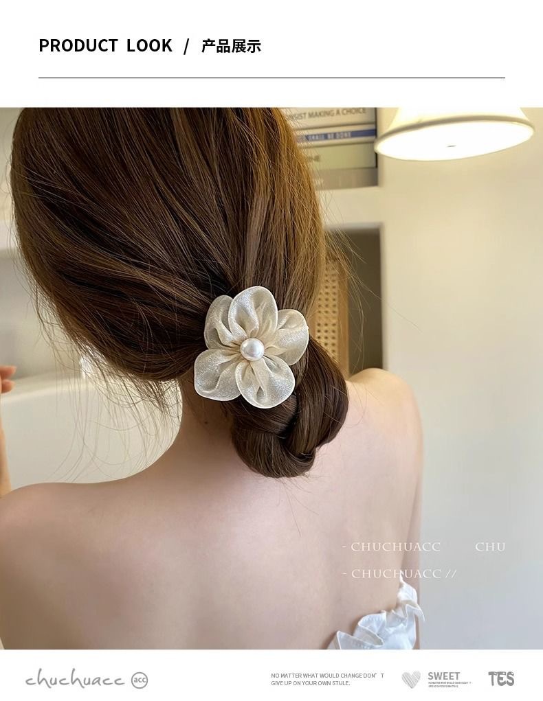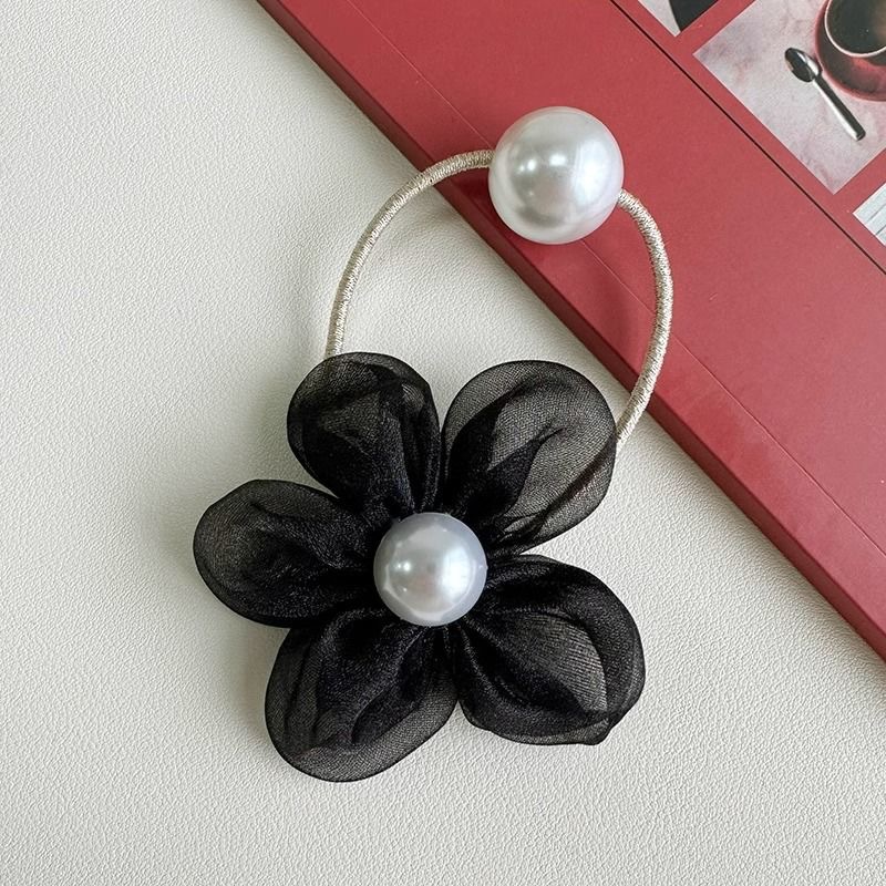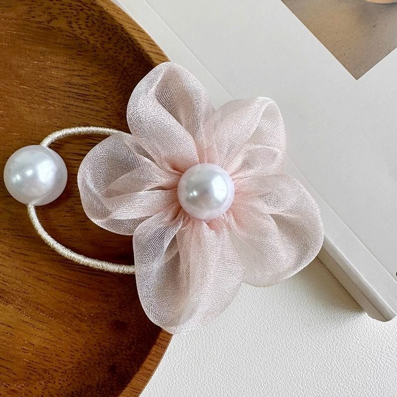 新款珍珠花朵发绳皮筋甜美低马尾丸子头扎头发圈半扎发头绳饰品