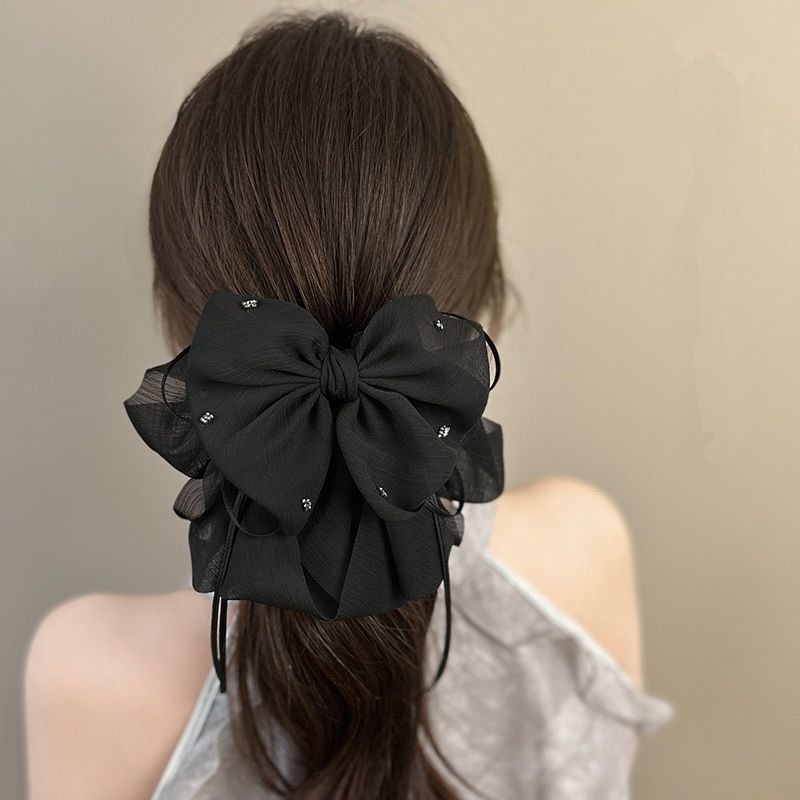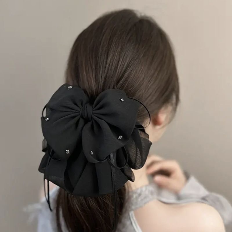 气质蝴蝶结发夹女显高颅顶马尾发抓高级感优雅半扎发后脑勺盘发夹