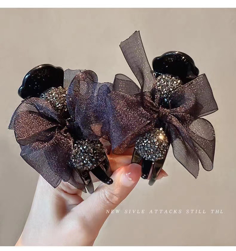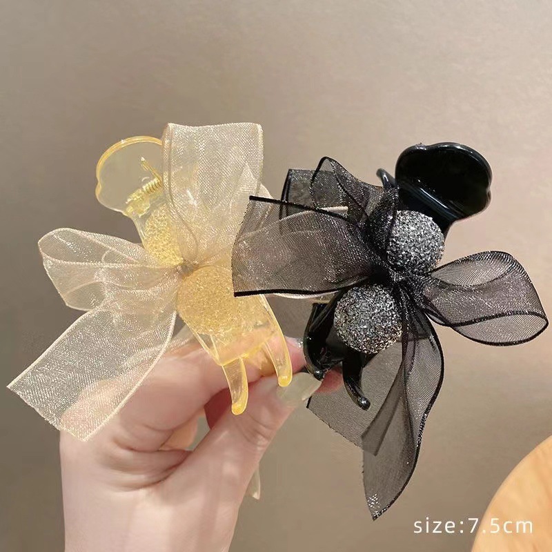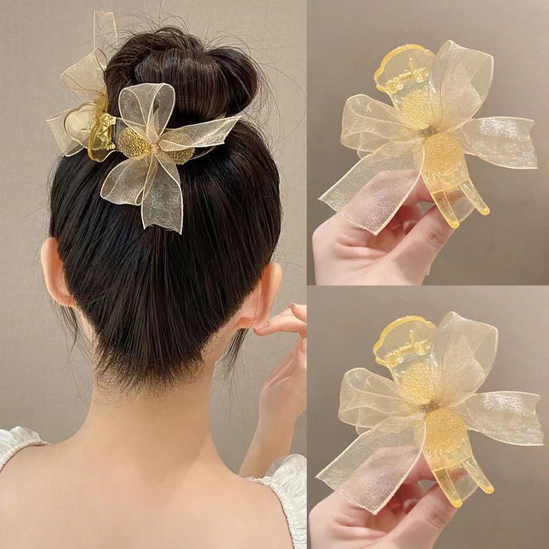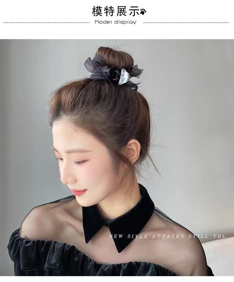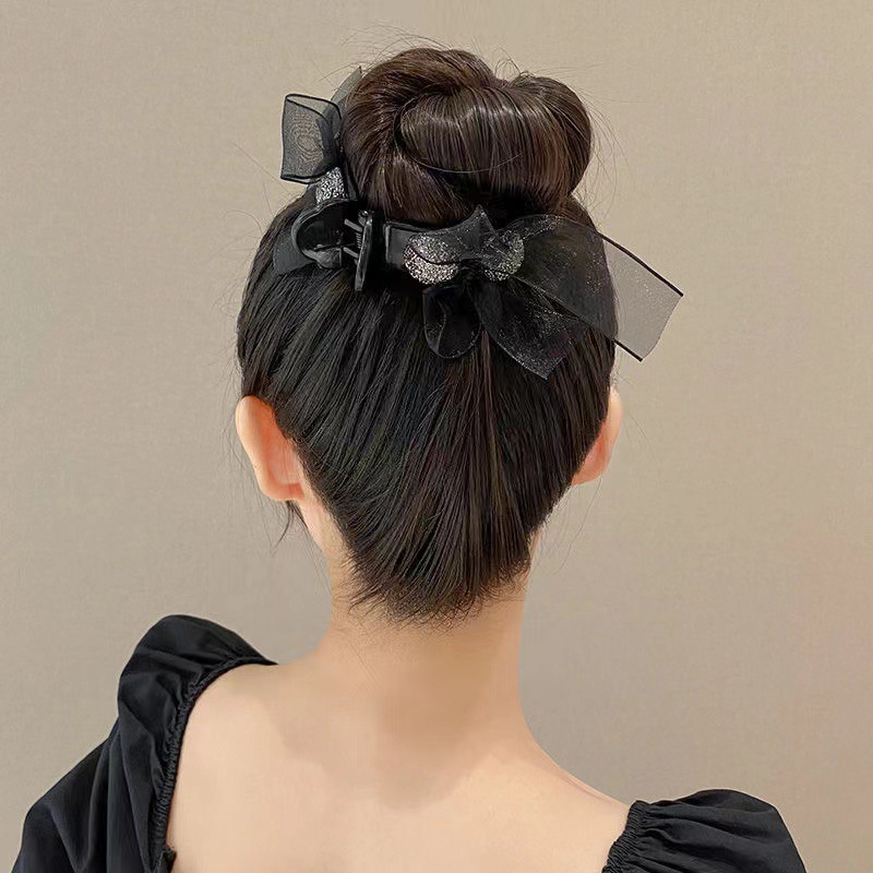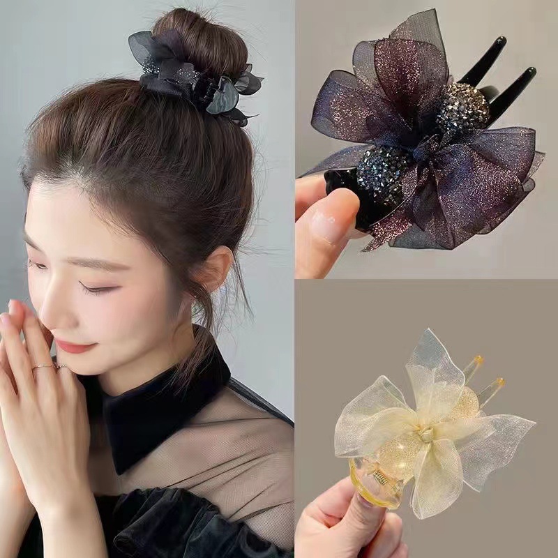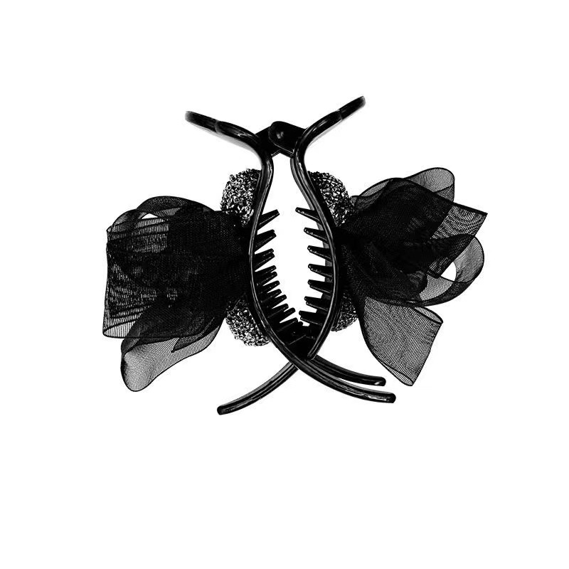 新款懒人盘发神器软件蕾丝网纱蝴蝶结丸子头抓夹甜美蝴蝶结发夹