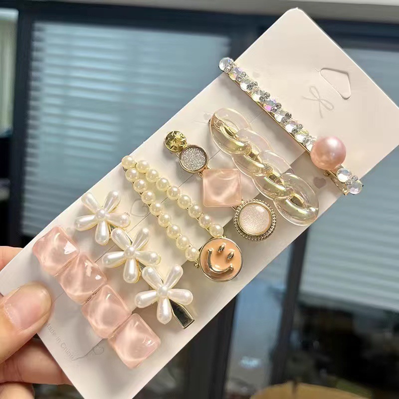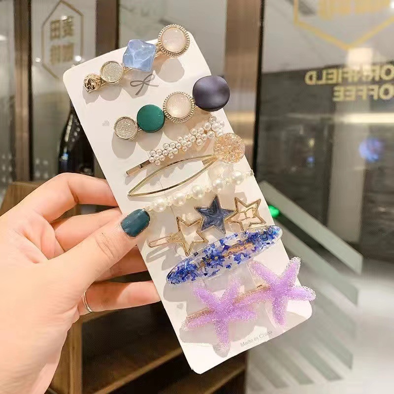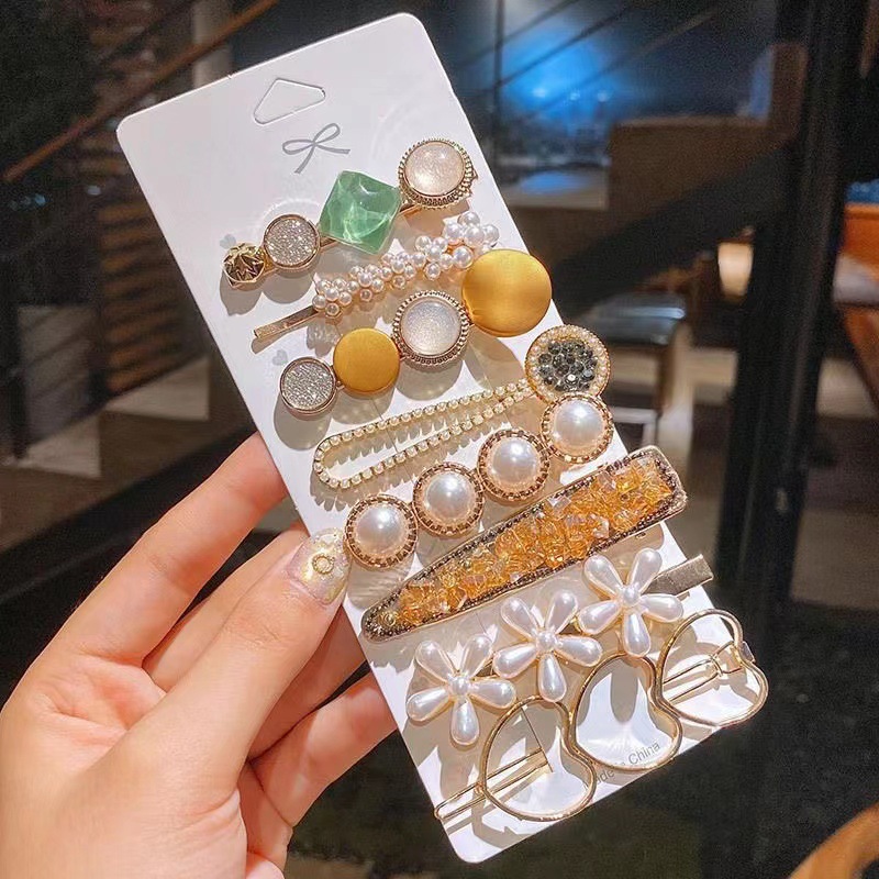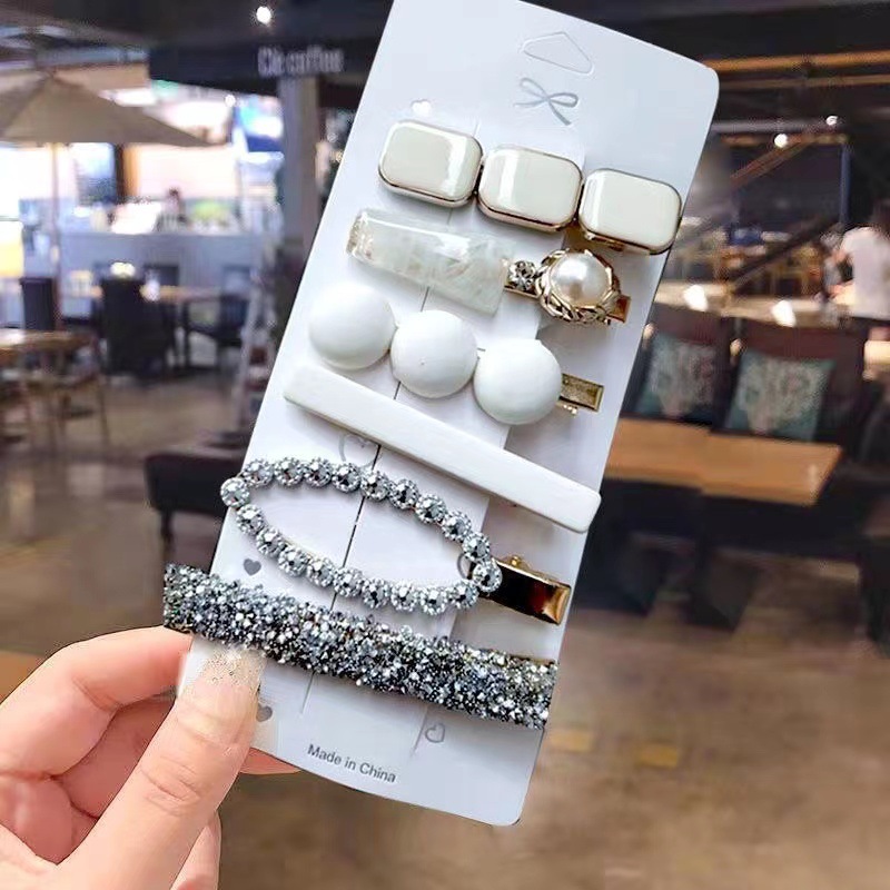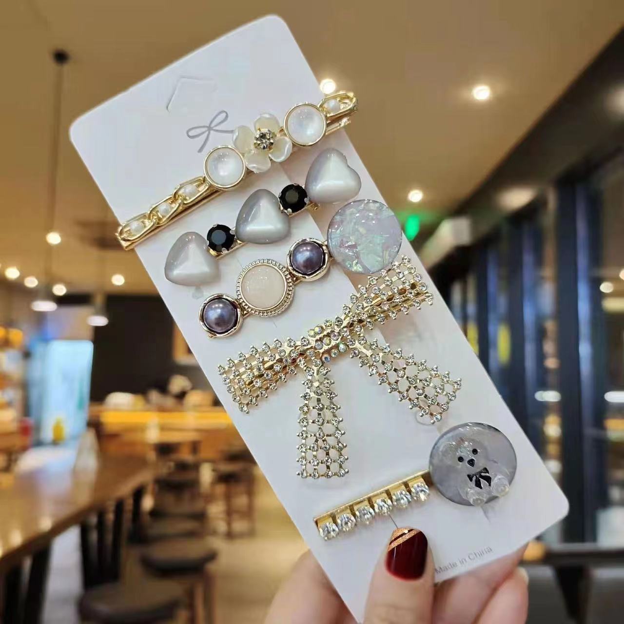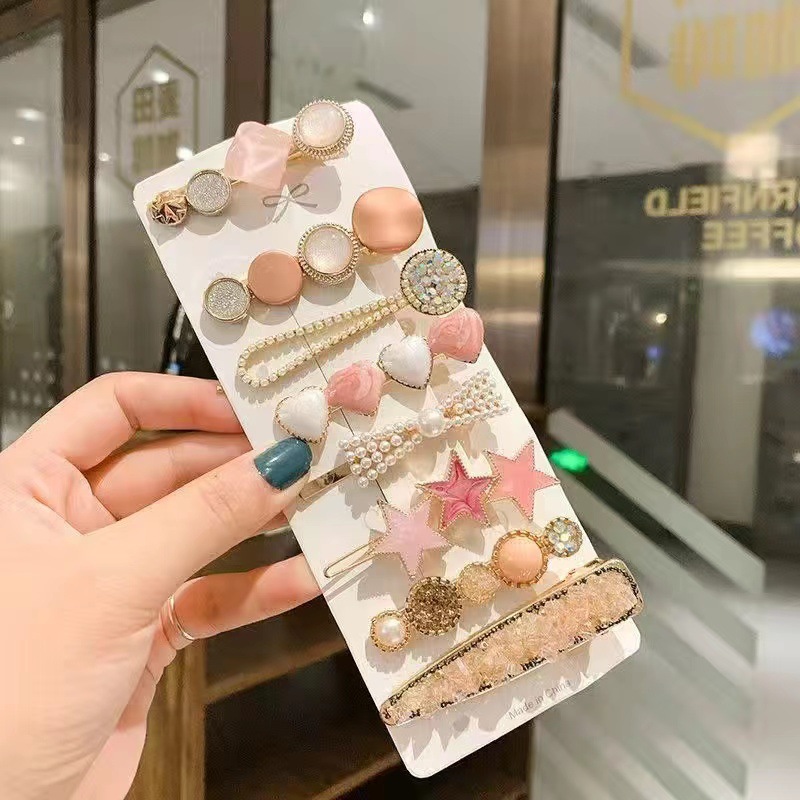 网红ins韩版一字鸭嘴夹多款式侧边刘海夹 可爱少女碎发夹重工套装