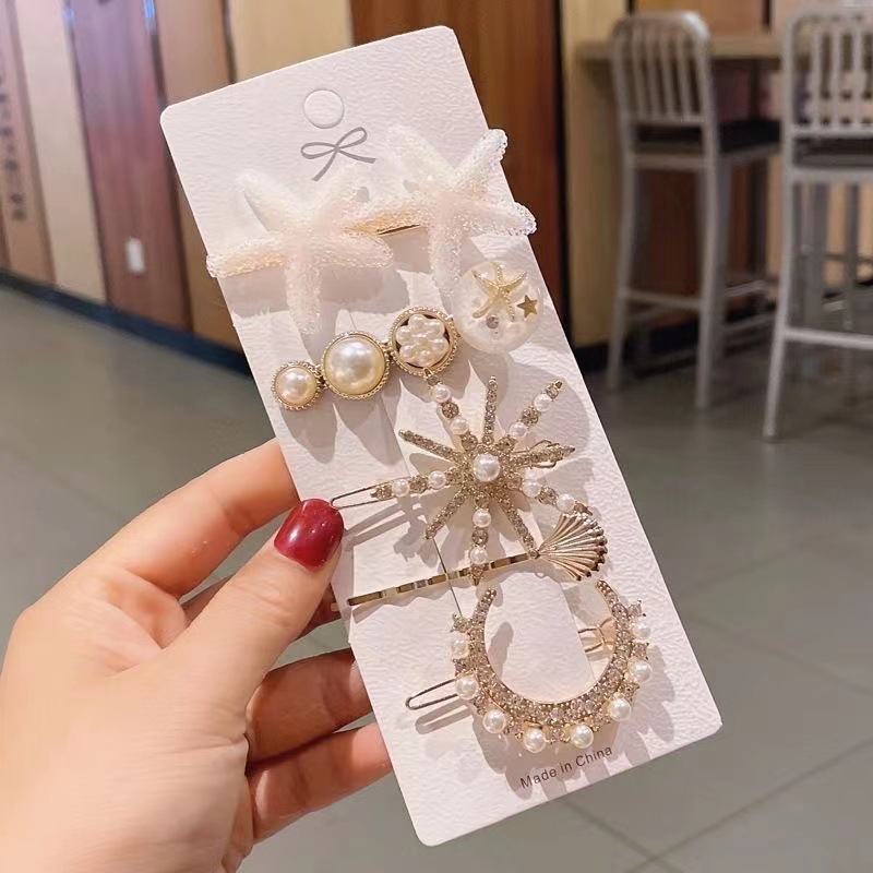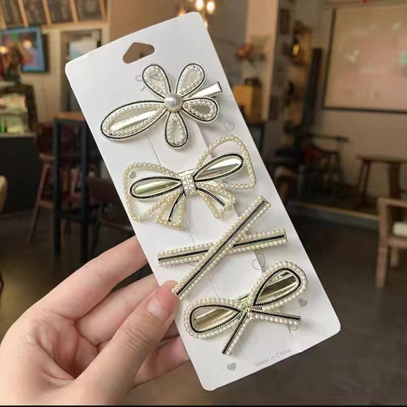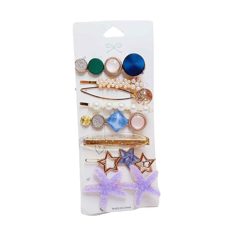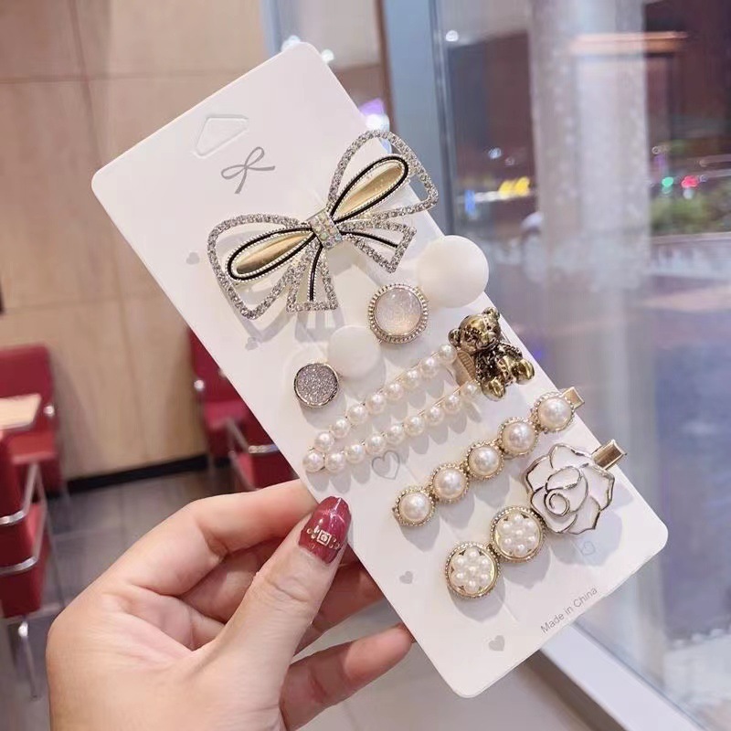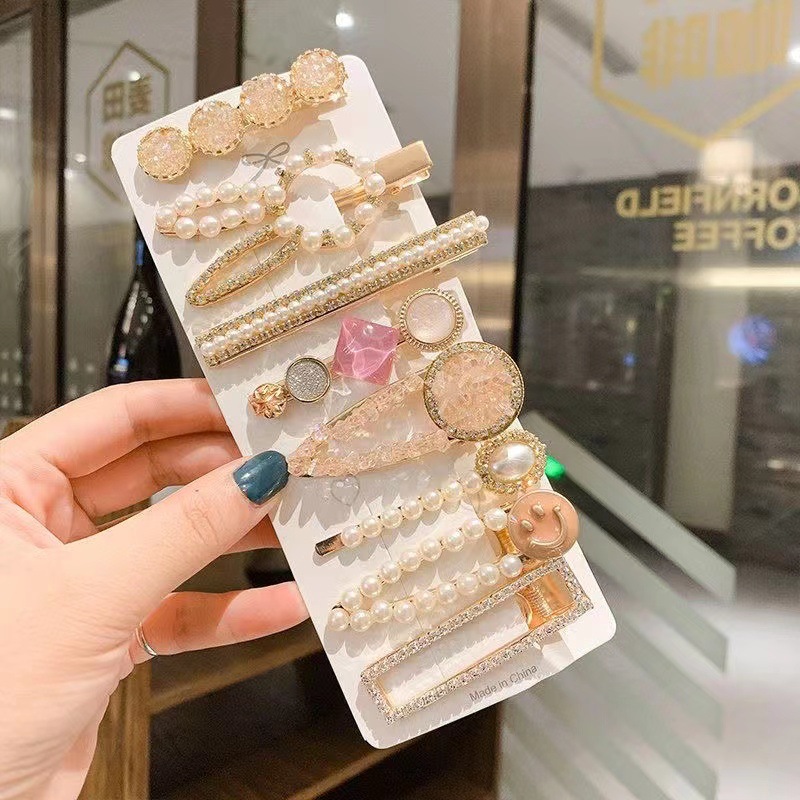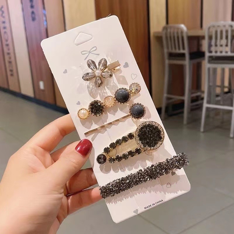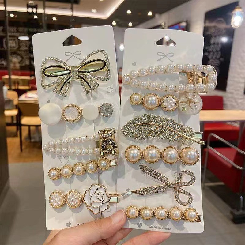 网红ins韩版一字鸭嘴夹多款式侧边刘海夹 可爱少女碎发夹重工套装