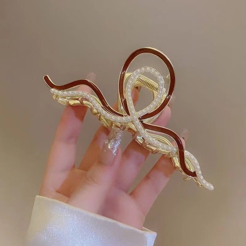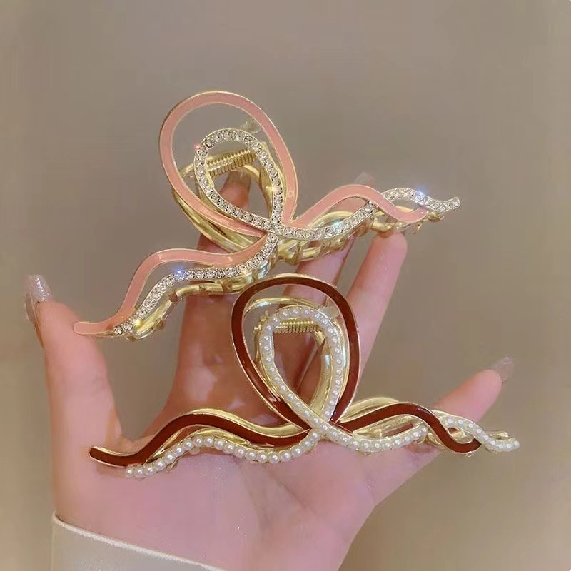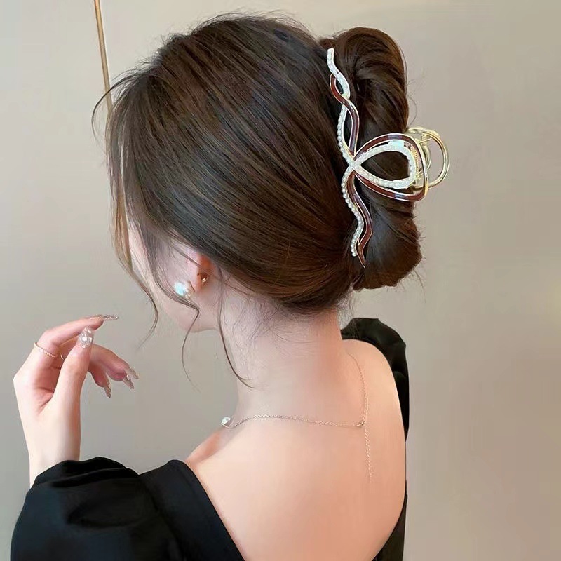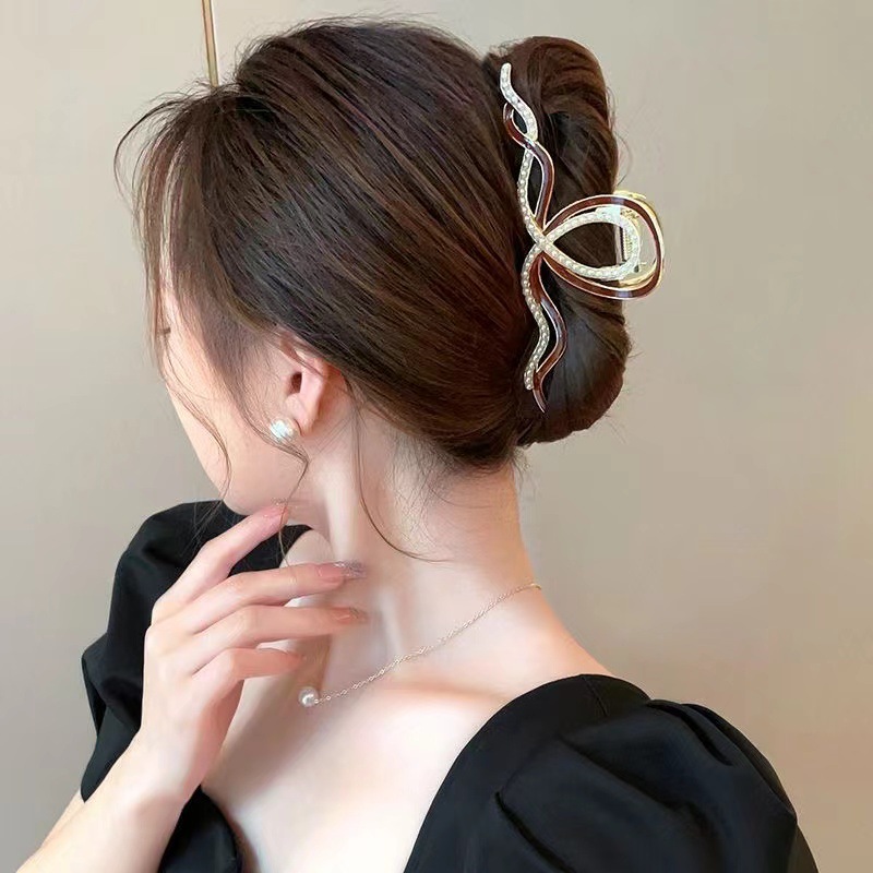 韩国高级感发夹女波浪水钻抓夹大号气质后脑勺盘发夹子鲨鱼夹头饰