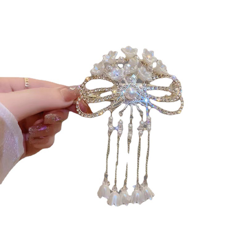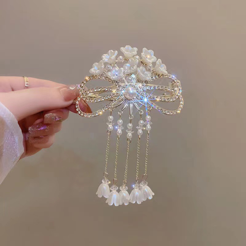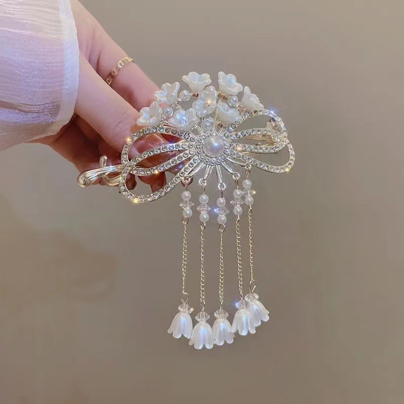 精致流苏抓夹女2023新款铃兰花朵发卡丸子头盘发夹子后脑勺扭扭夹