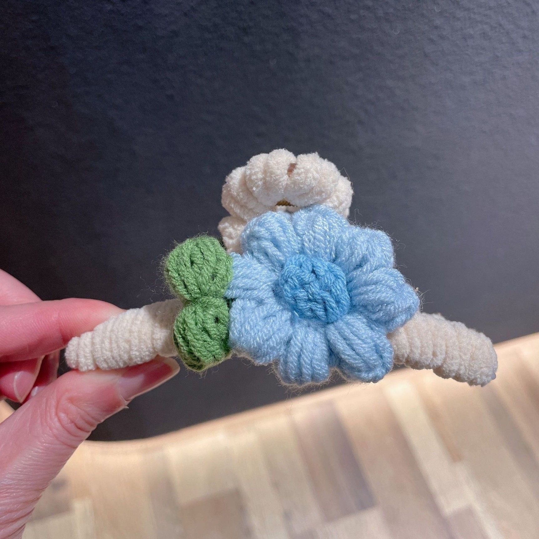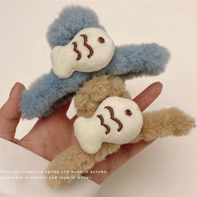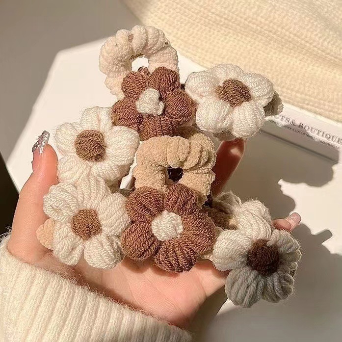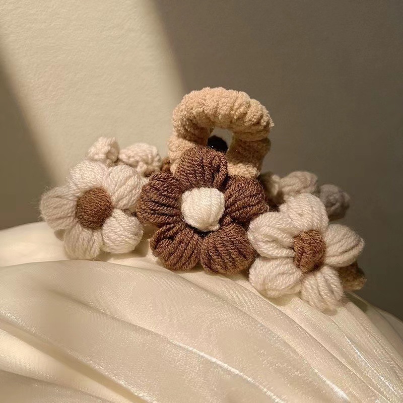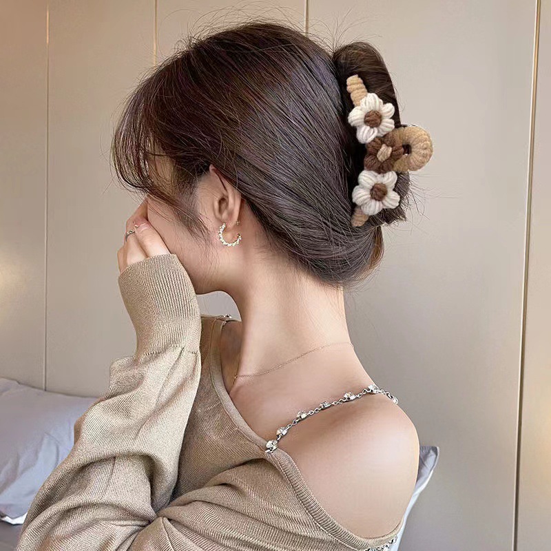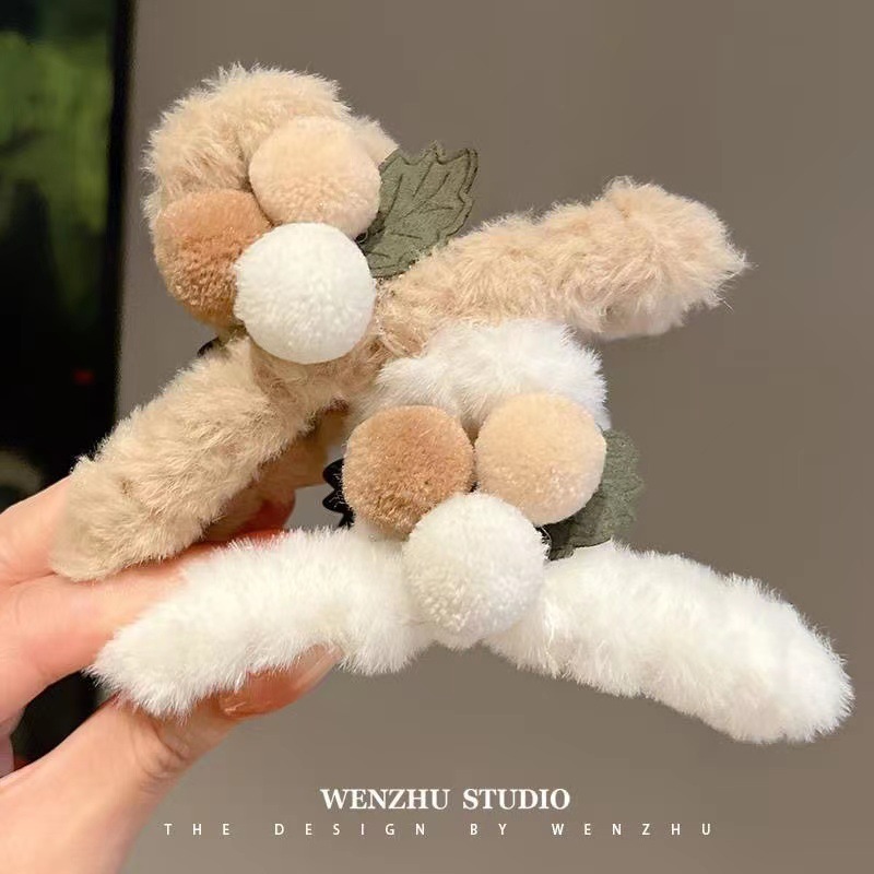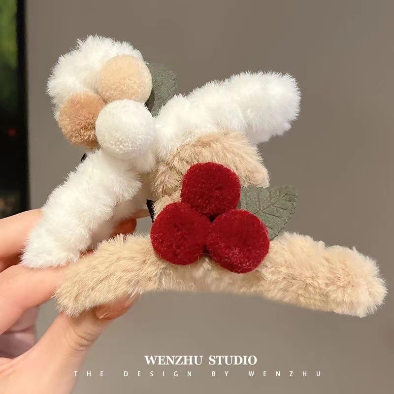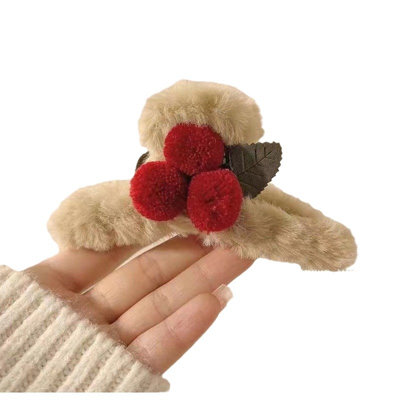 秋冬新款甜味少女樱桃毛绒抓夹甜美毛线花朵发夹女盘发夹子鲨鱼夹