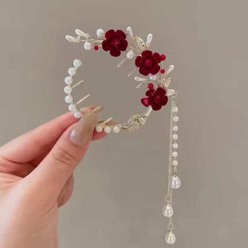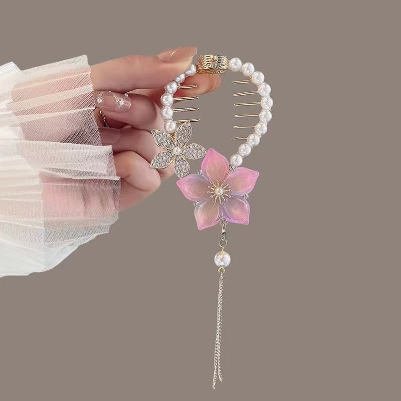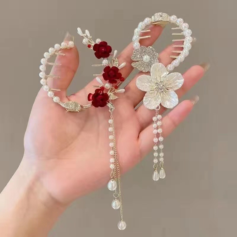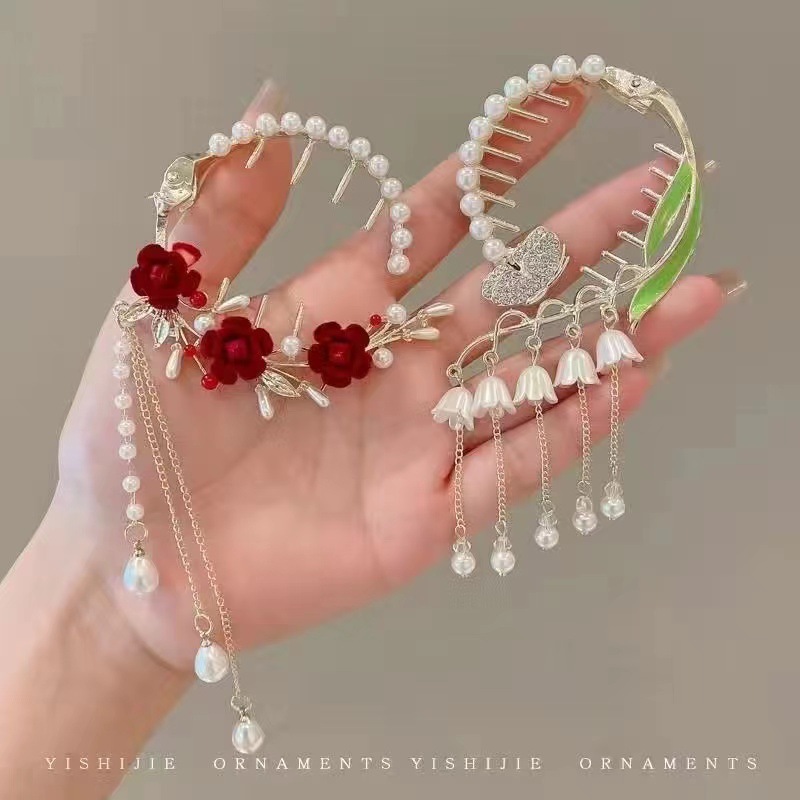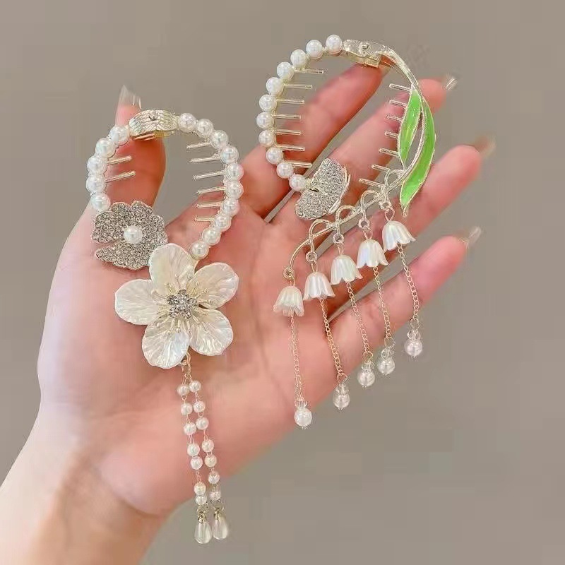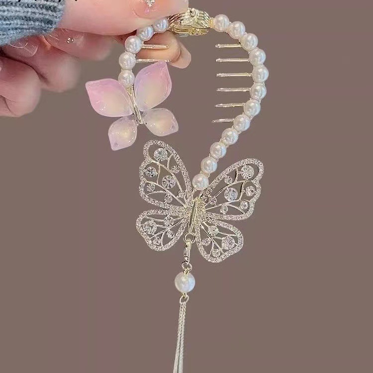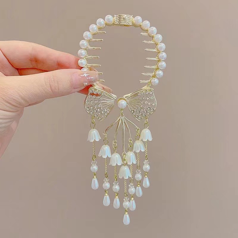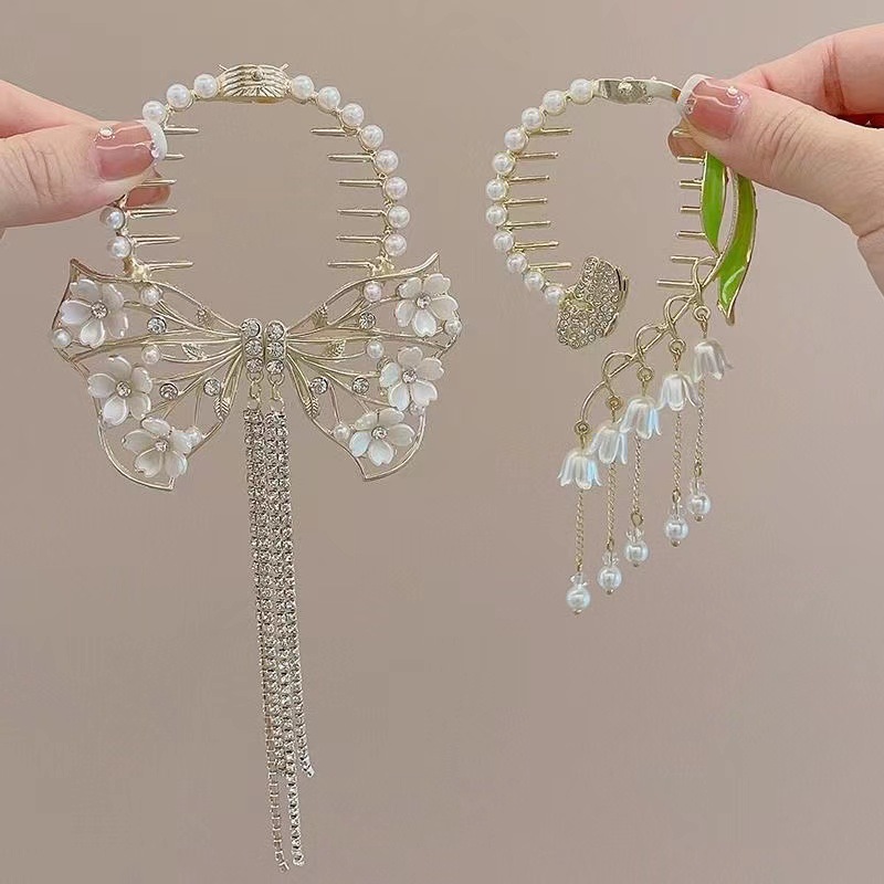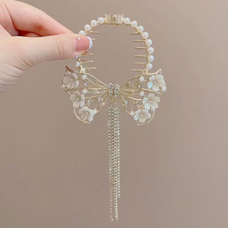 蝴蝶结丸子头抓夹后脑勺固定神器高级感流苏马尾扣发夹卡子头饰女