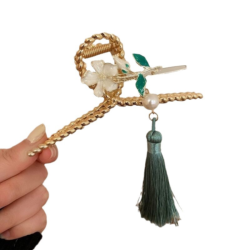 山茶花抓夹花朵流苏发夹后脑勺盘发抓鲨鱼夹高级感古风发卡头饰夏