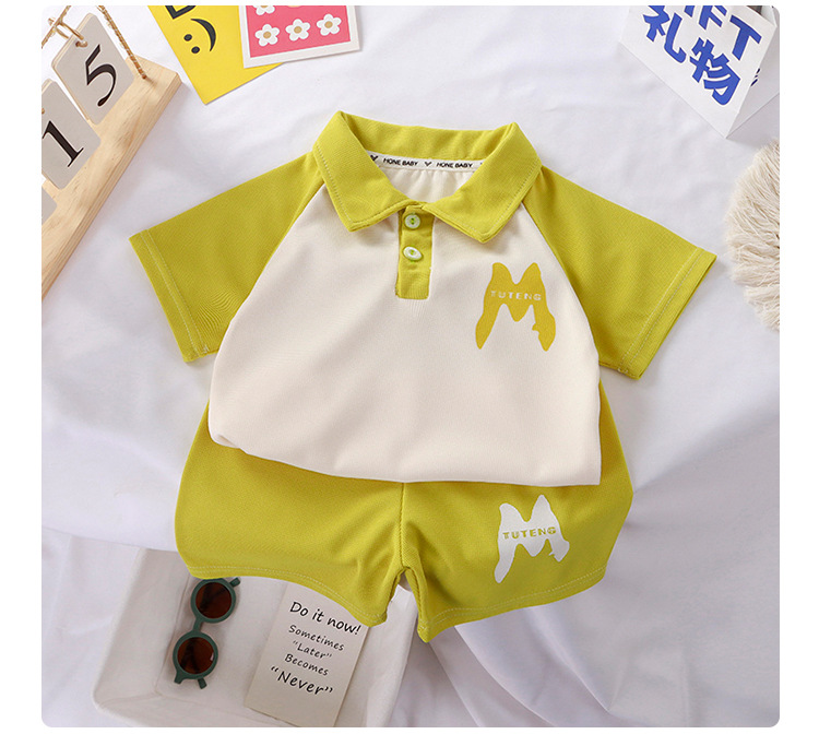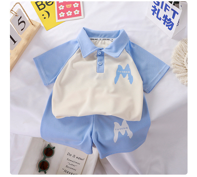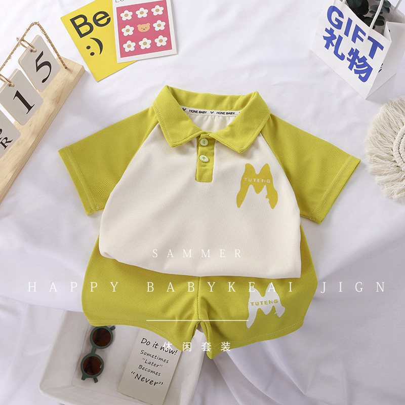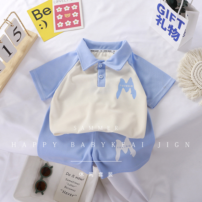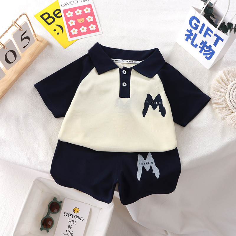 2024夏季短袖套装新款女童POLO衫男童t恤套装宝宝洋气上衣童装批