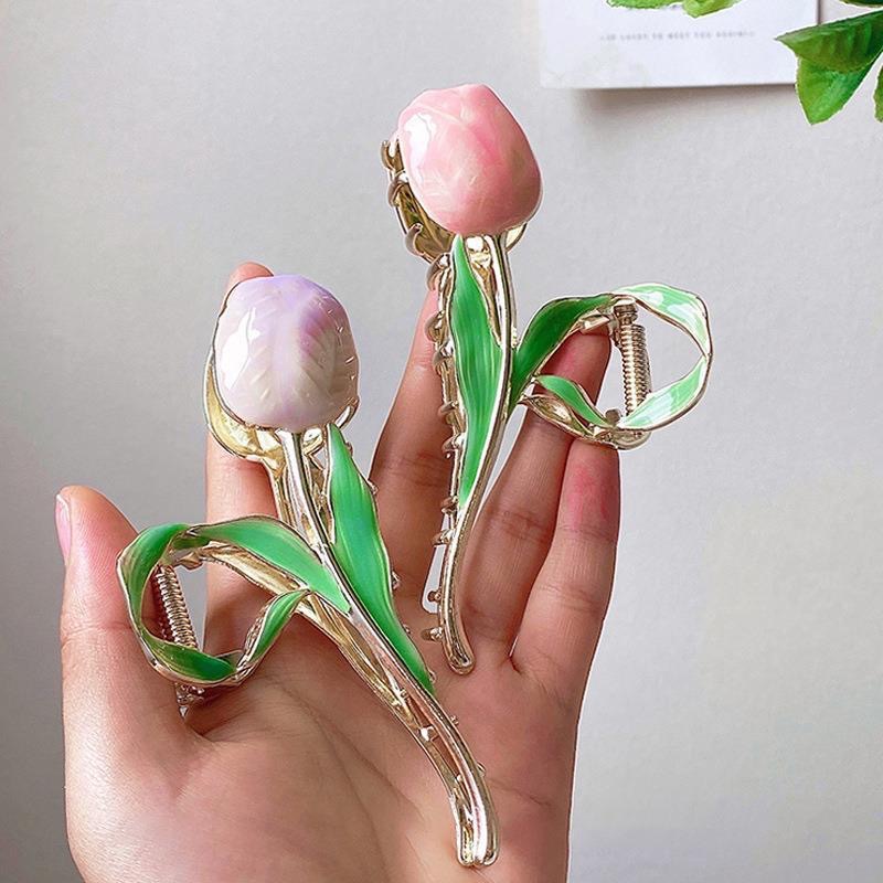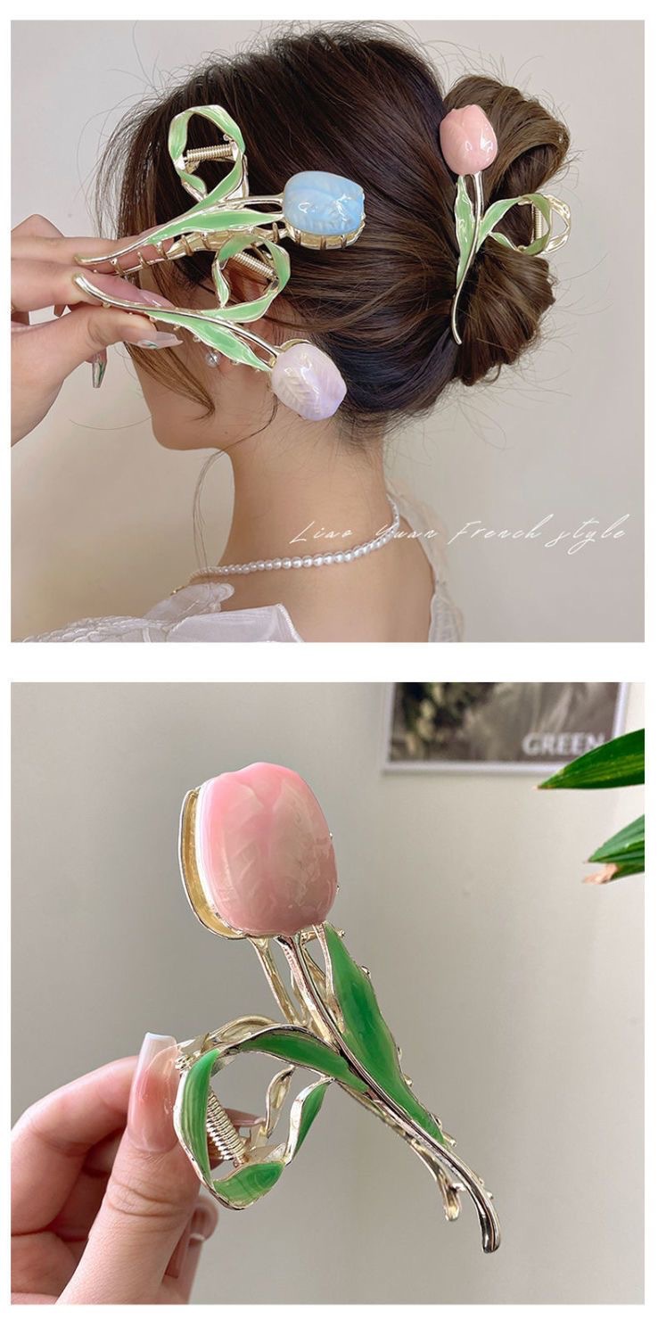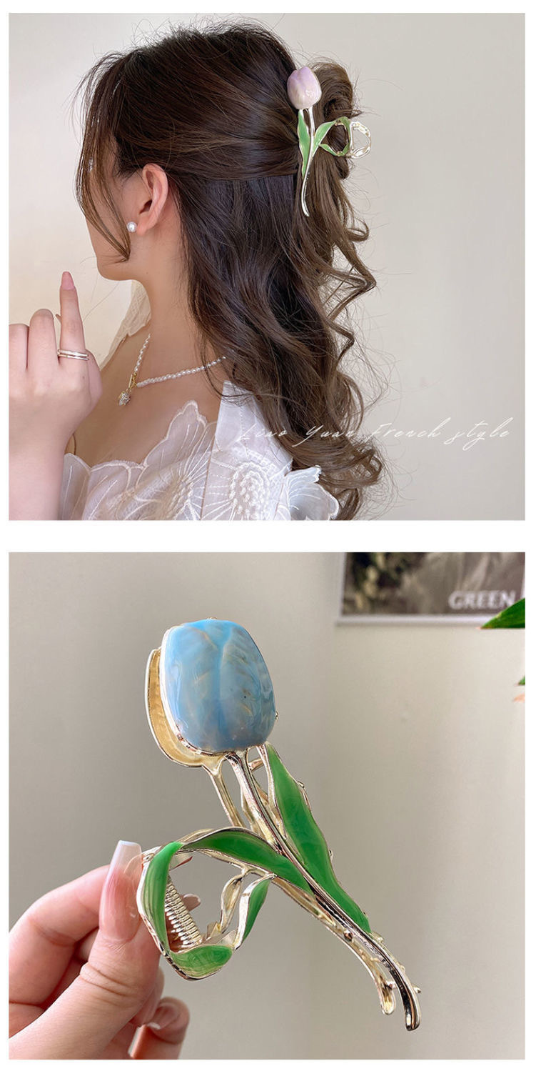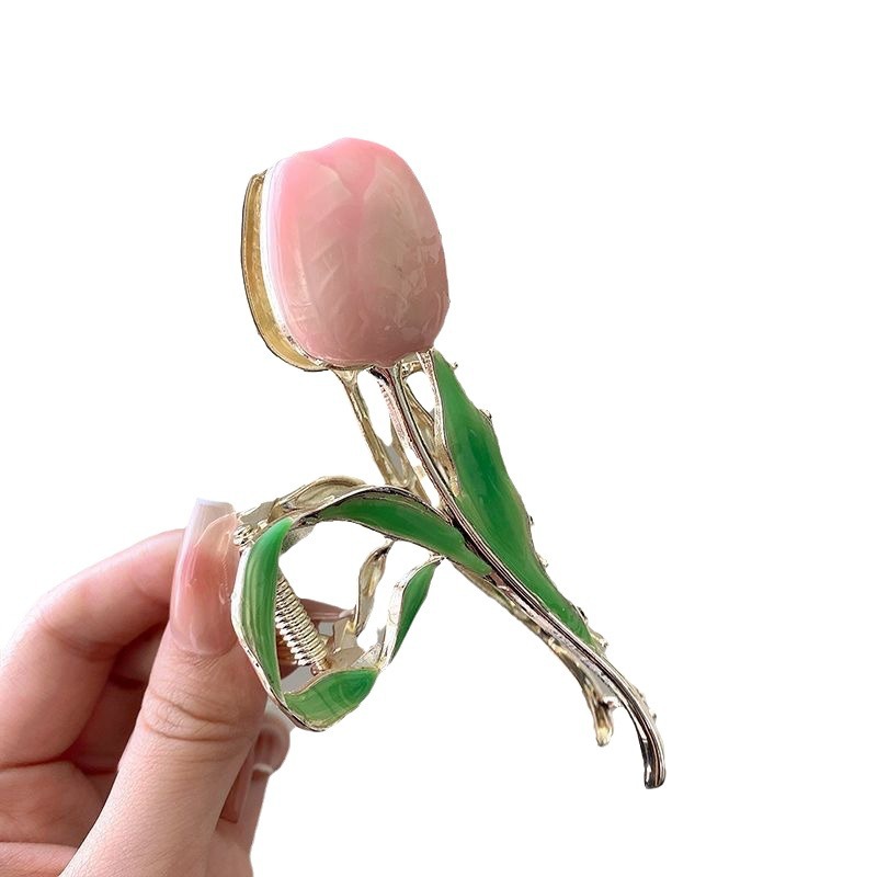 甜美温柔郁金香花朵抓夹高级感女大号后脑勺夹子超仙网红盘发夹