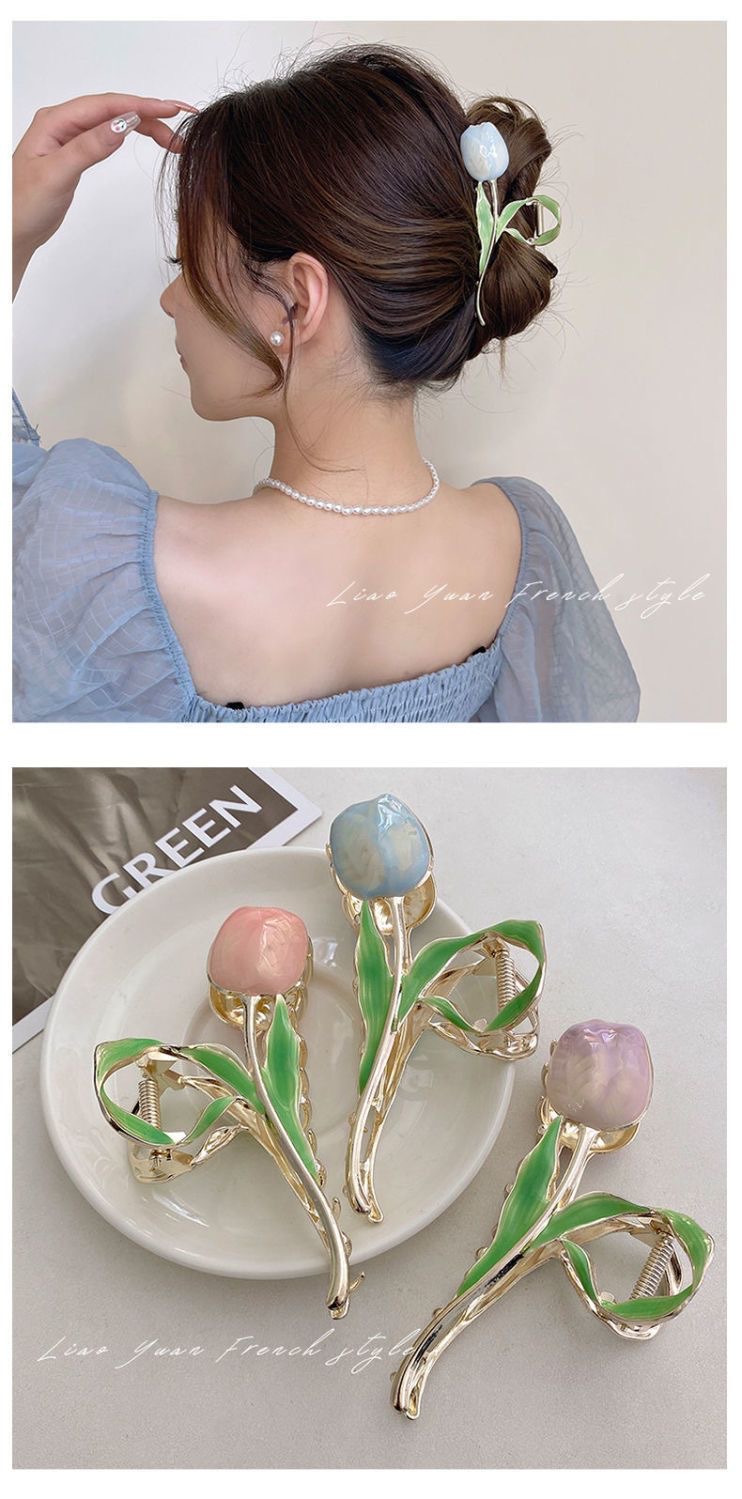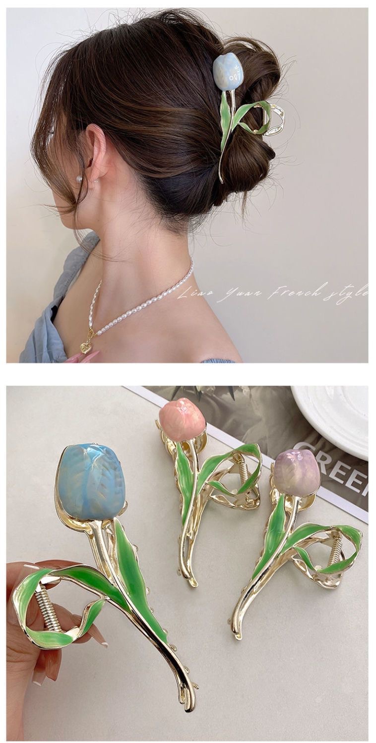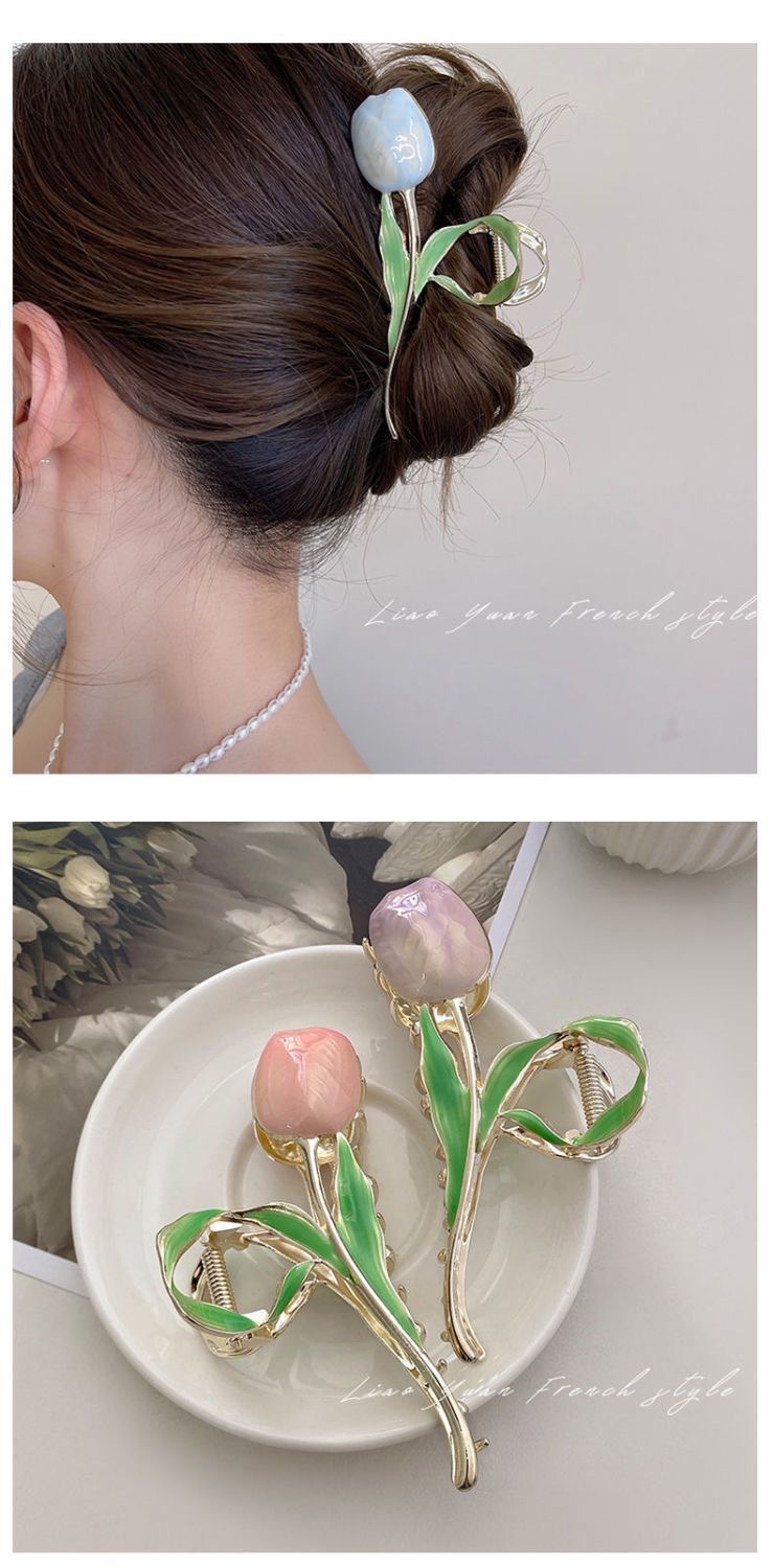 甜美温柔郁金香花朵抓夹高级感女大号后脑勺夹子超仙网红盘发夹