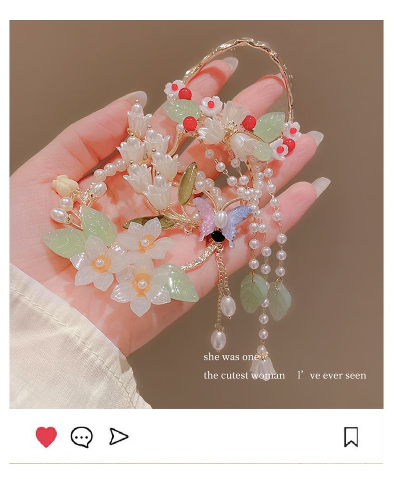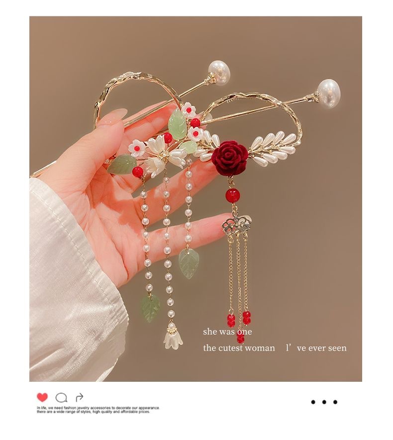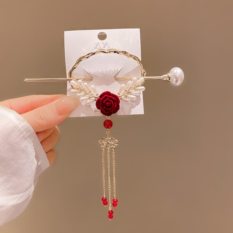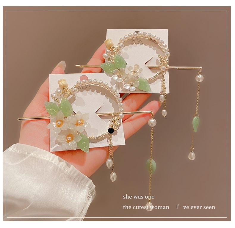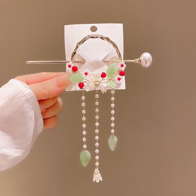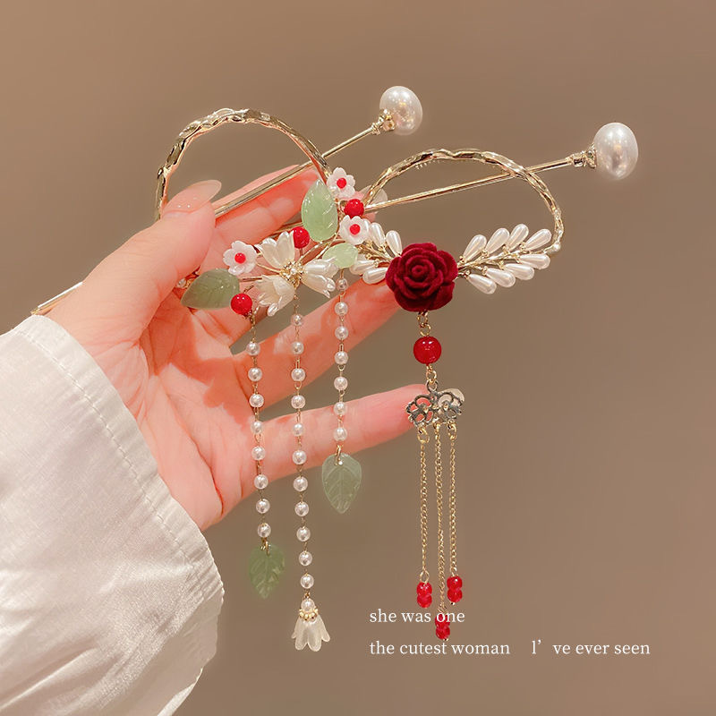 新中式花朵流苏发簪高级感气质百搭簪子古风流苏步摇发钗旗袍配饰