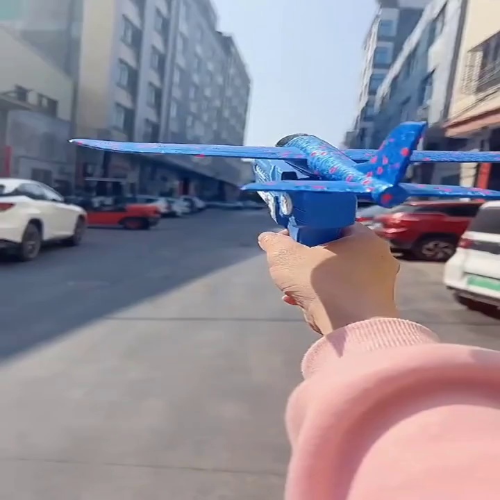 跨境小号弹射飞机枪男孩闪光泡沫抛回旋飞机儿童亲子互动户外玩具