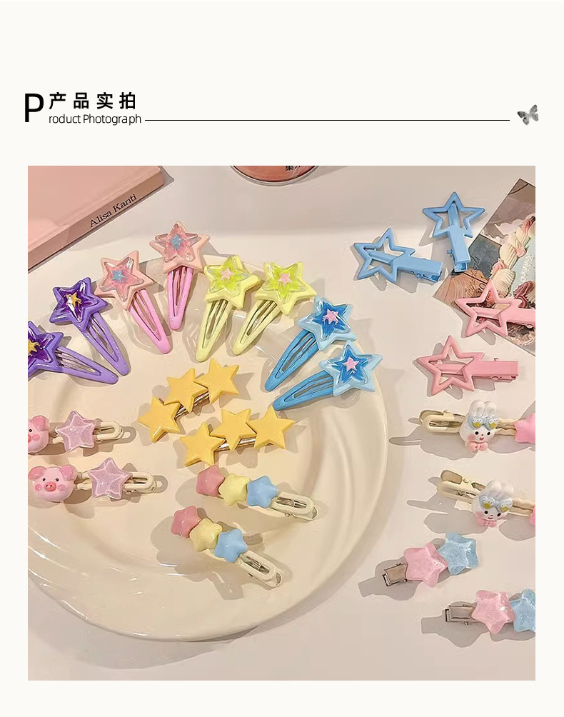 黄色星星可爱碎发卡女高级感侧边刘海夹子头饰碎发鸭嘴夹发夹批发