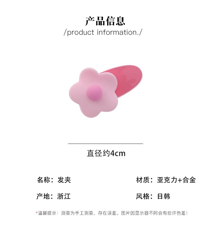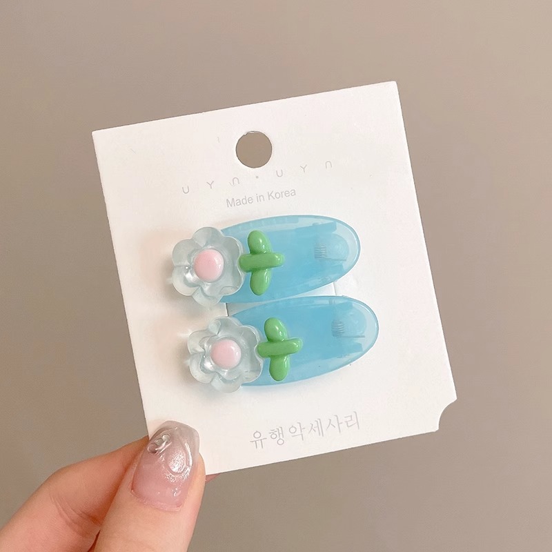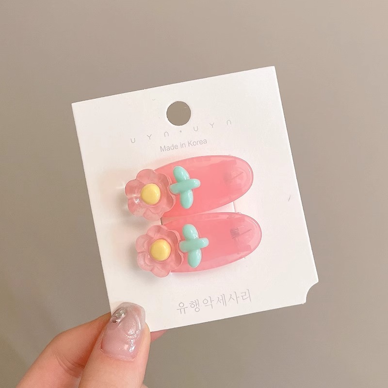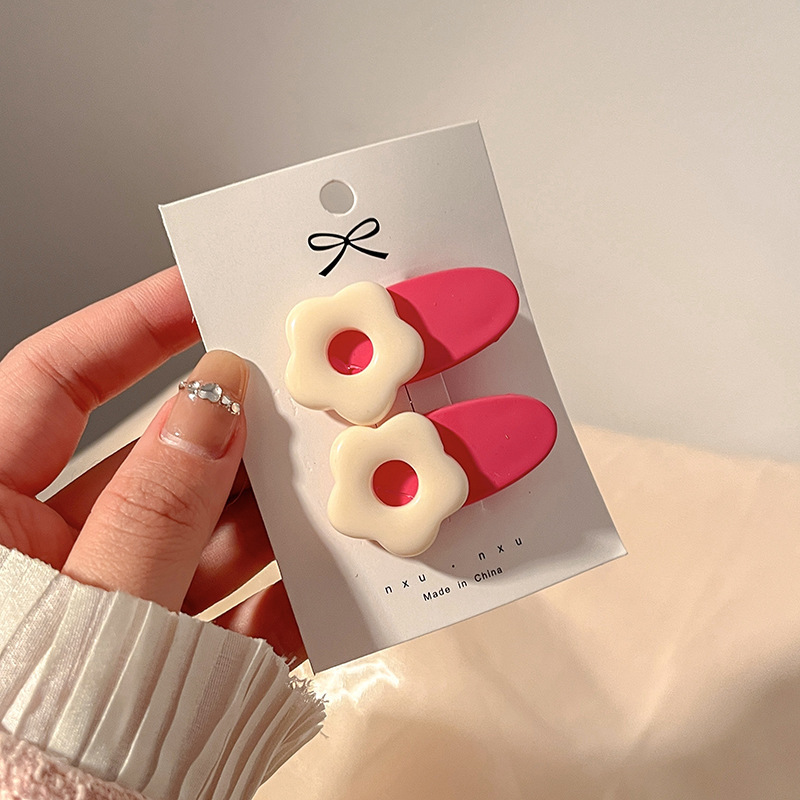 多巴胺彩色花朵发夹女2024新款夏季侧边刘海夹子头饰碎发bb夹发卡