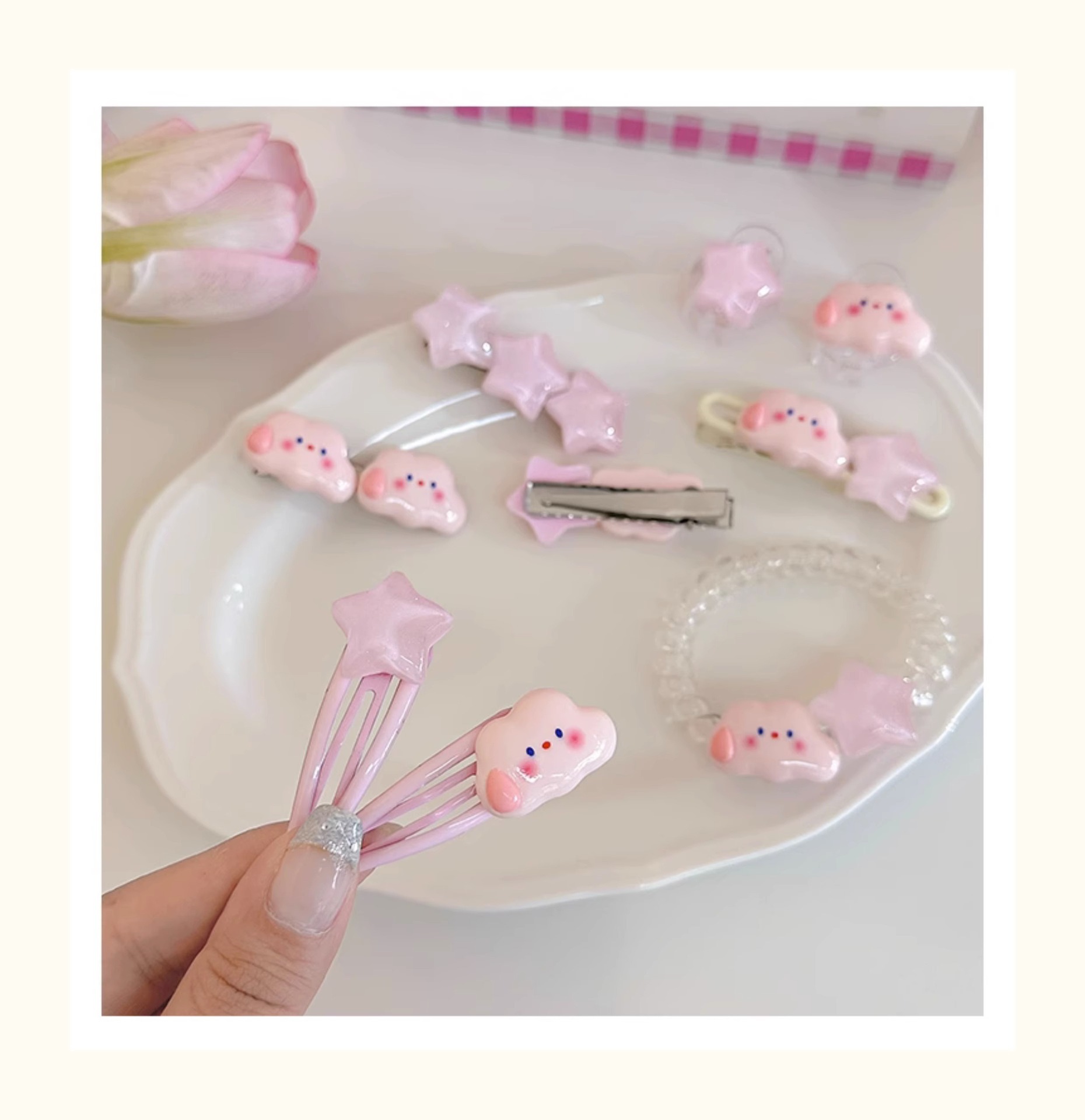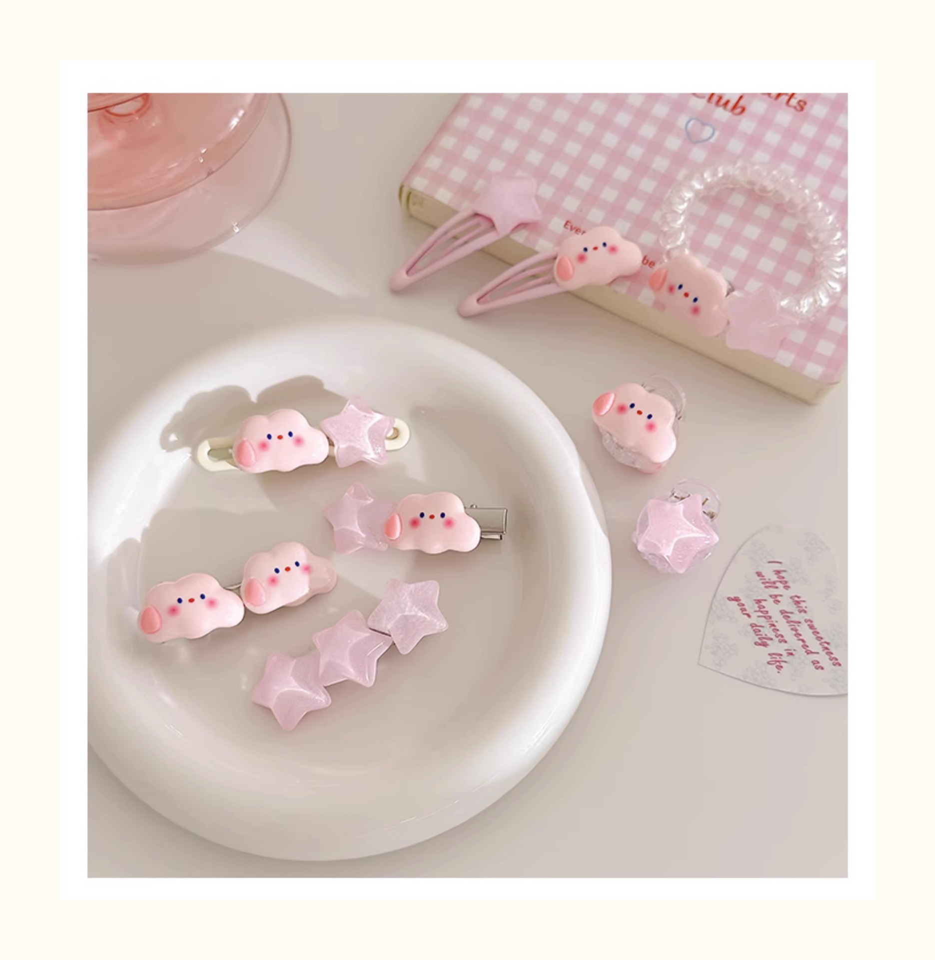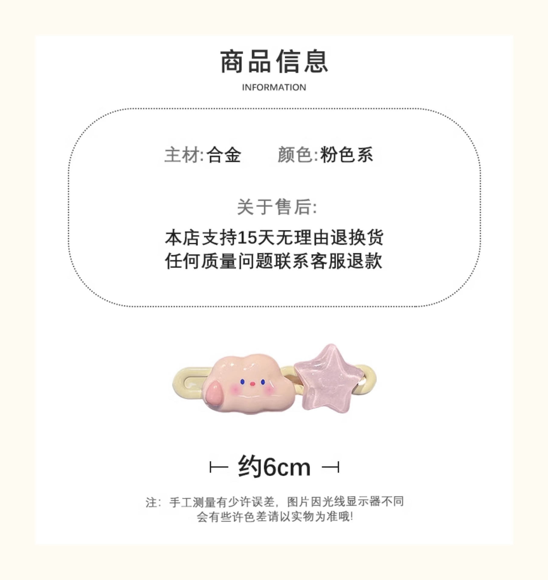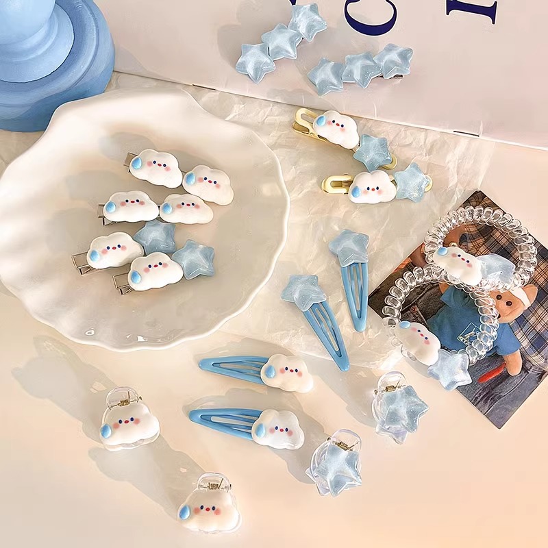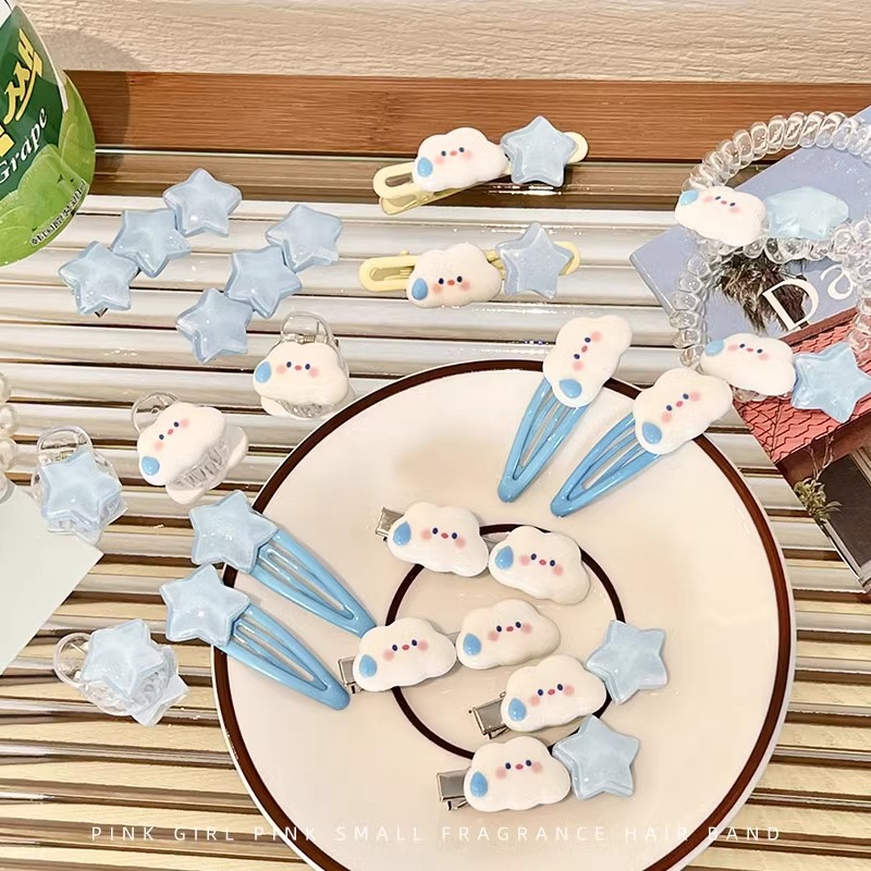 蓝色云朵星星发夹女可爱多巴胺刘海侧边夹发卡前额鸭嘴bb夹子头饰