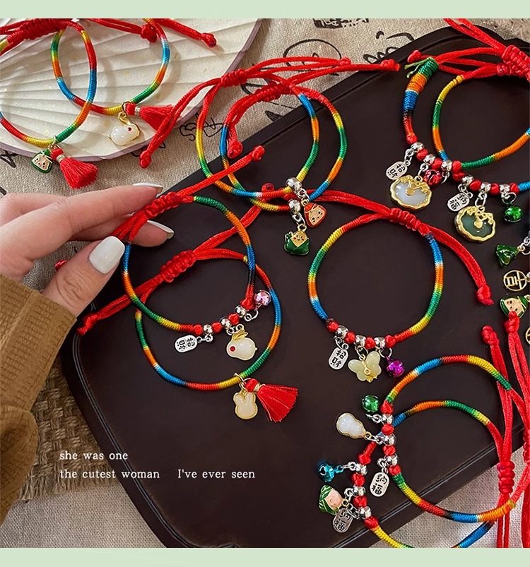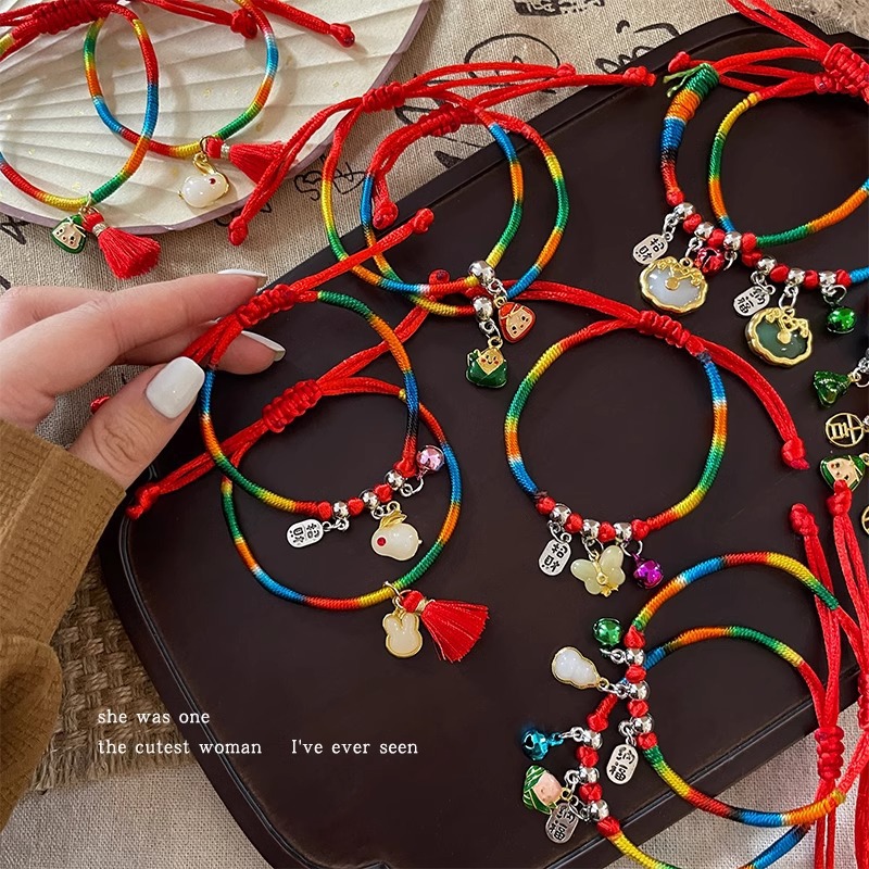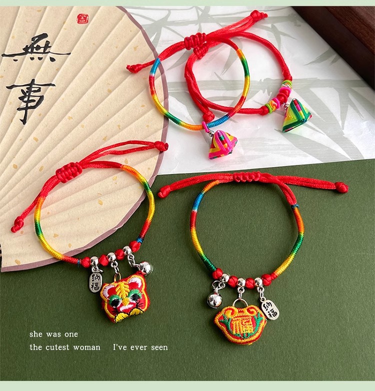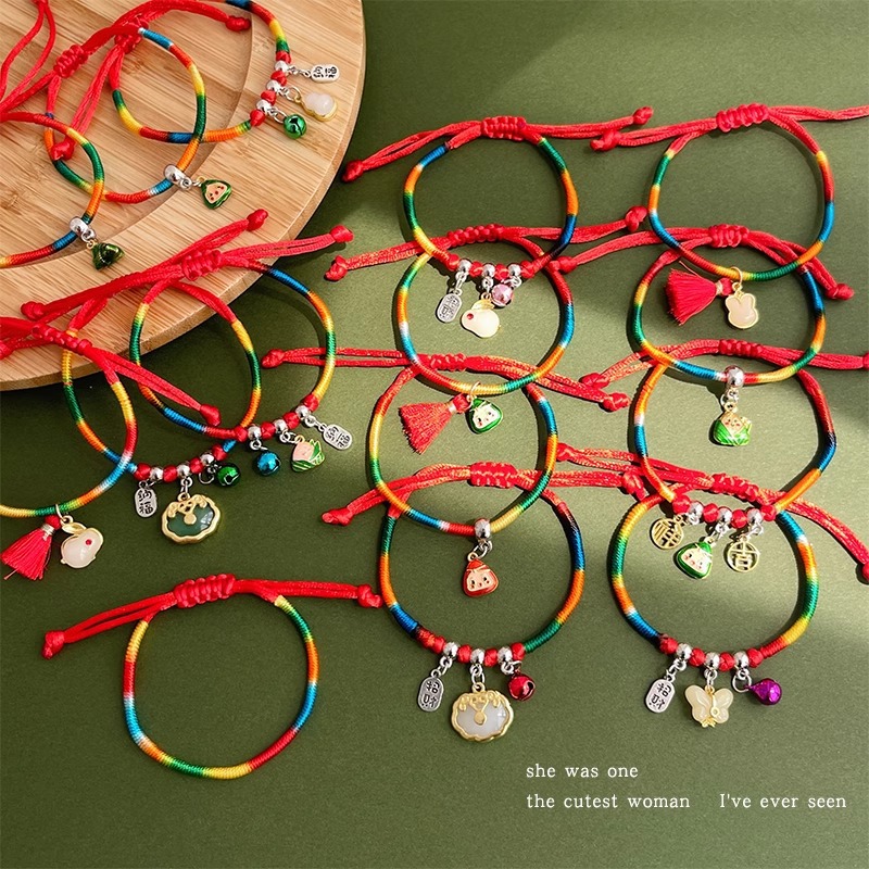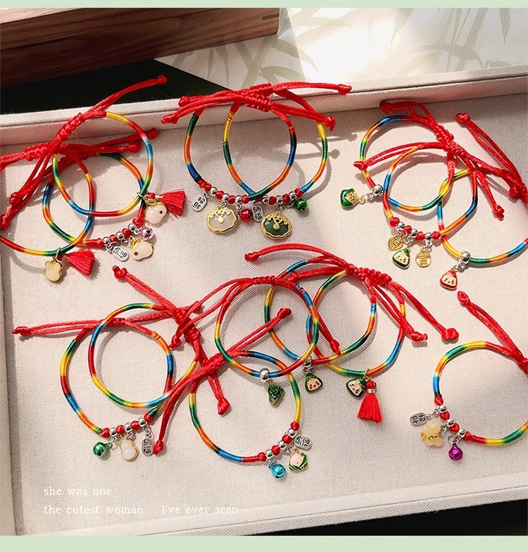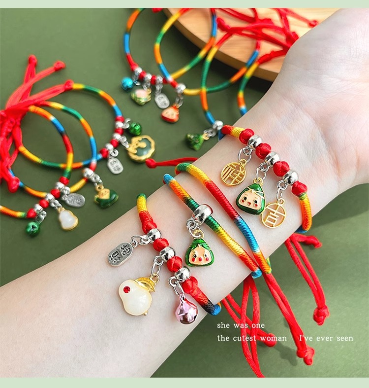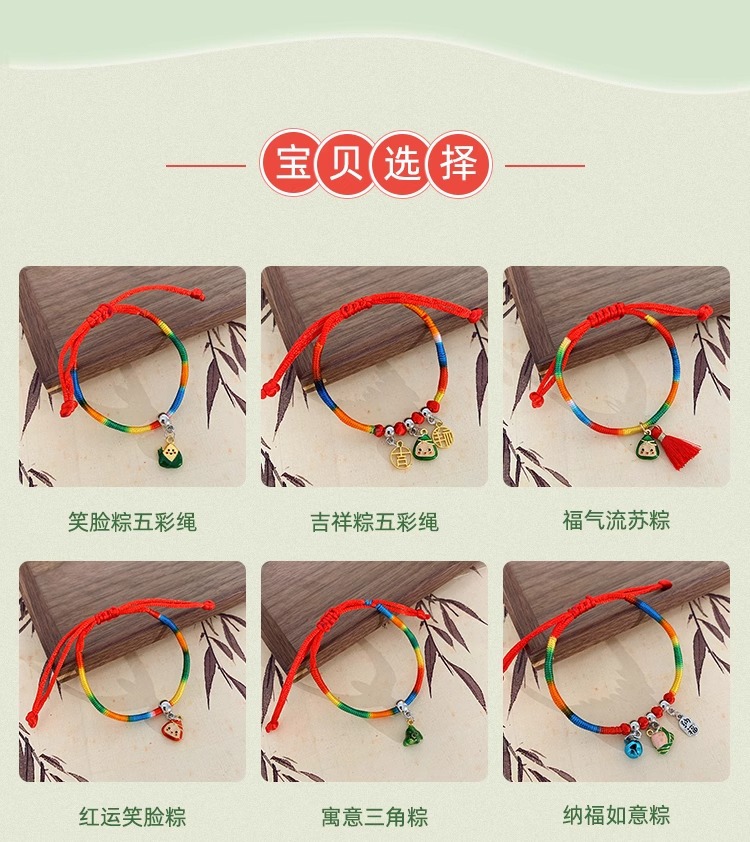 小粽子五彩绳手链儿童端午节可爱红绳婴儿宝宝手工编织五色线手绳