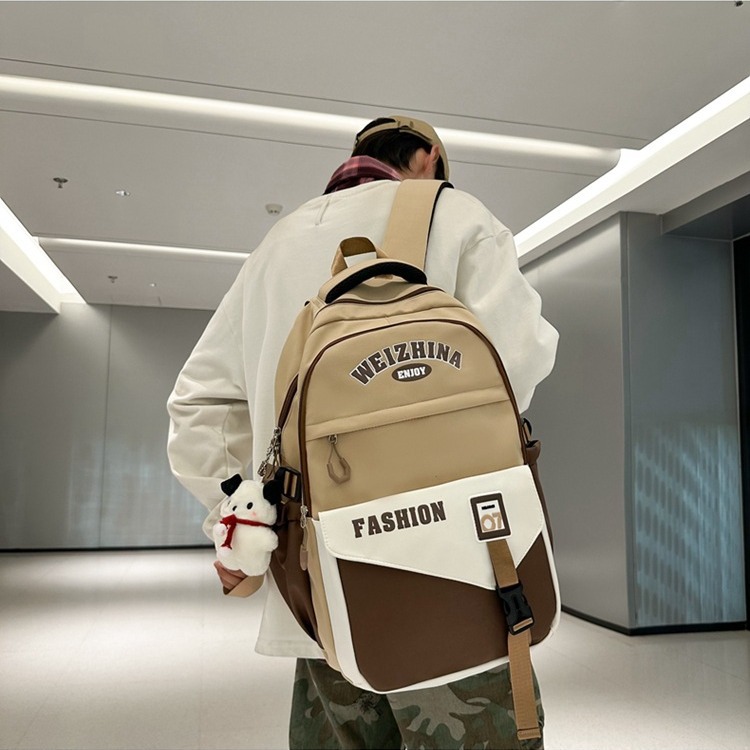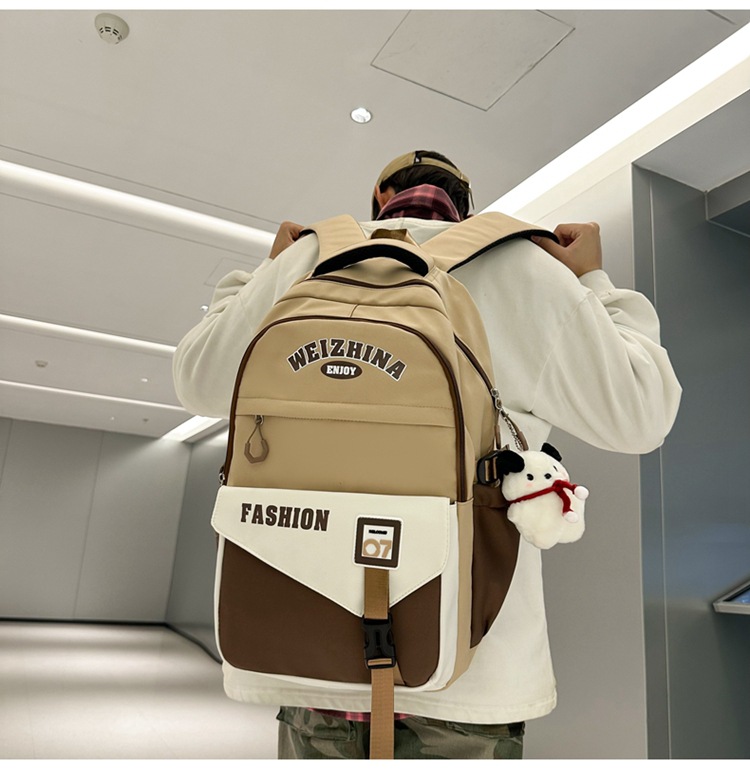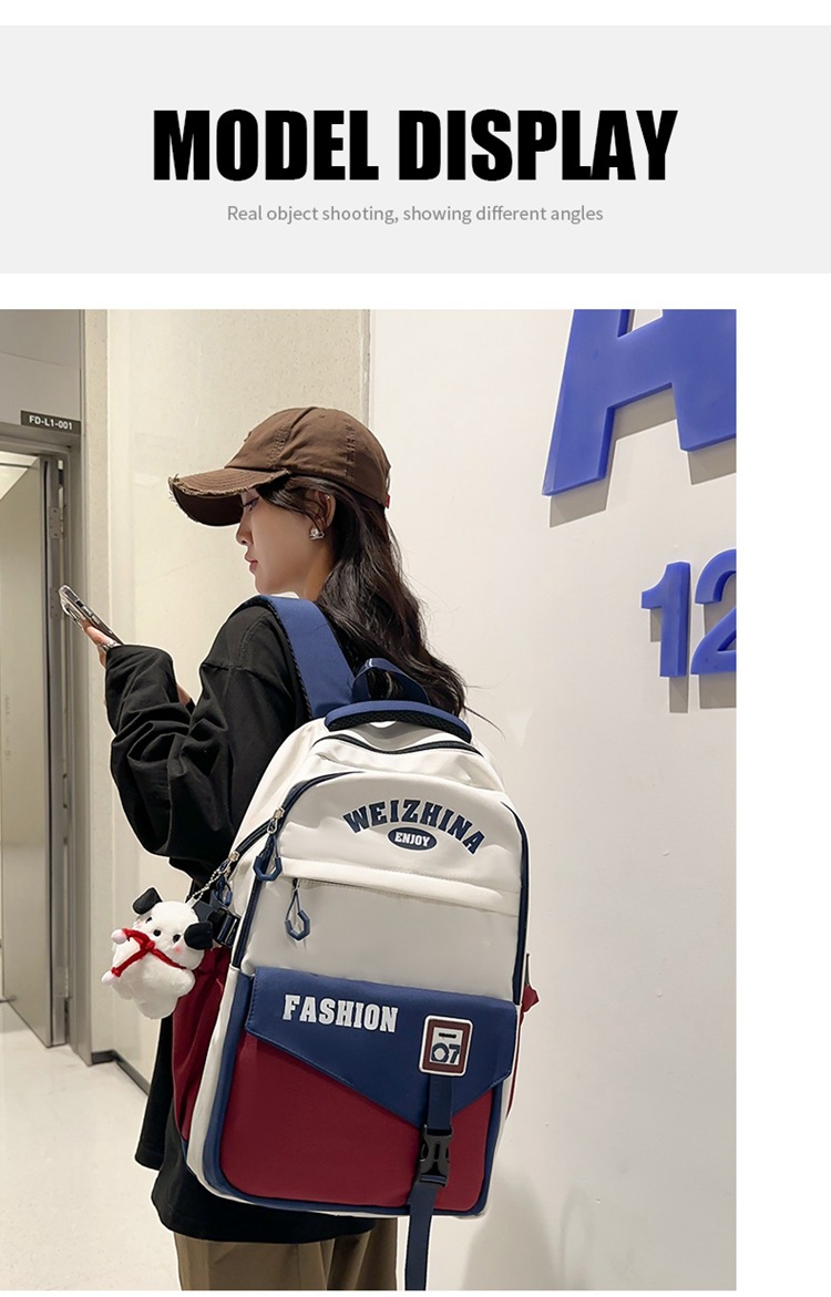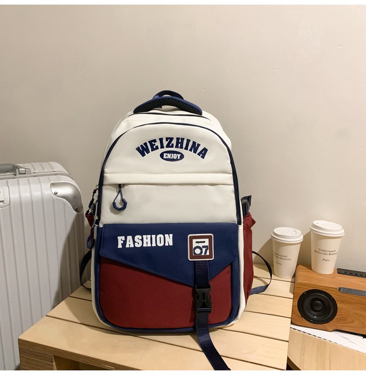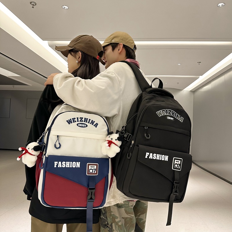 新款双肩包韩版百搭减负书包撞色大学生高中生大容量短途旅行背包