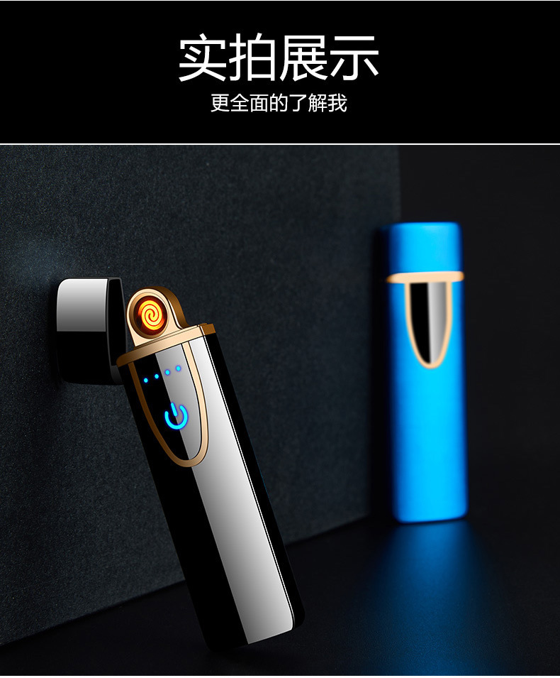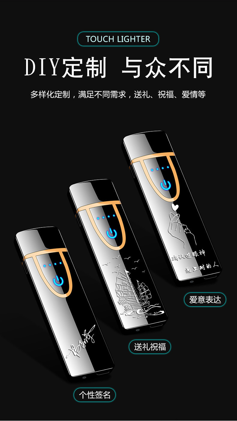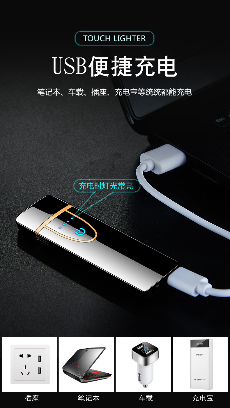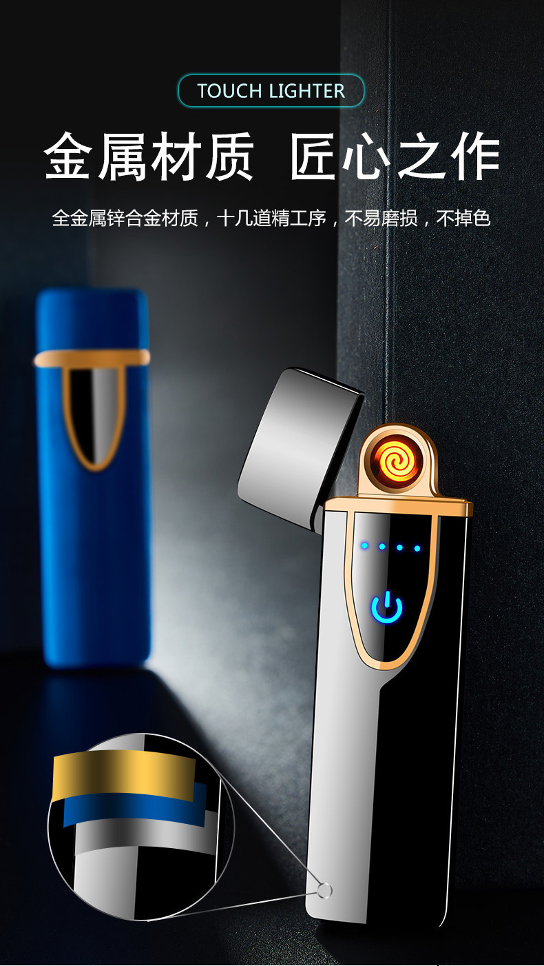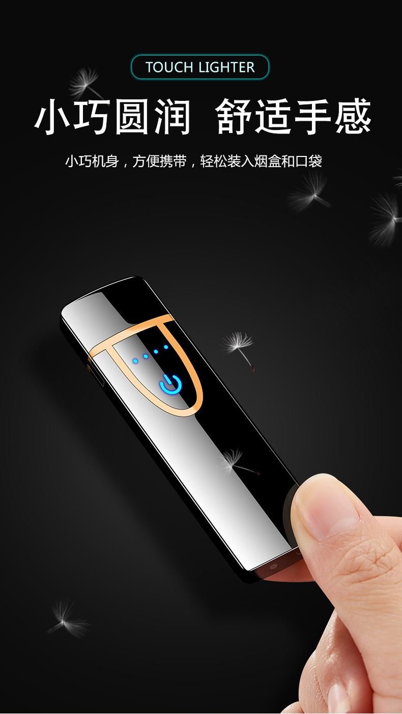 新款充电塑料USB指纹触摸感应充电打火机小巧便捷点烟器可做logo