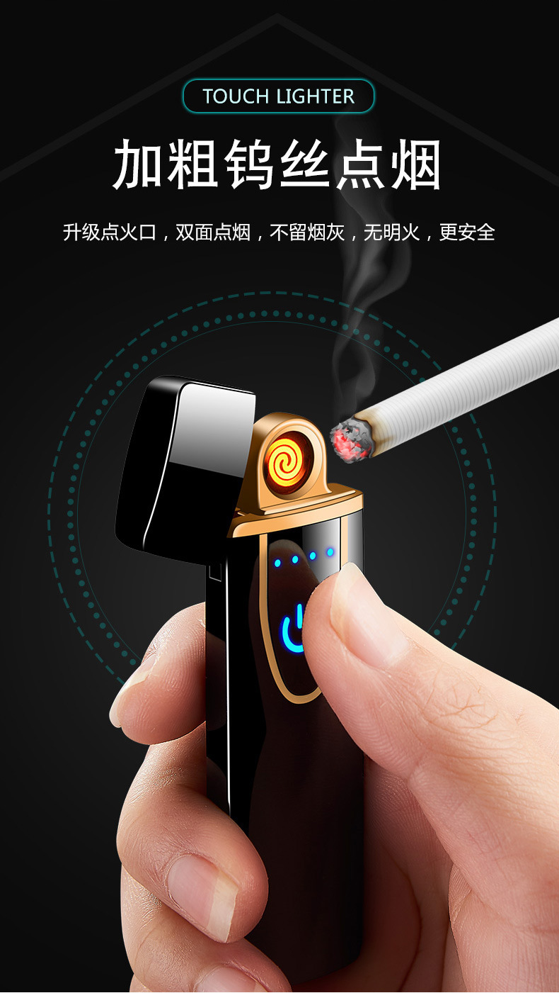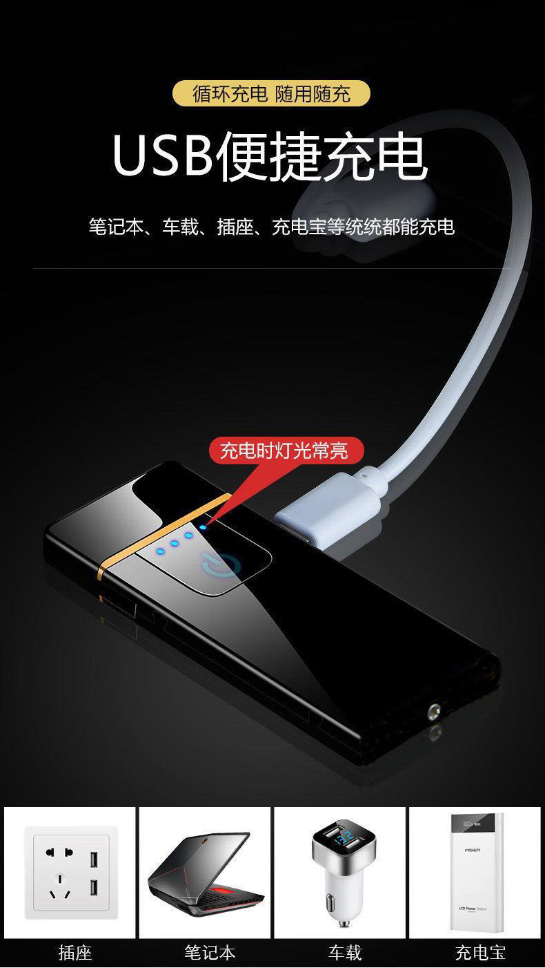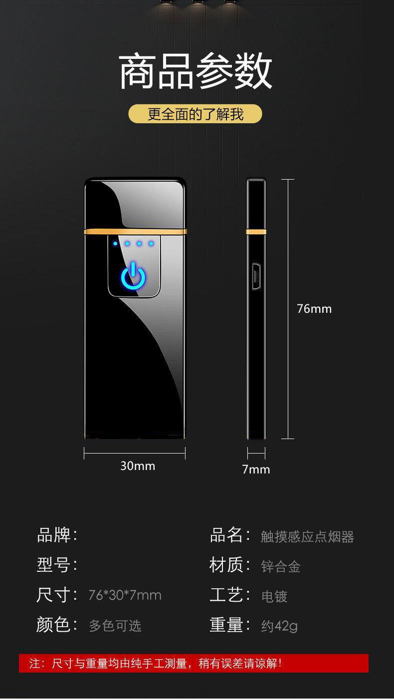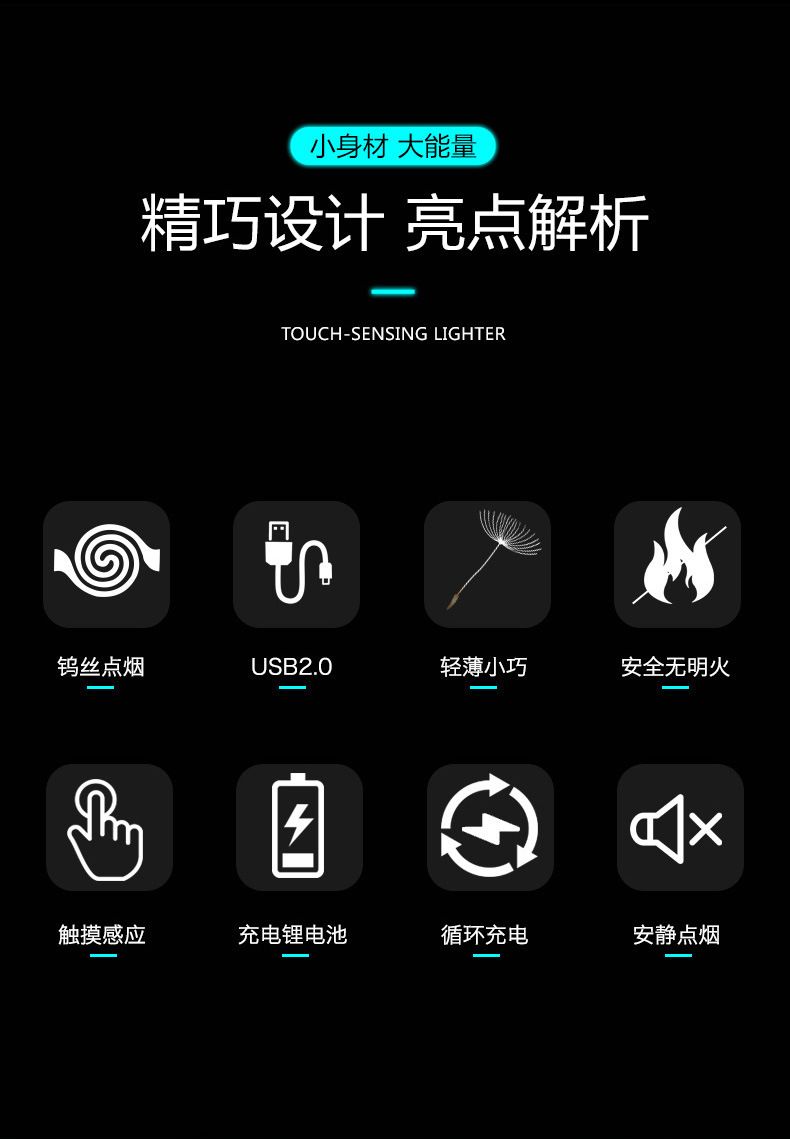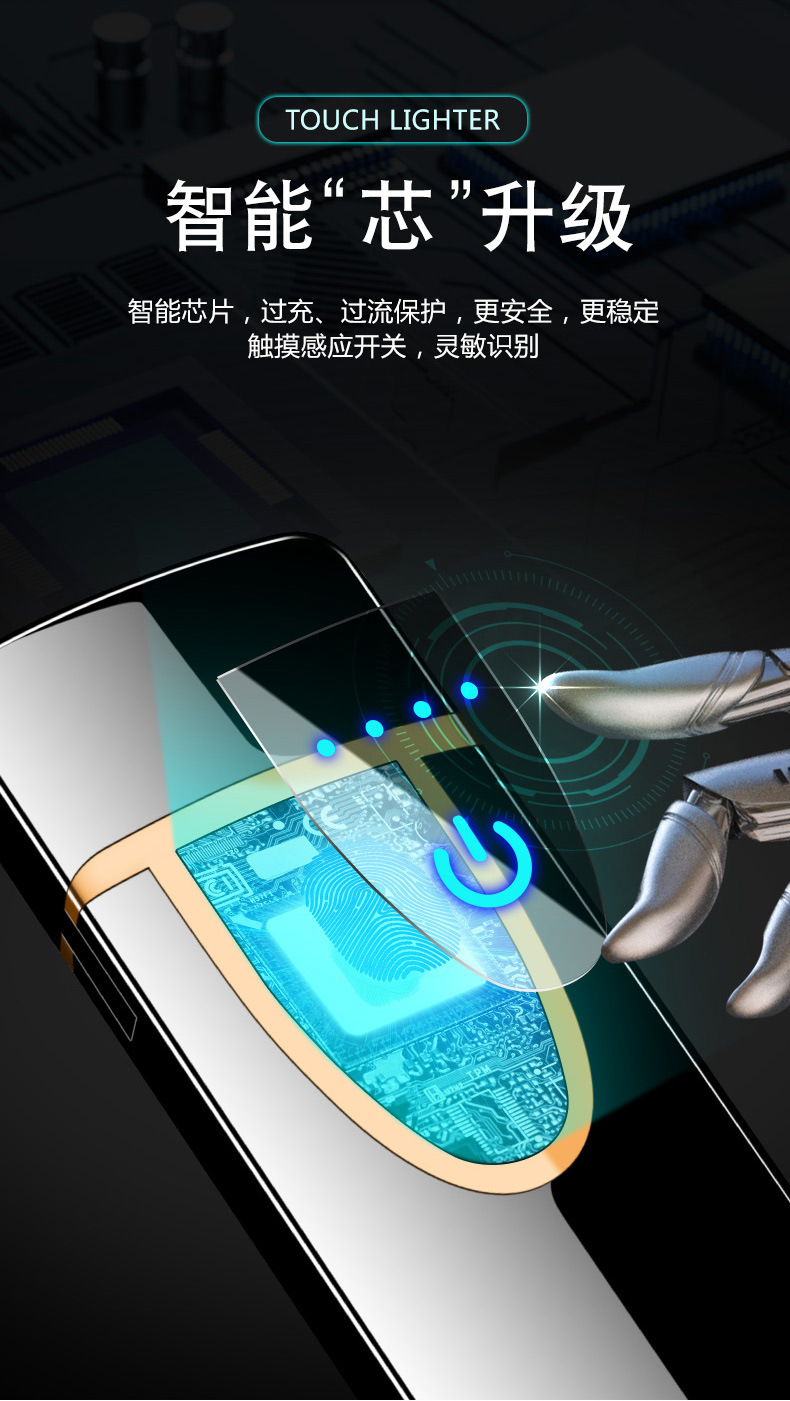 新款充电塑料USB指纹触摸感应充电打火机小巧便捷点烟器可做logo