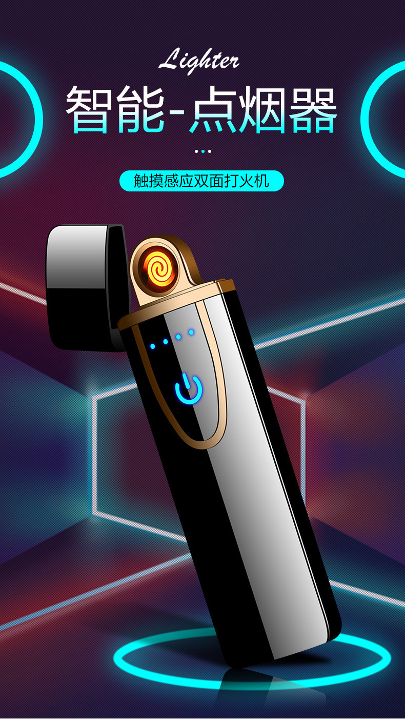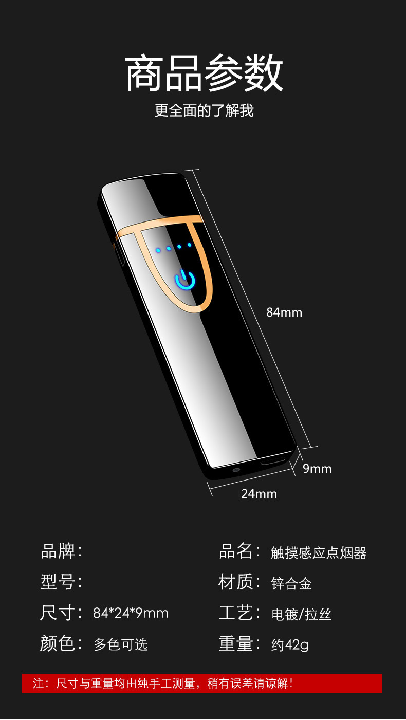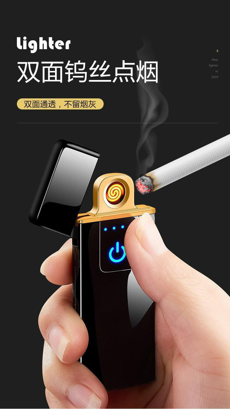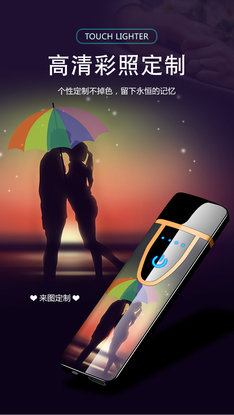 新款充电塑料USB指纹触摸感应充电打火机小巧便捷点烟器可做logo