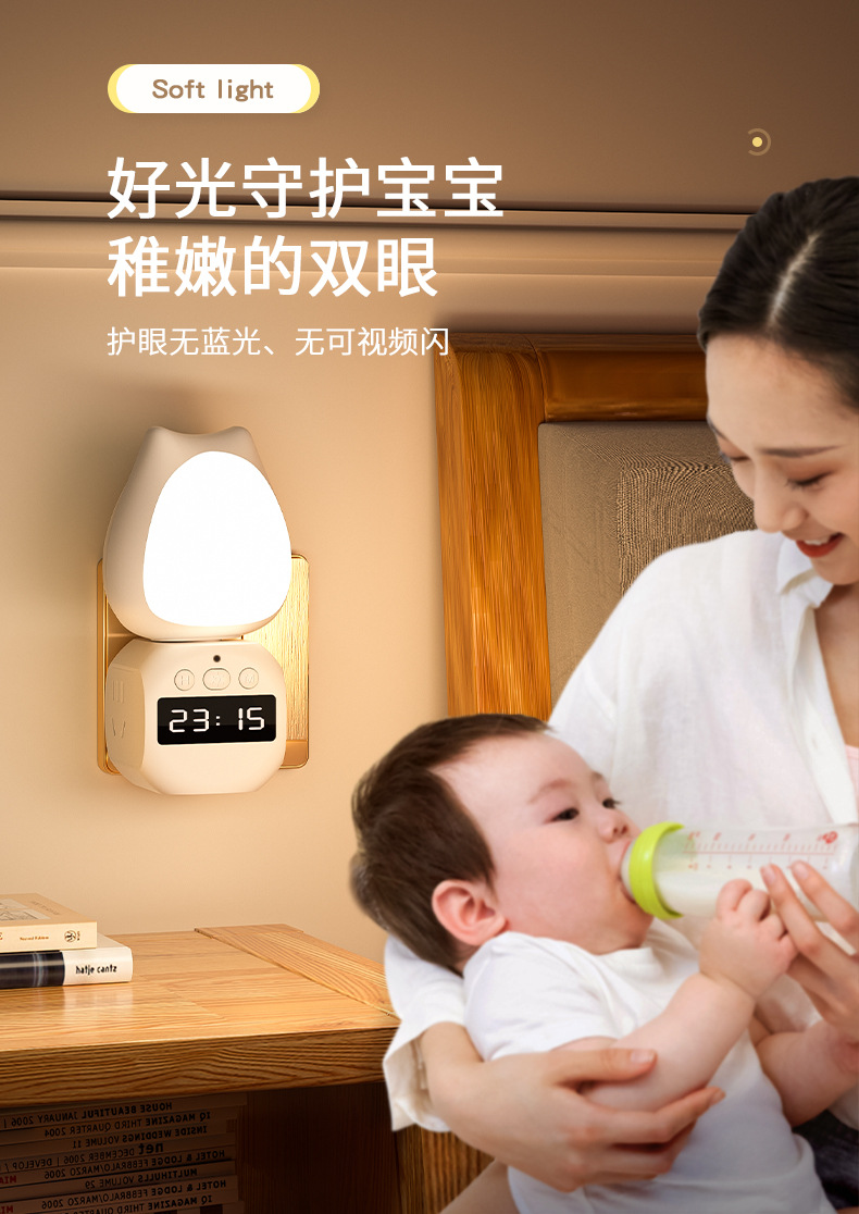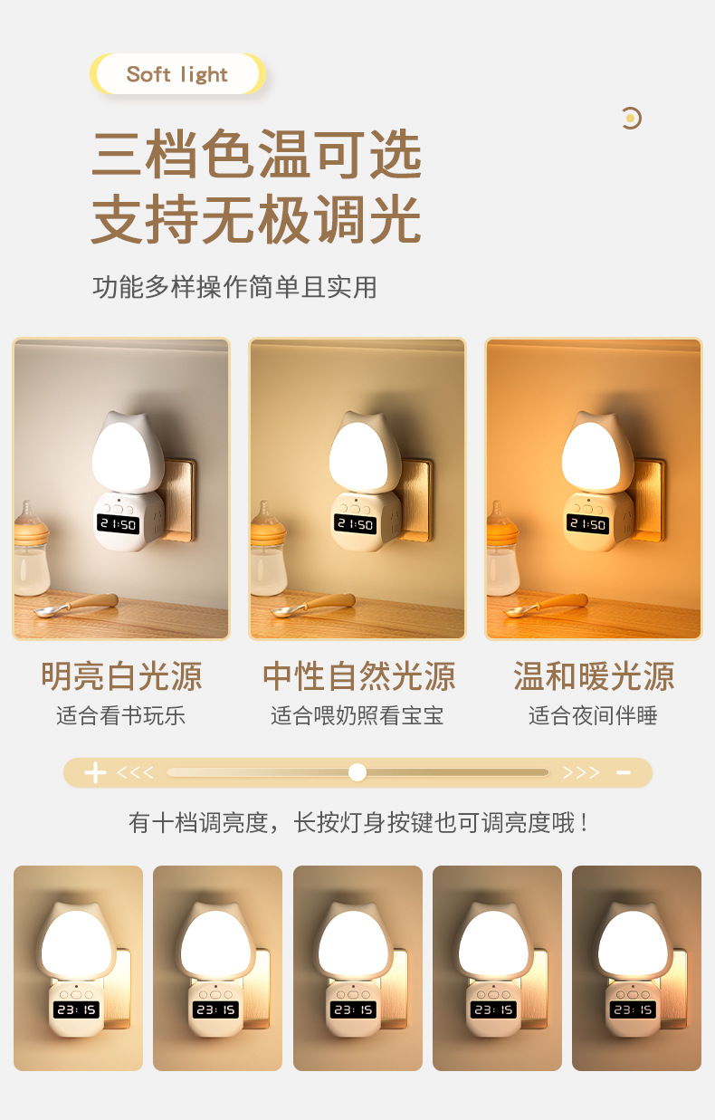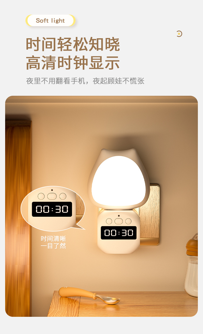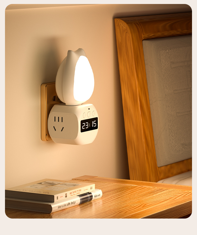 外贸专供【350度旋转】LED护眼智能语音控制带时钟显示排插两用