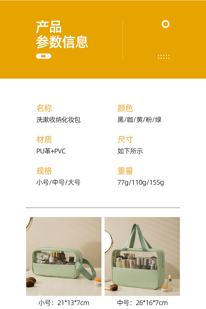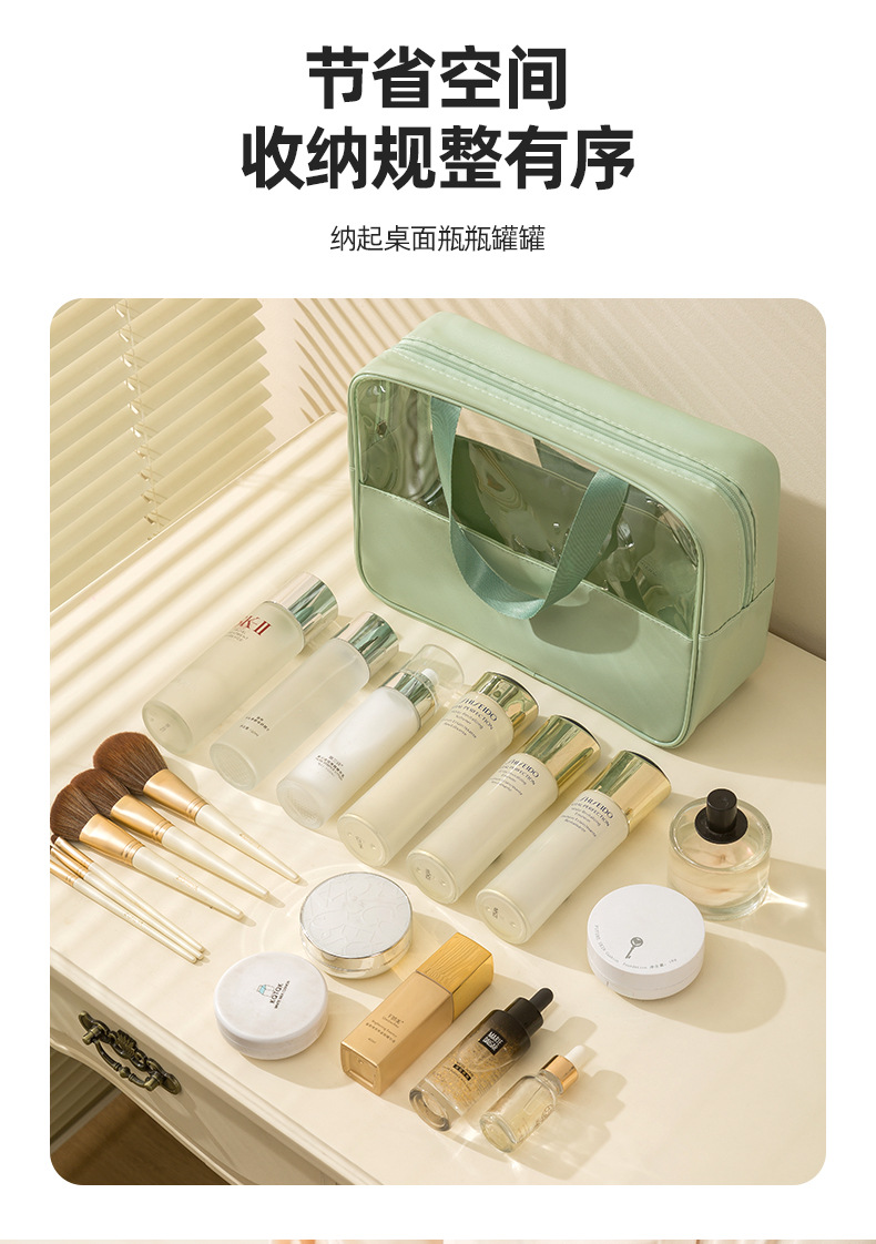 PU半透明化妆包手提便携防水收纳包大容量旅行化妆品收纳袋